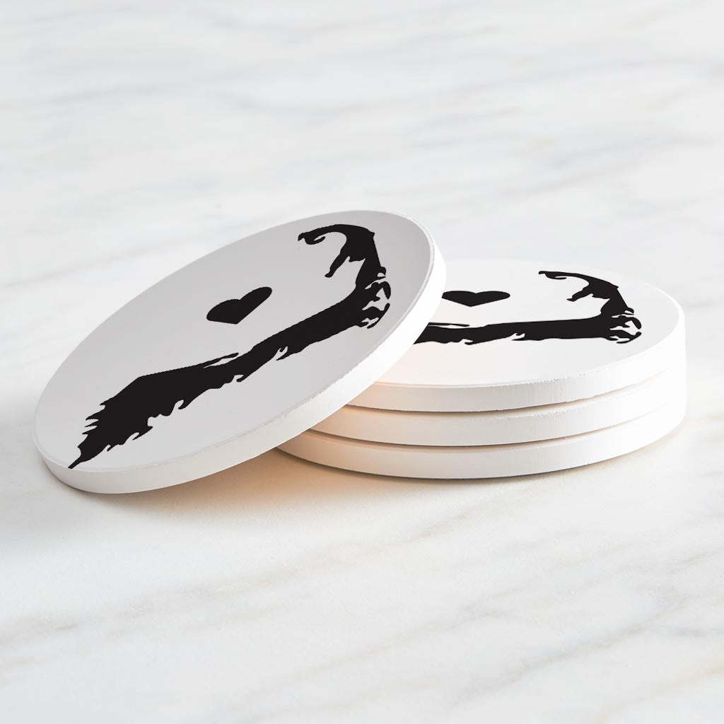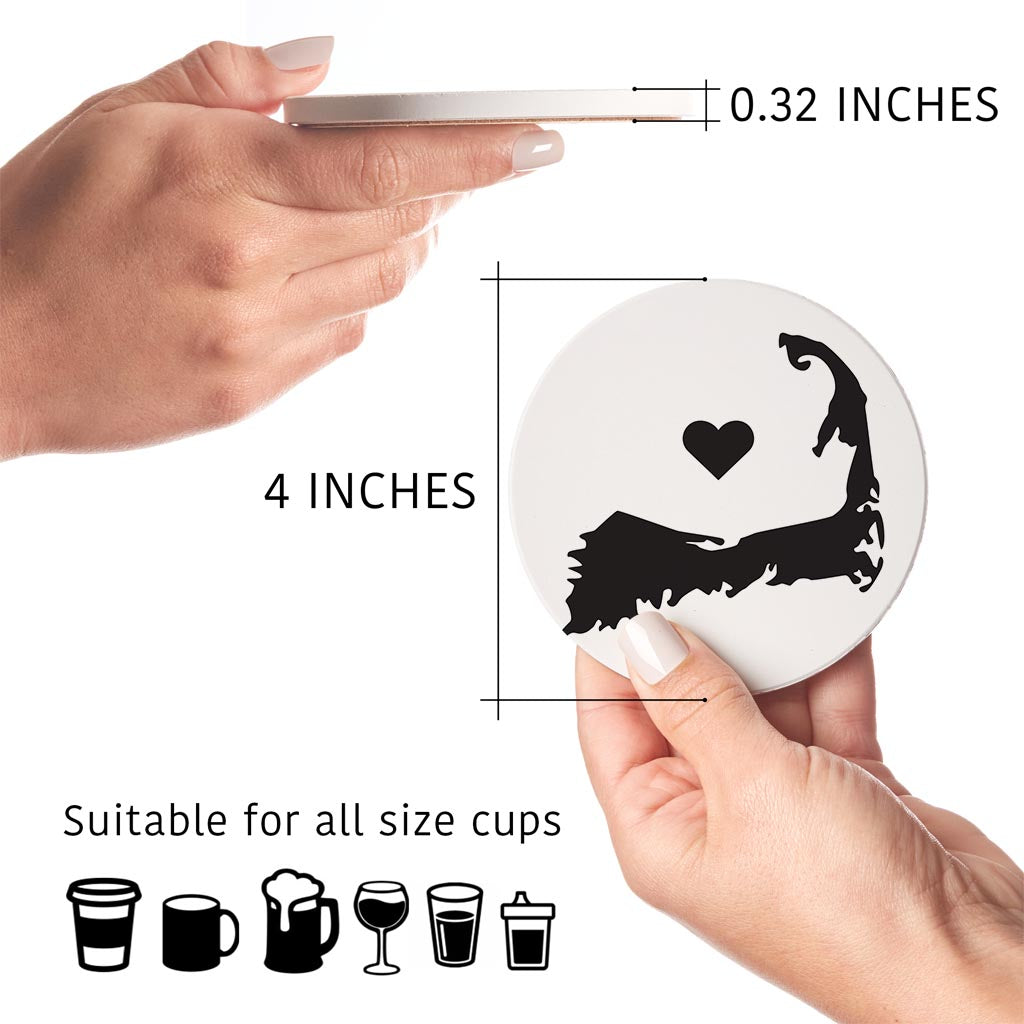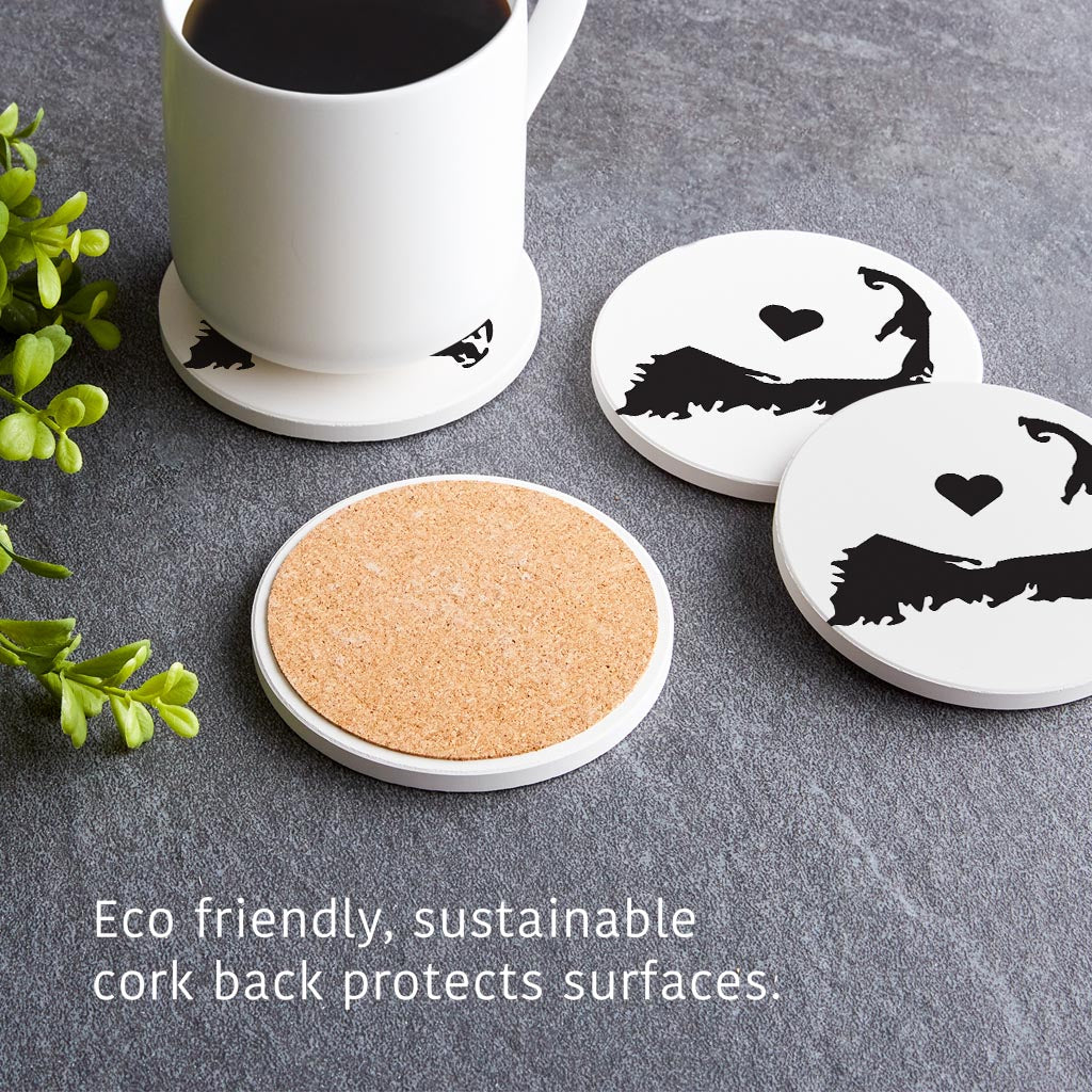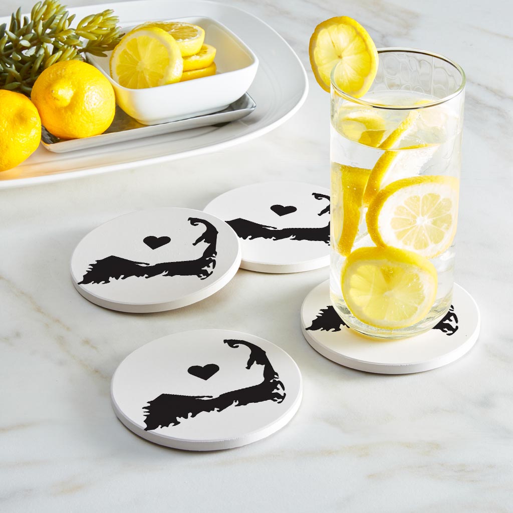 Minimalistic B&W Cape Cod With Heart | Absorbent Coasters | Set of 4 | Min 2