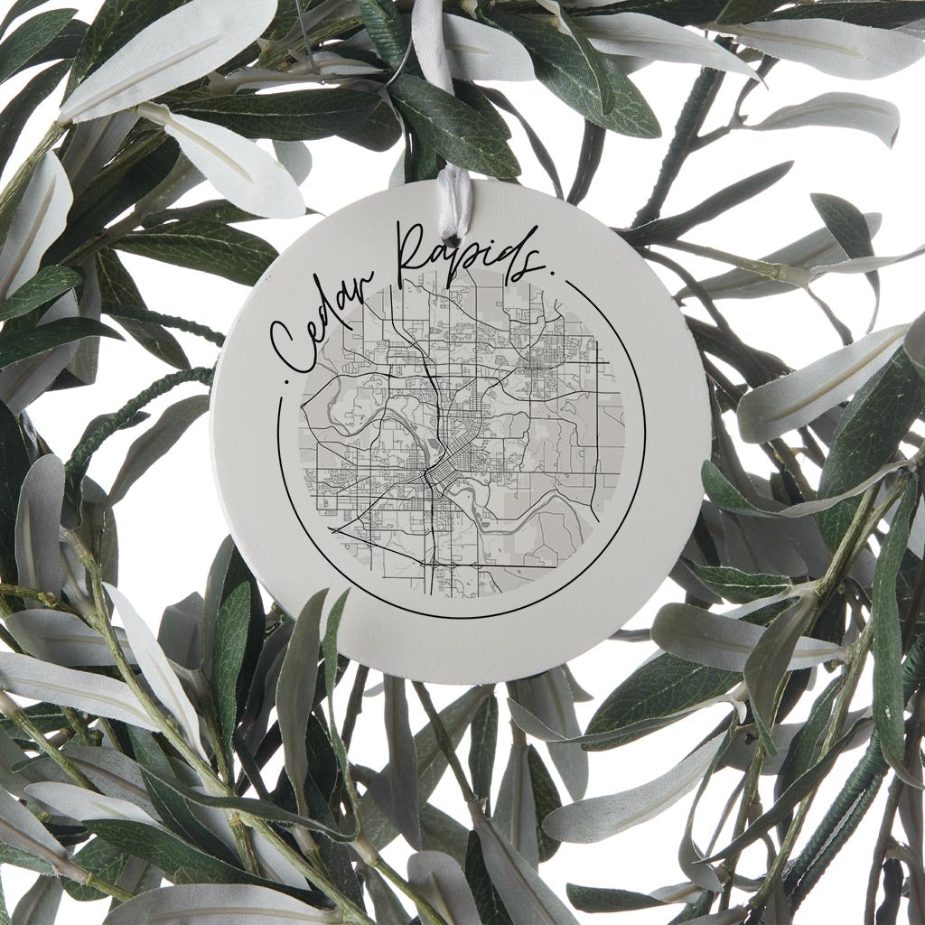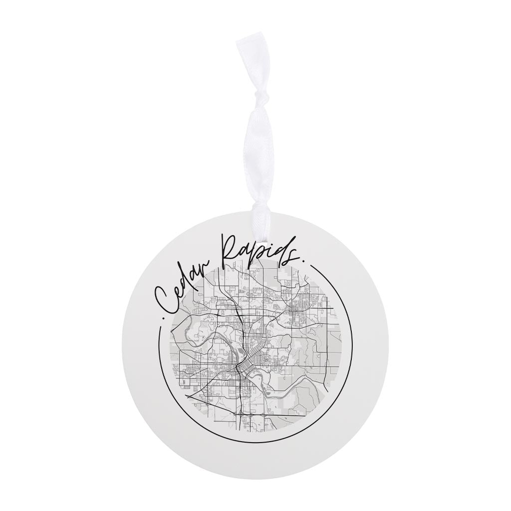 Minimalistic B&W Iowa Cedar Rapids Circle Map | Wood Ornament | Eaches | Min 6