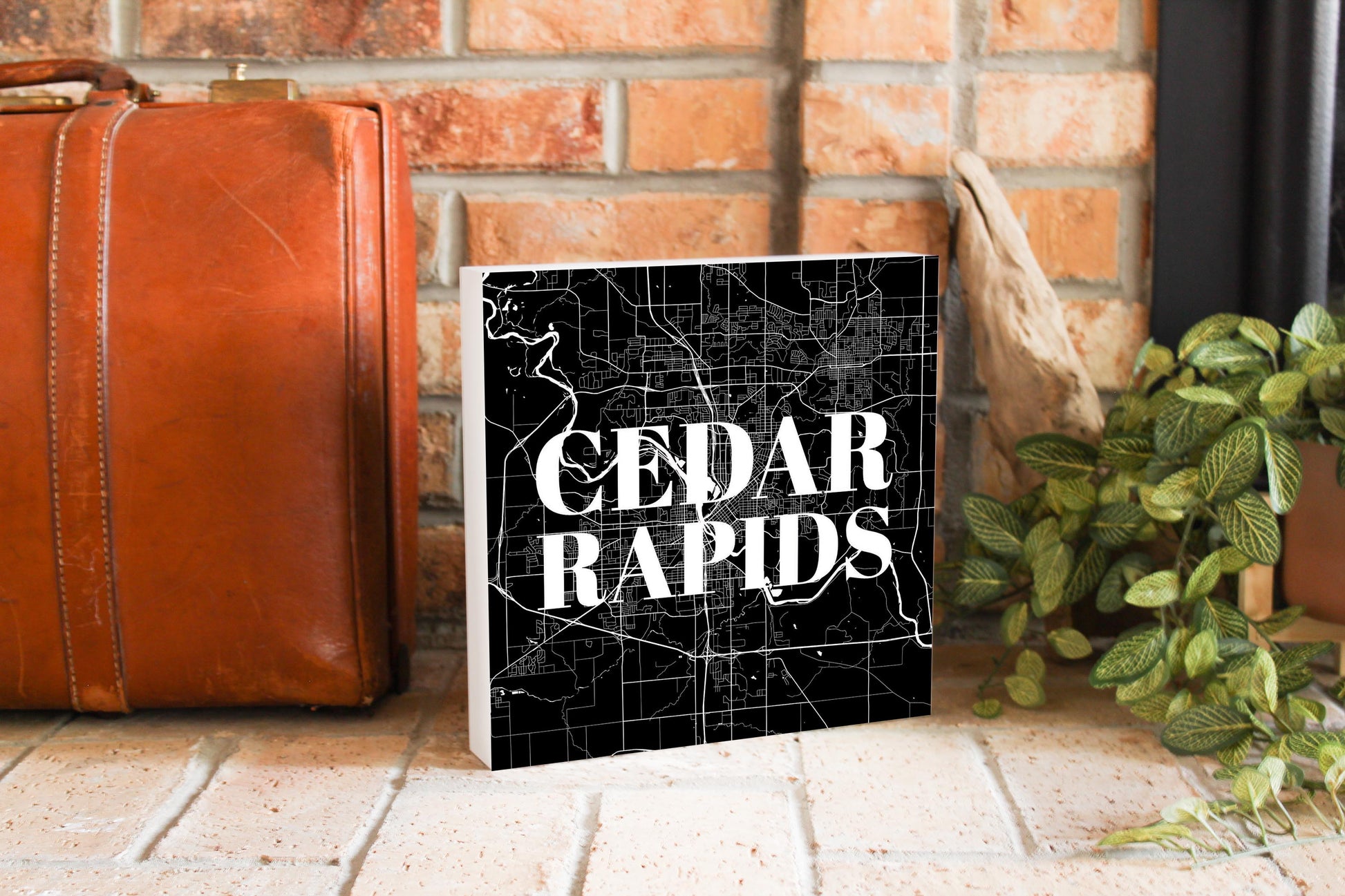 Minimalistic B&W Iowa Cedar Rapids Map | Wood Block | Eaches | Min 2