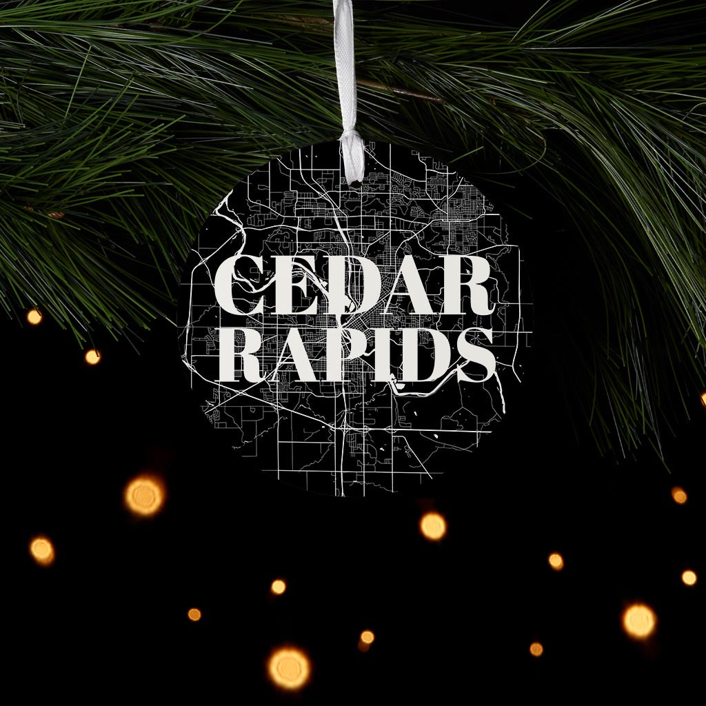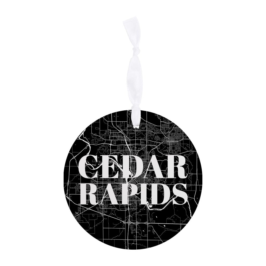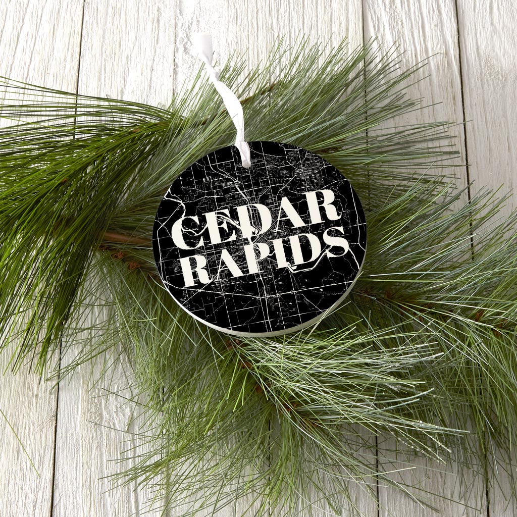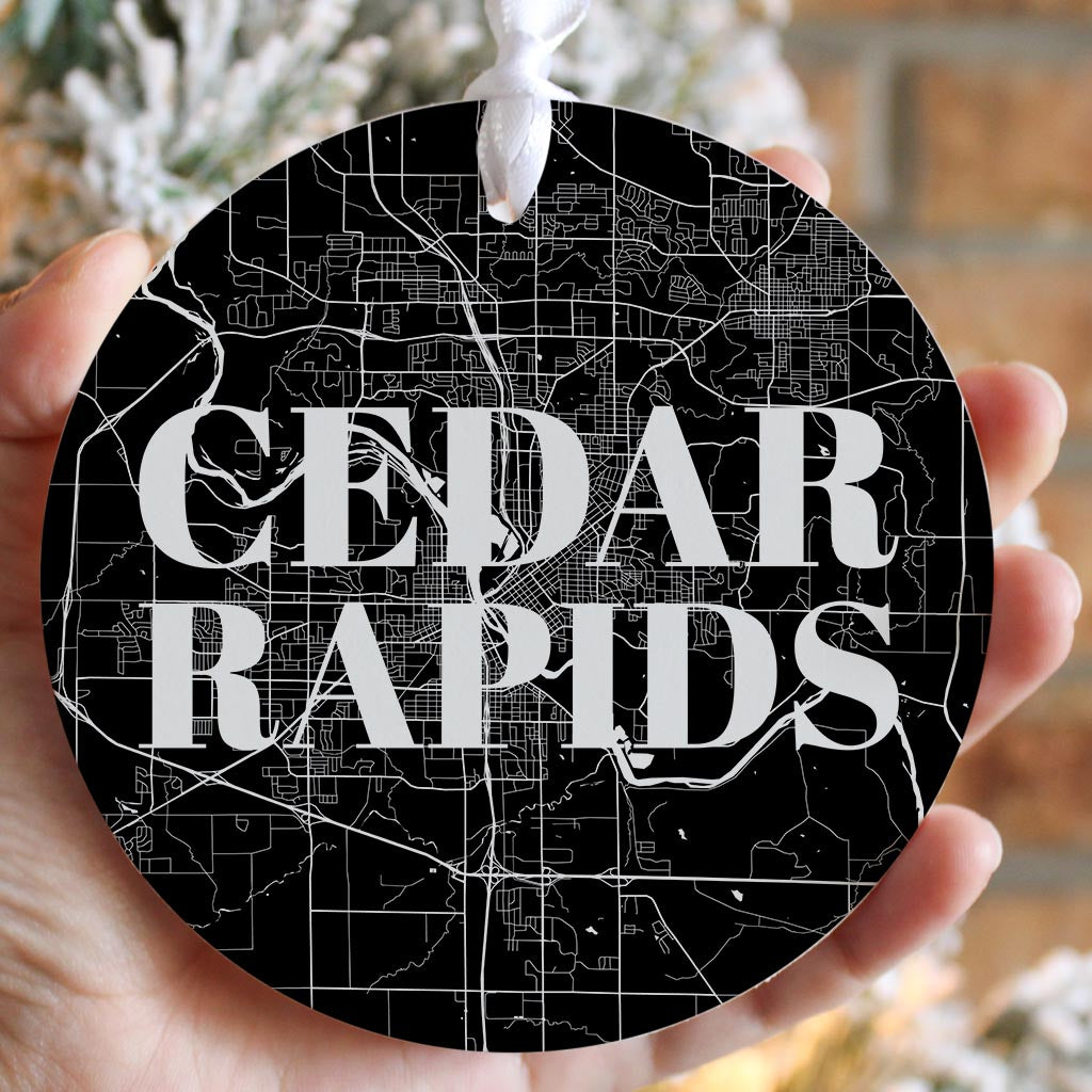 Minimalistic B&W Iowa Cedar Rapids Map | Wood Ornament | Eaches | Min 6