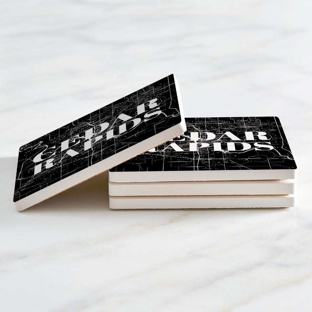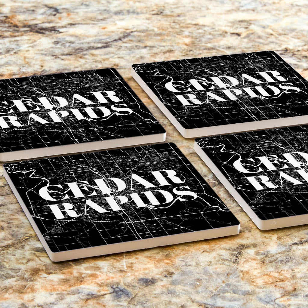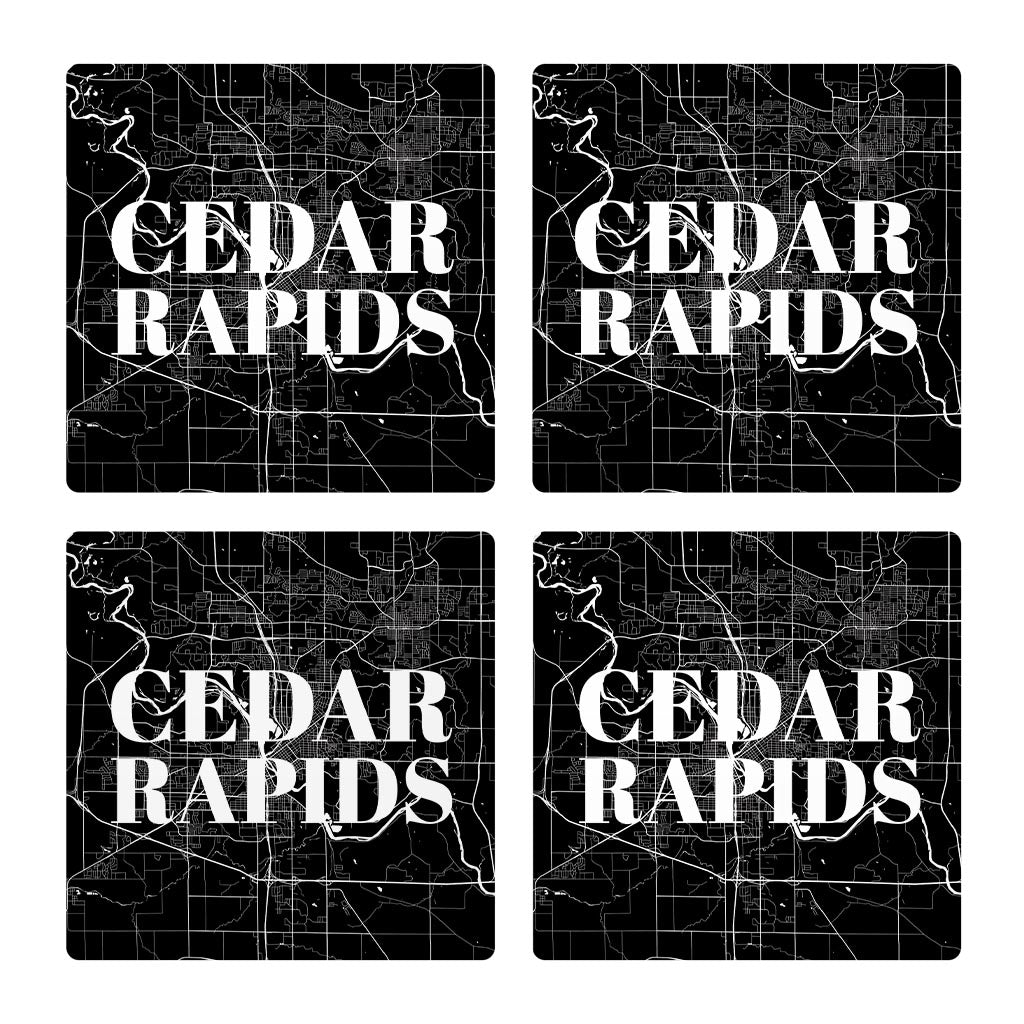 Minimalistic B&W Iowa Cedar Rapids Map | Absorbent Coasters | Set of 4 | Min 2