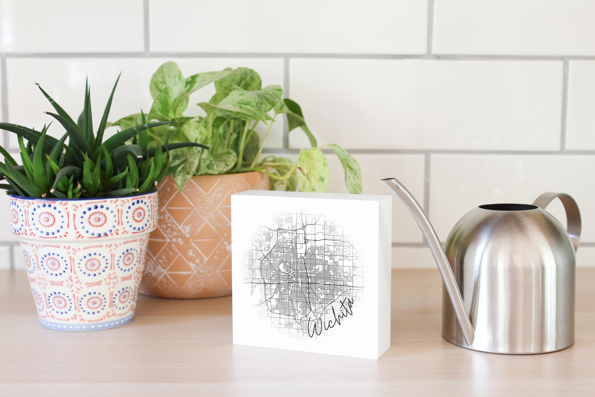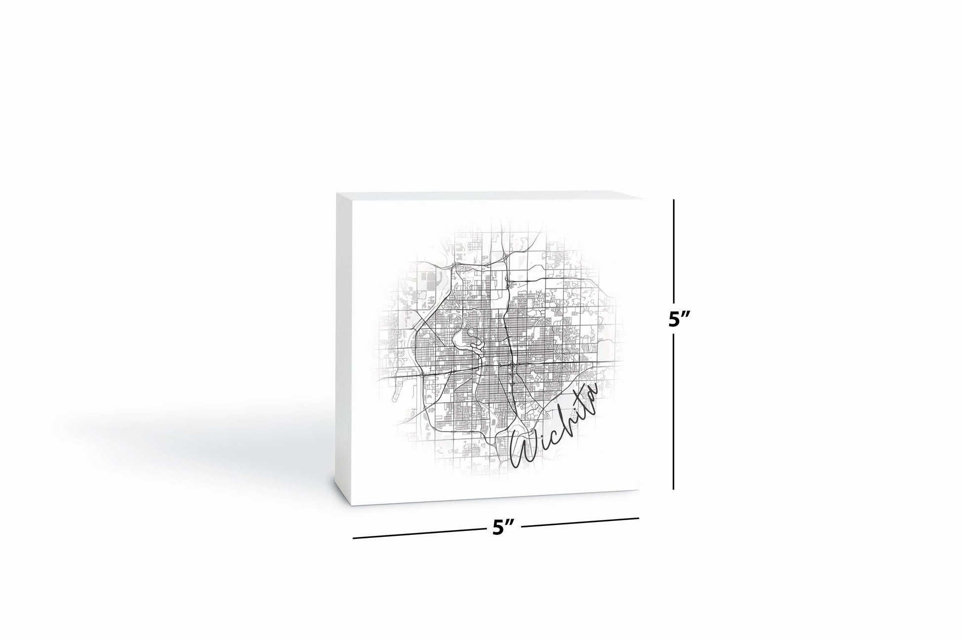 Minimalistic B&W Kansas Wichita Circle Map| Wood Block | Eaches | Min 4