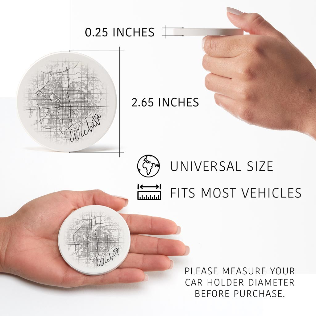 Minimalistic B&W Kansas Wichita Circle Map | Absorbent Car Coasters | Set of 2 | Min 4