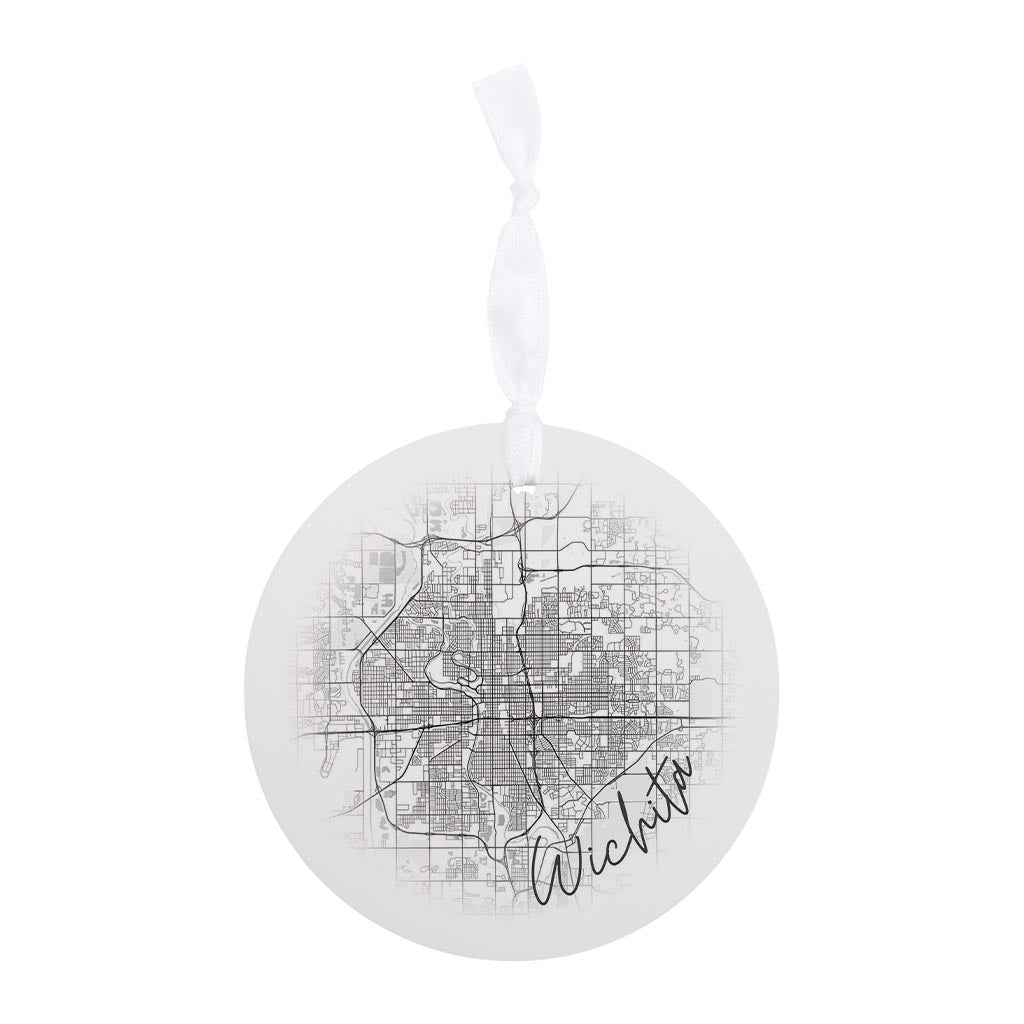 Minimalistic B&W Kansas Wichita Circle Map | Wood Ornament | Eaches | Min 6