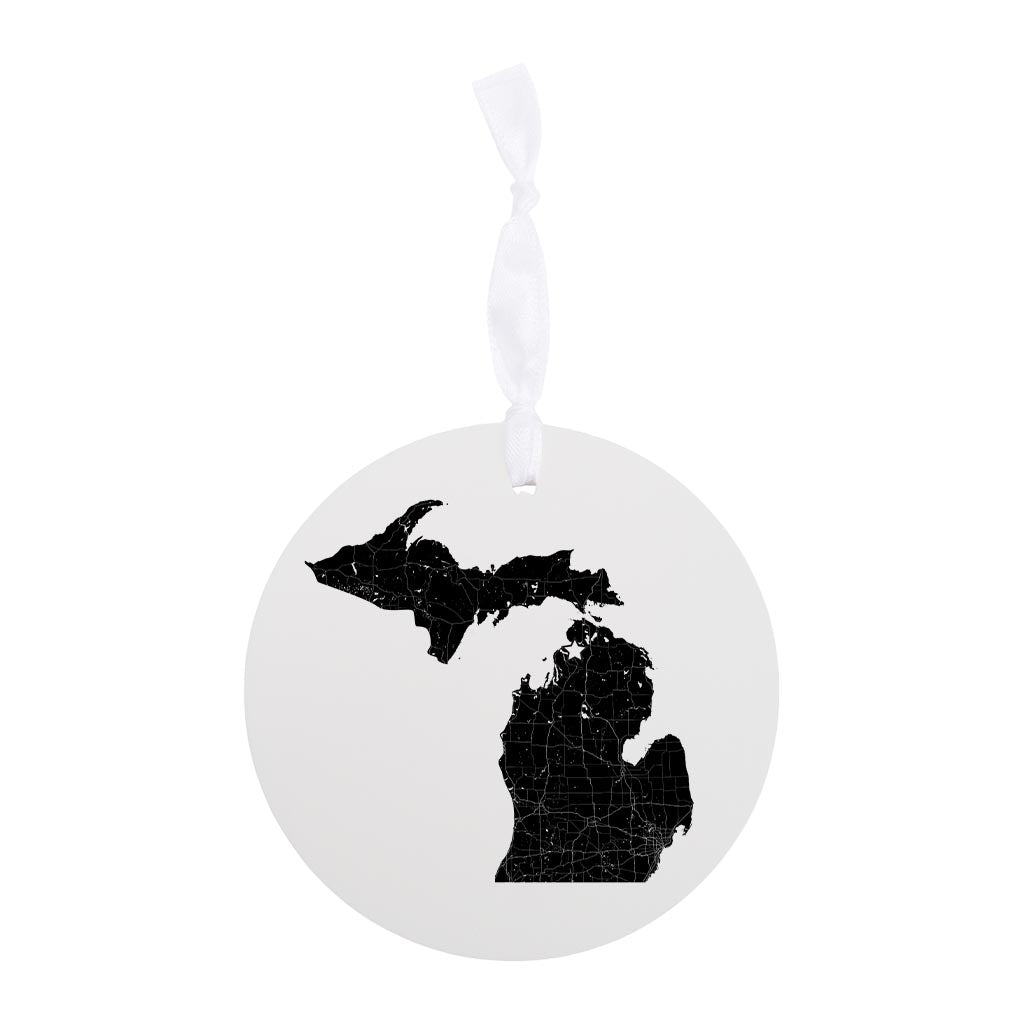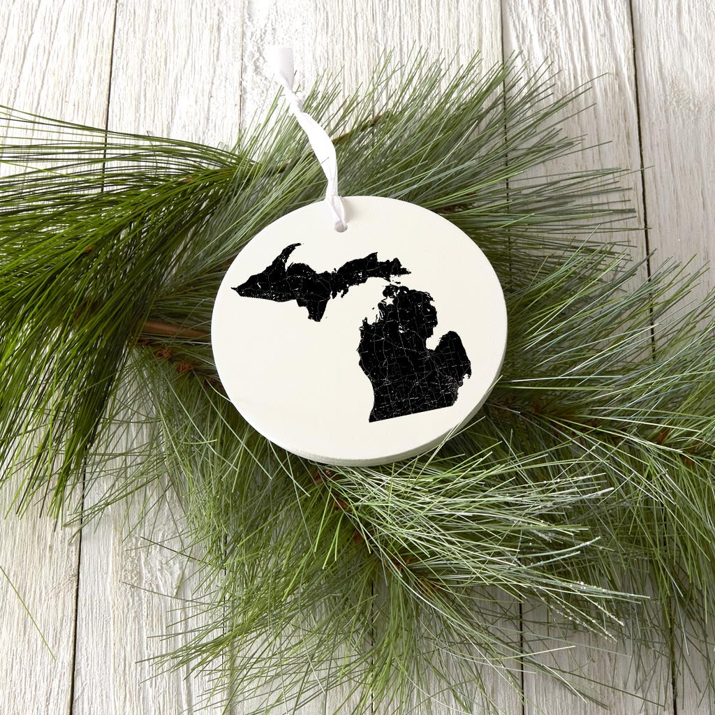 Minimalistic B&W Michigan Map Petoskey Star | Wood Ornament | Eaches | Min 6