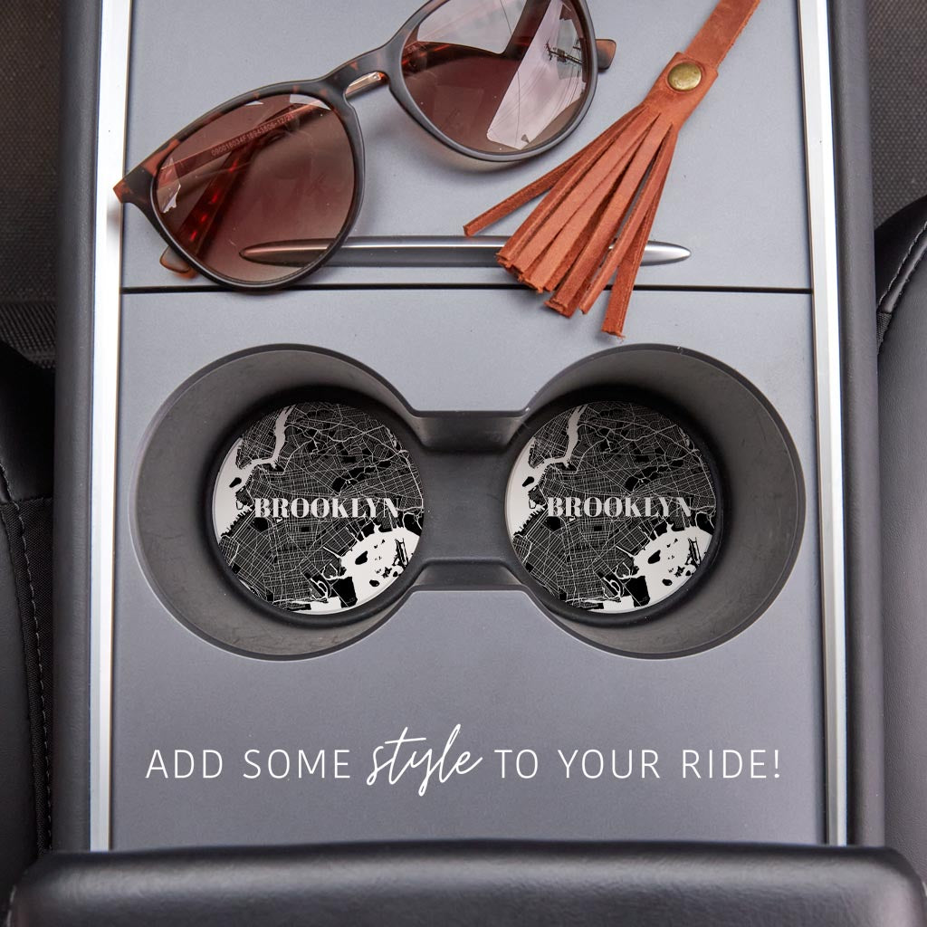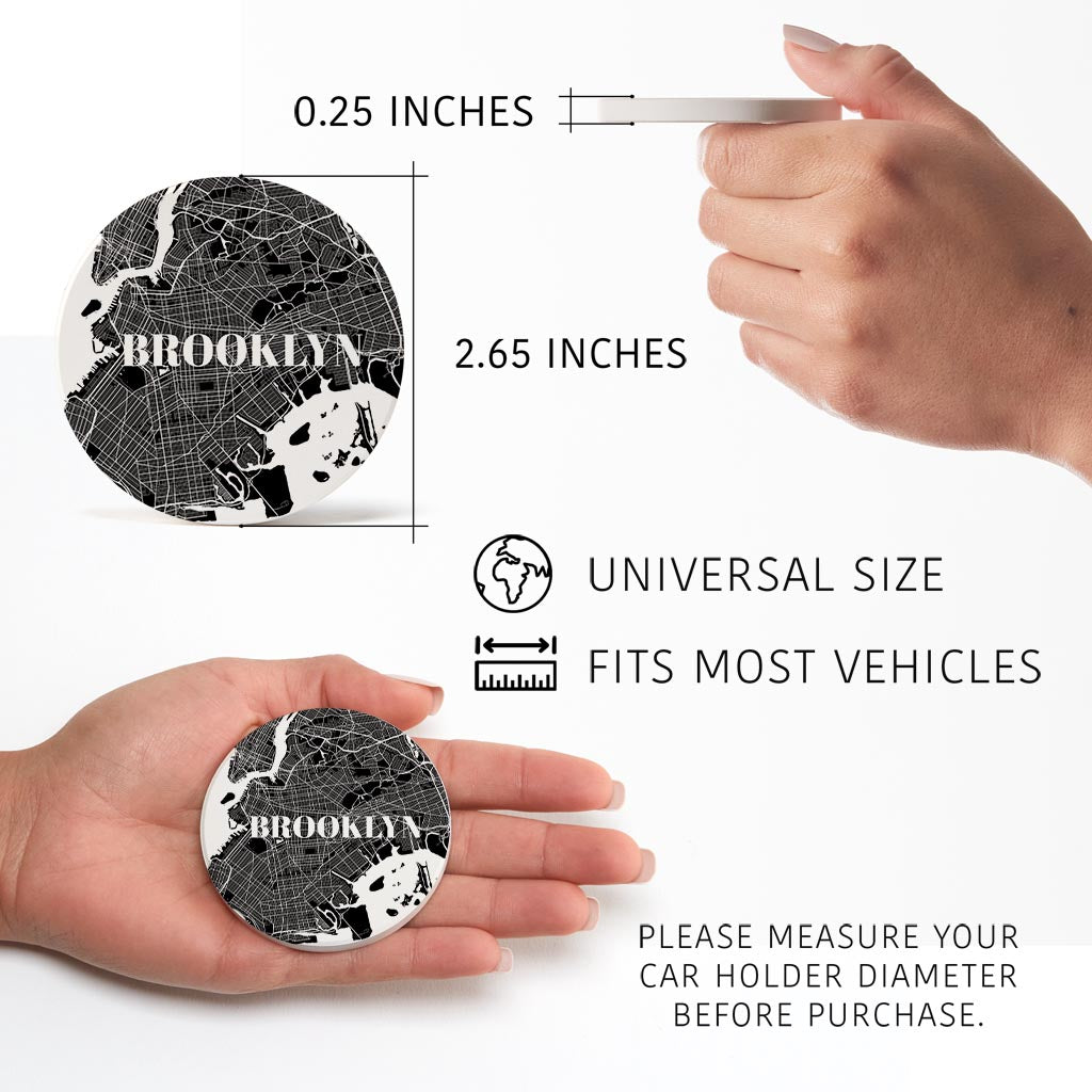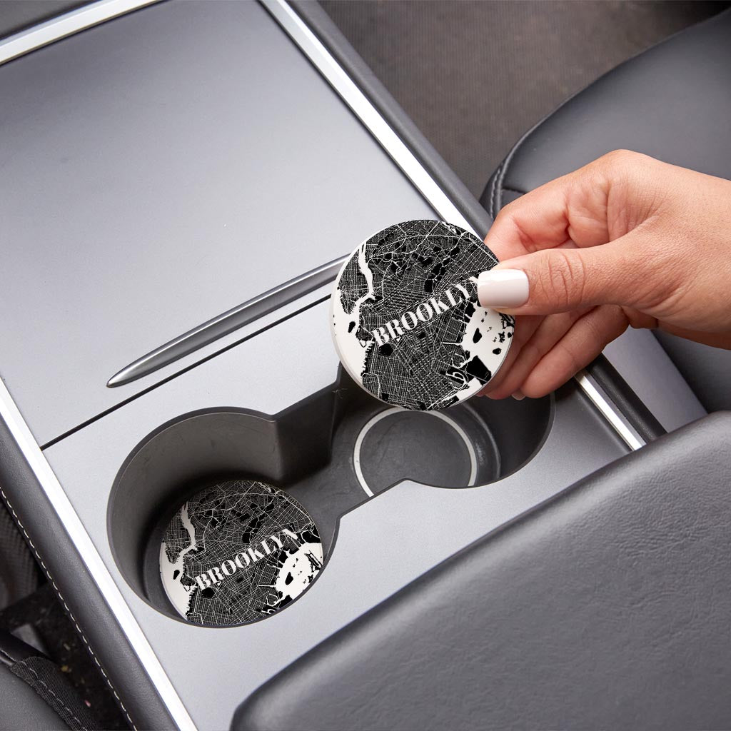 Minimalistic B&W New York Brooklyn Map | Absorbent Car Coasters | Set of 2 | Min 4