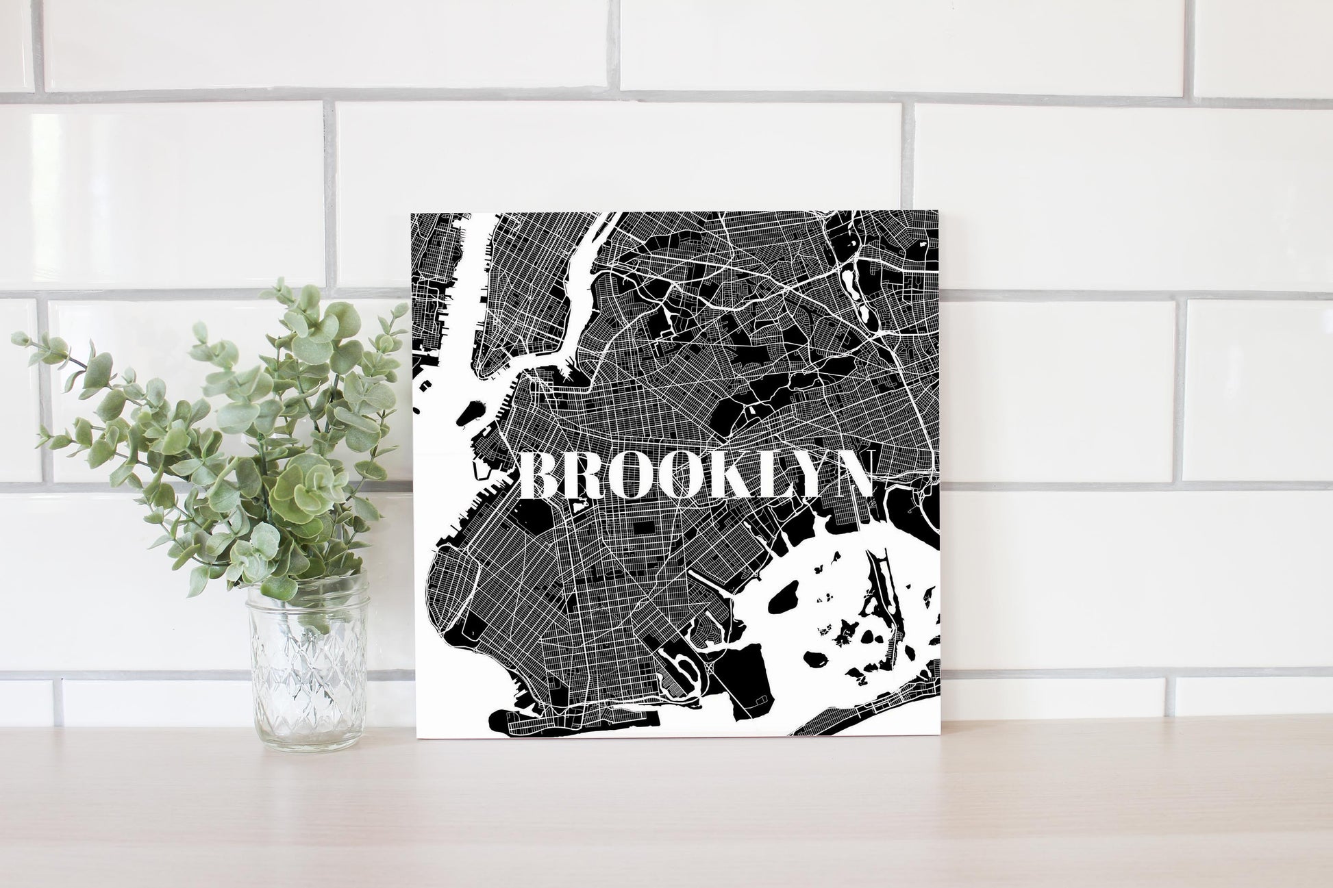 Minimalistic B&W New York Brooklyn Map | Wood Sign | Eaches | Min 2