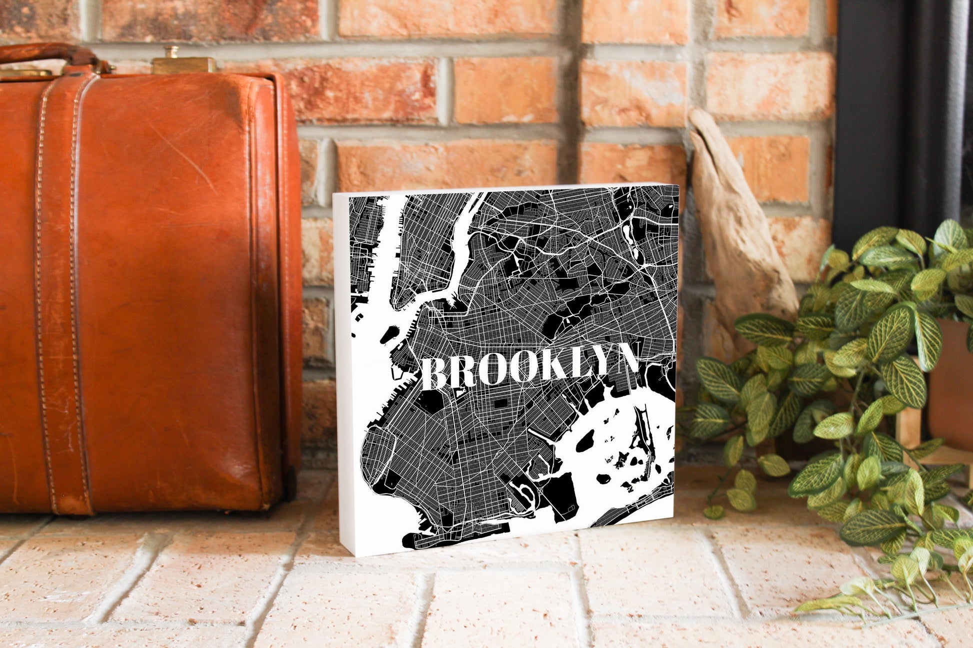 Minimalistic B&W New York Brooklyn Map | Wood Block | Eaches | Min 2