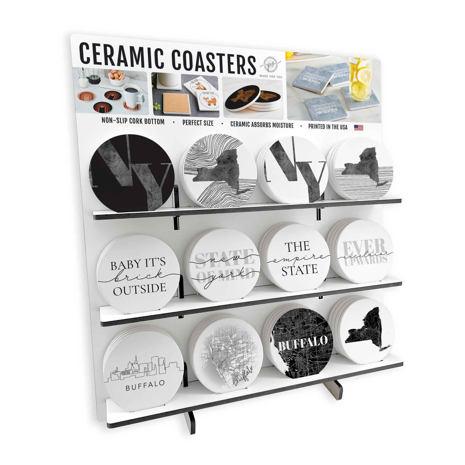 Minimalistic B&W New York Buffalo Circle Ceramic Coaster Loaded Display POP Min of 1