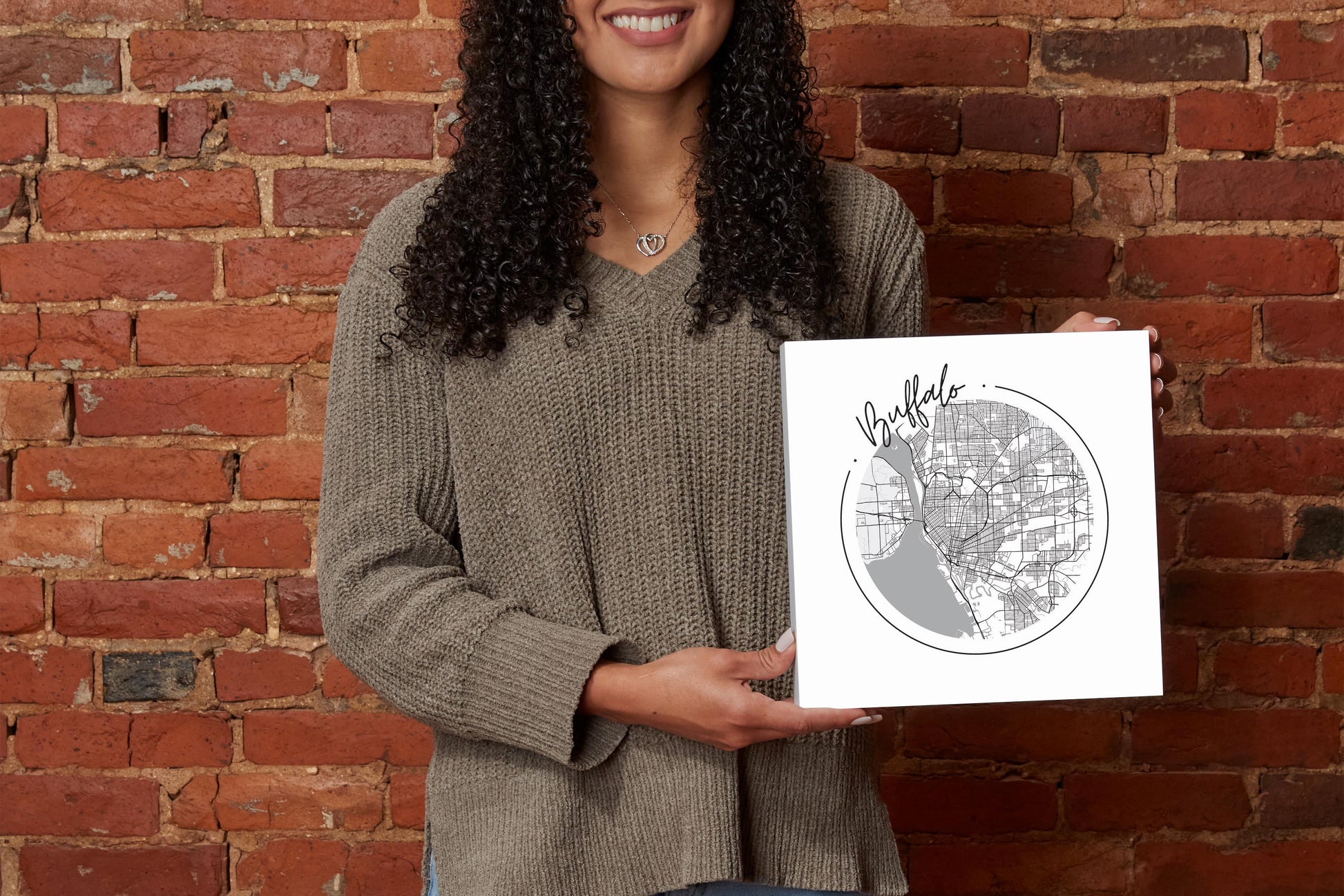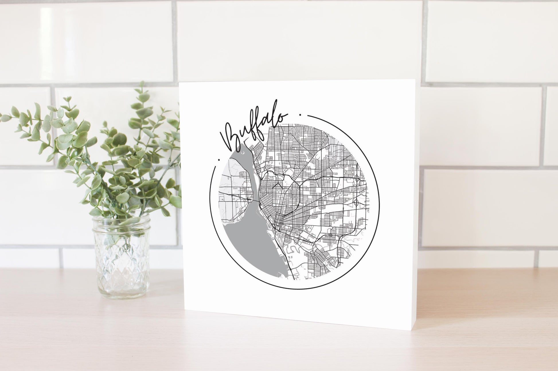 Minimalistic B&W New York Buffalo Circle Map | Wood Block | Eaches | Min 2