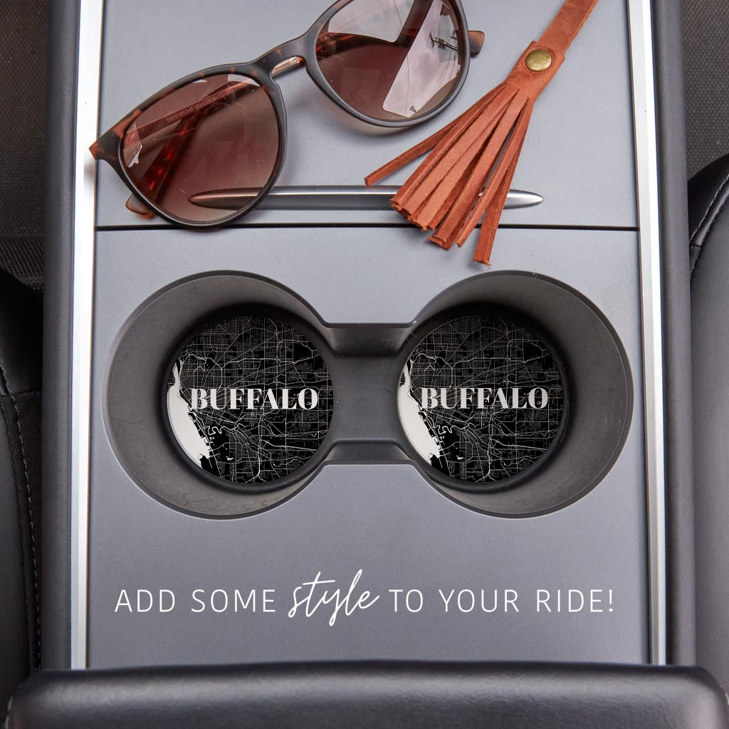 Minimalistic B&W New York Buffalo Map | Absorbent Car Coasters | Set of 2 | Min 4