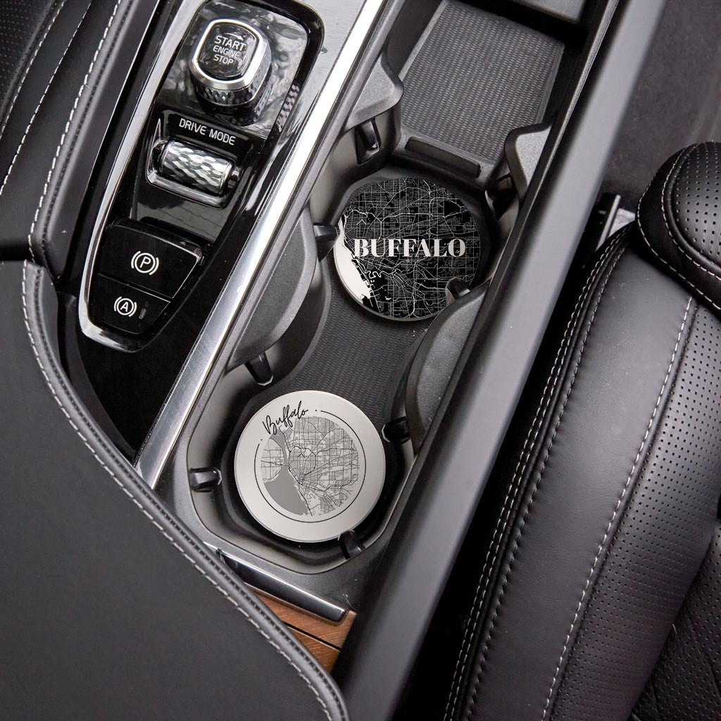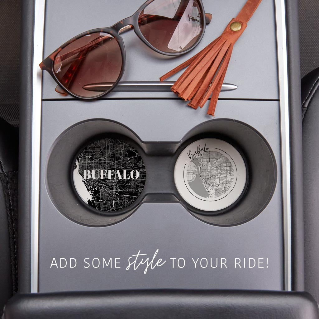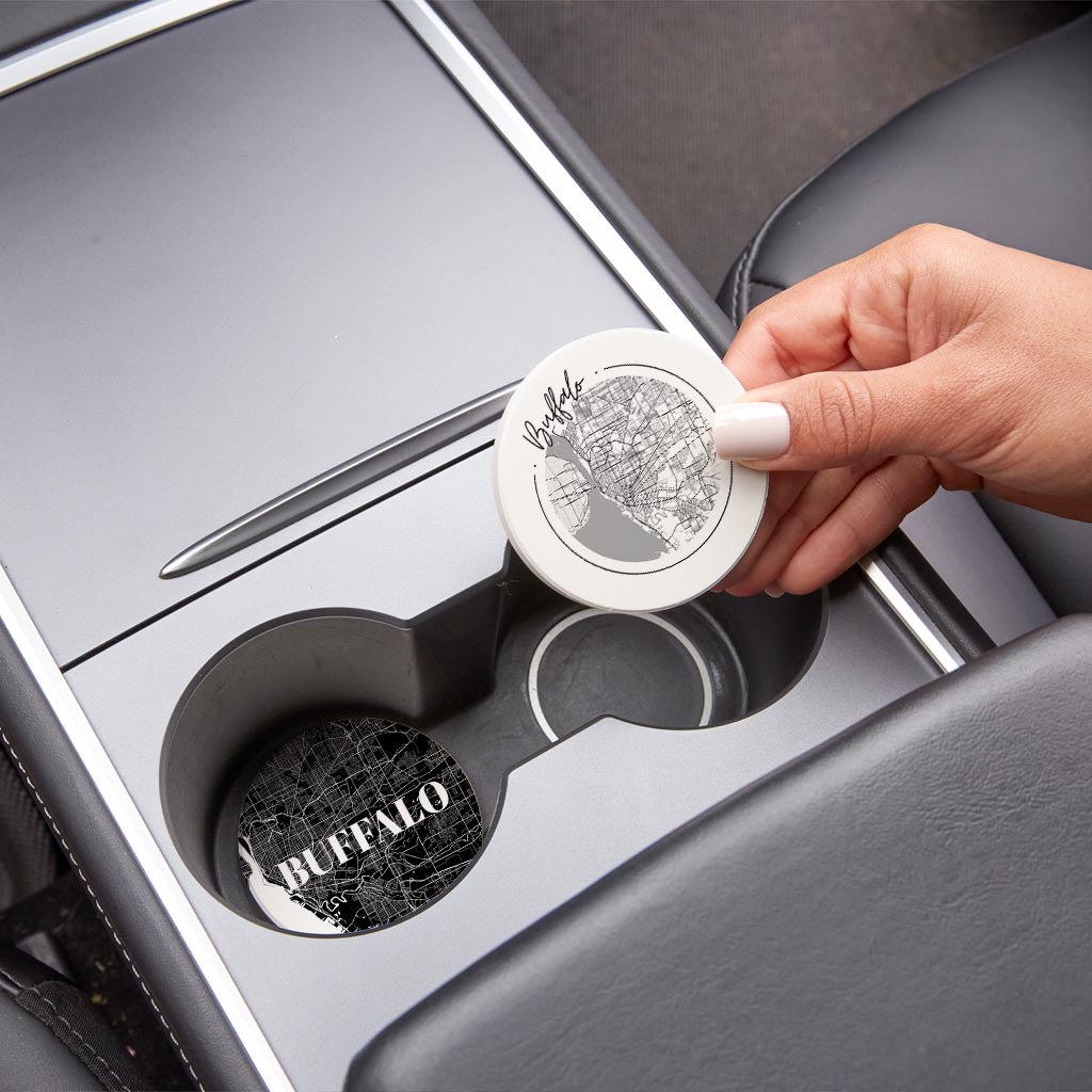 Minimalistic B&W New York Buffalo Maps| Absorbent Car Coasters | Set of 2 | Min 4