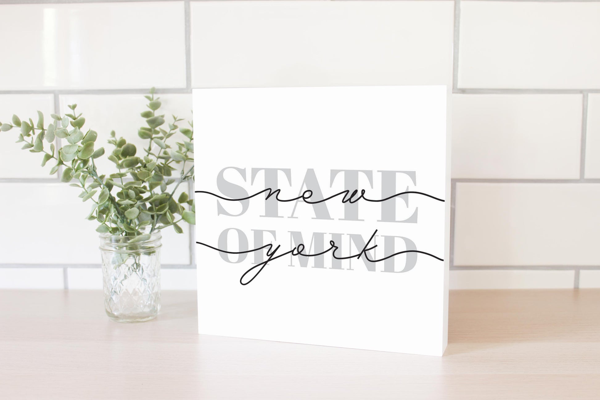 Minimalistic B&W New York Quip Ny State Of Mind | Wood Block | Eaches | Min 2