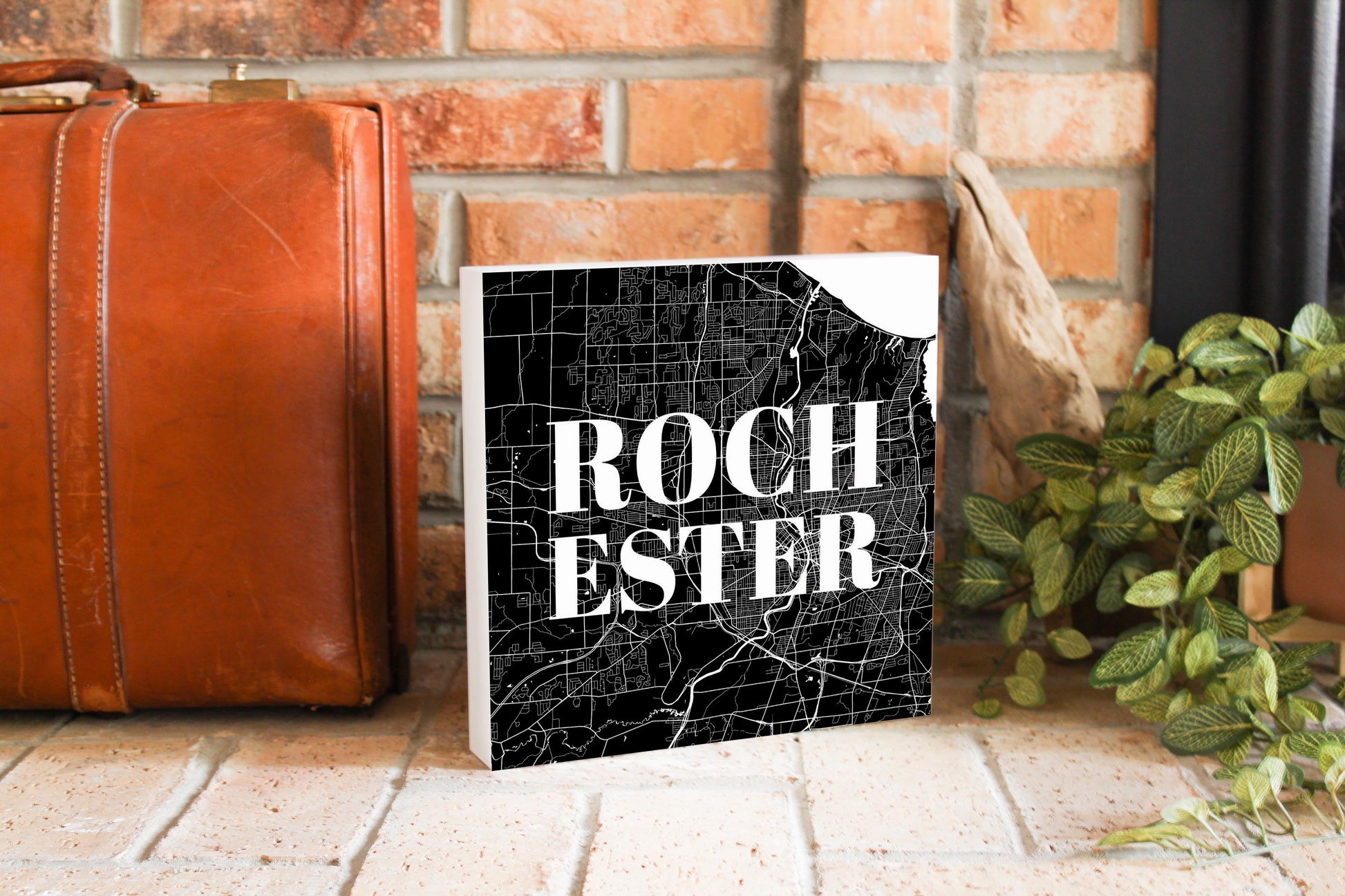 Minimalistic B&W New York Rochester Map | Wood Block | Eaches | Min 2
