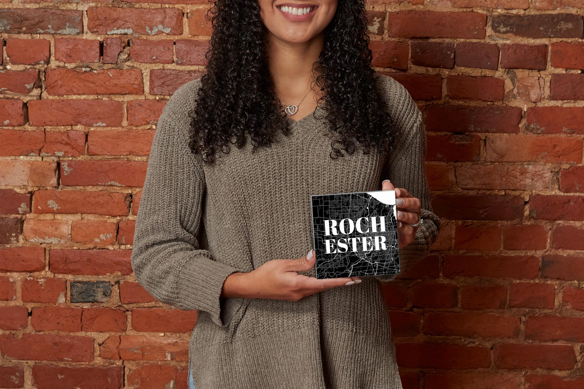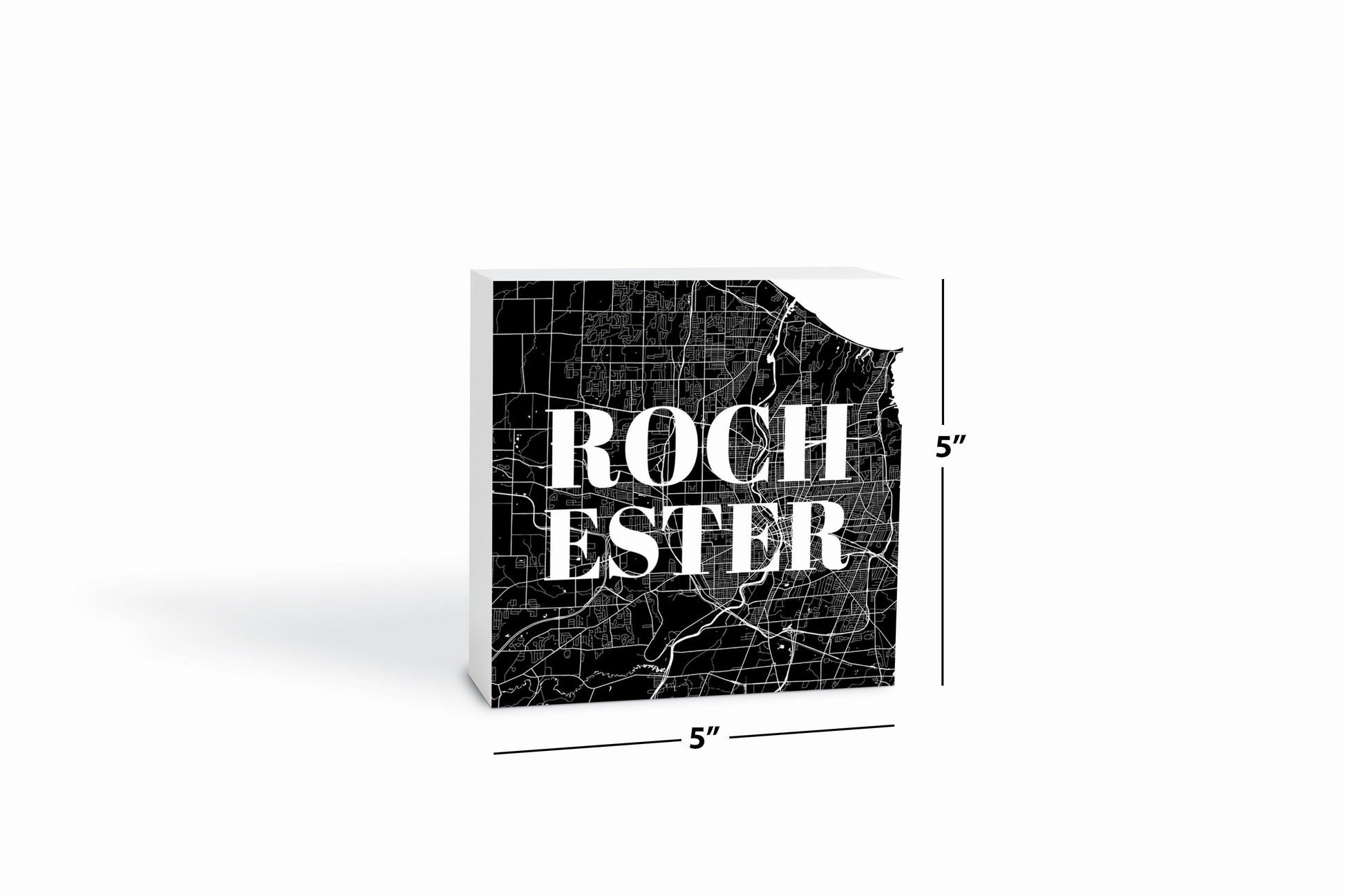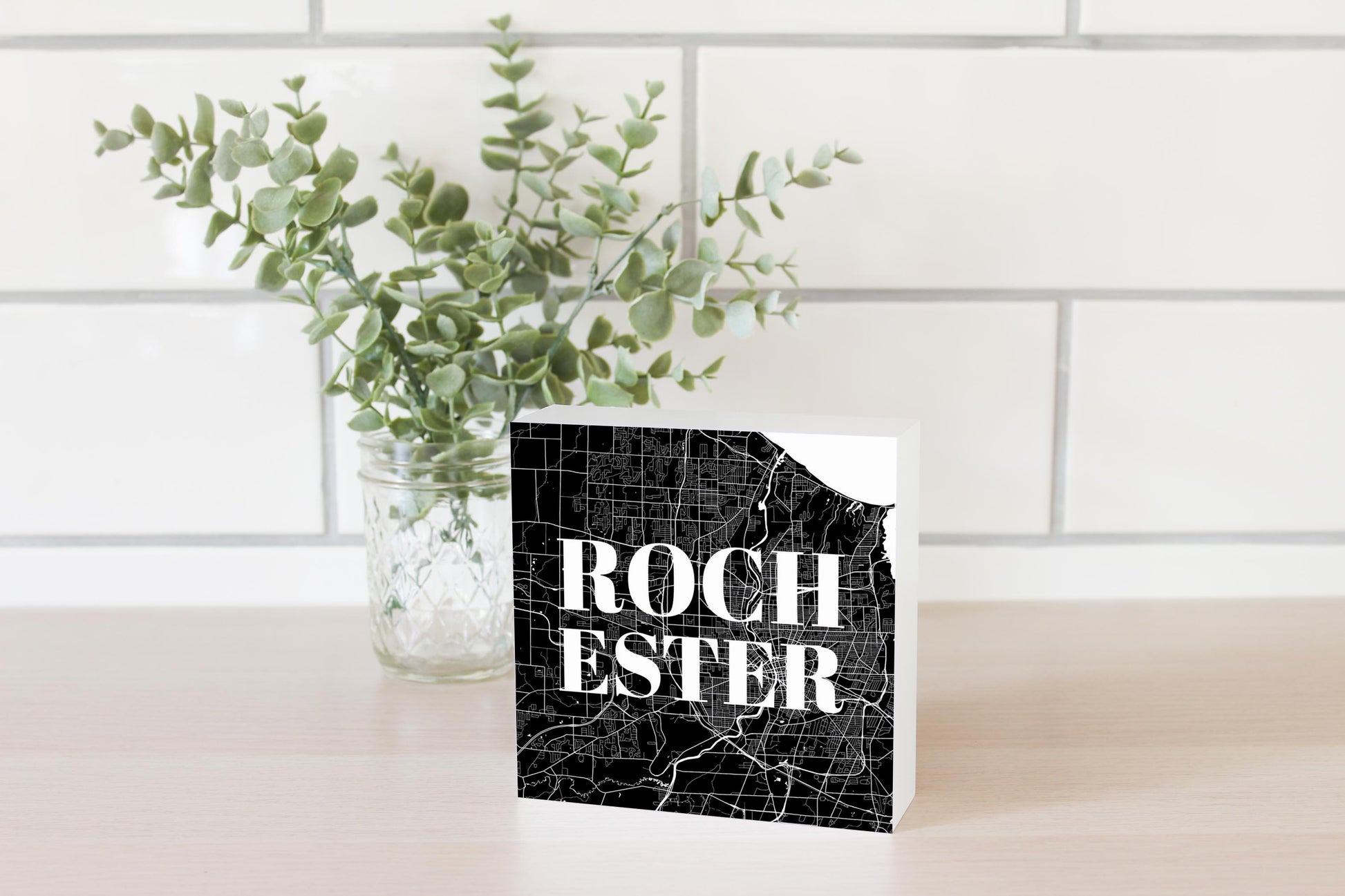 Minimalistic B&W New York Rochester Map | Wood Block | Eaches | Min 4