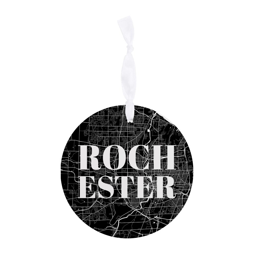 Minimalistic B&W New York Rochester Map | Wood Ornament | Eaches | Min 6