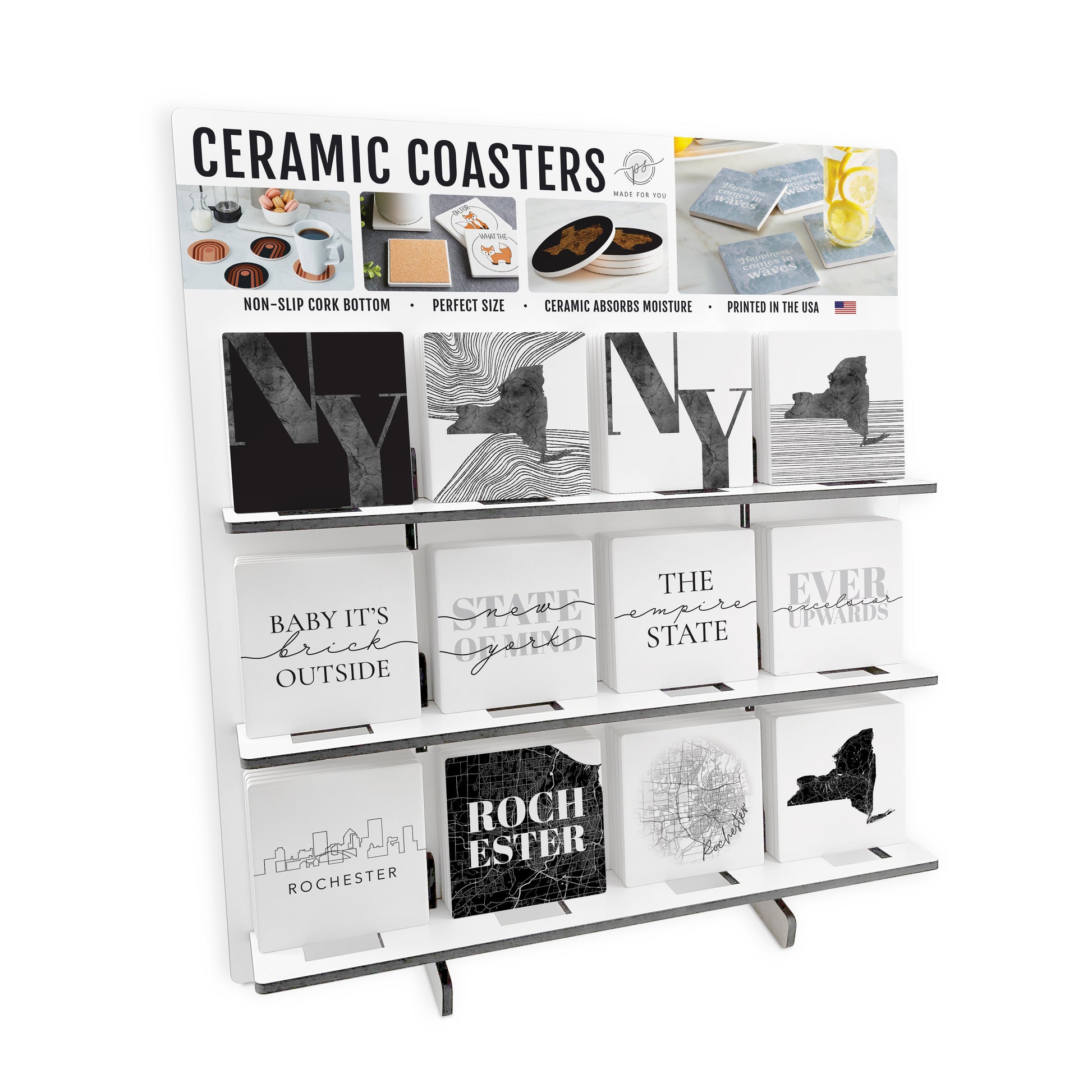 Minimalistic B&W New York Rochester Square Ceramic Coaster Loaded Display POP Min of 1