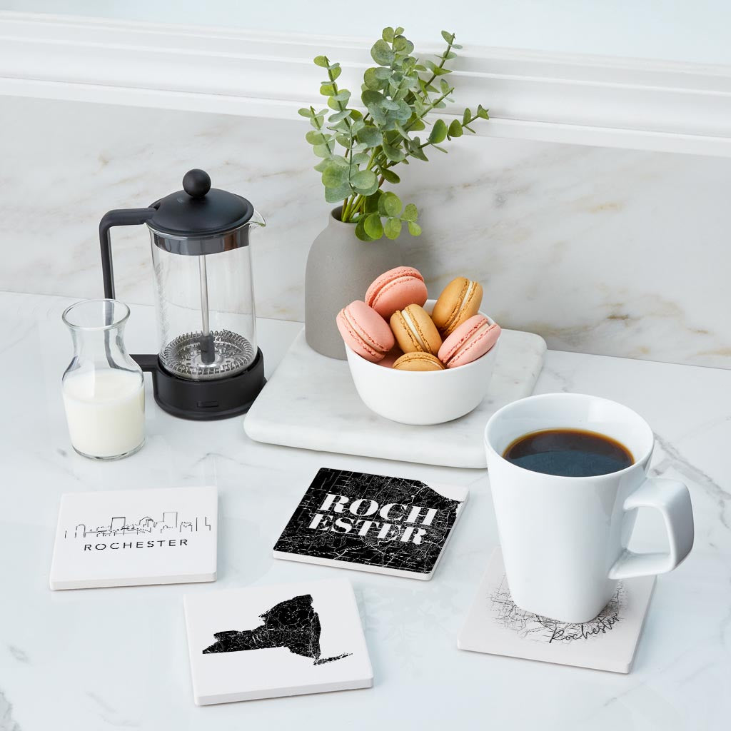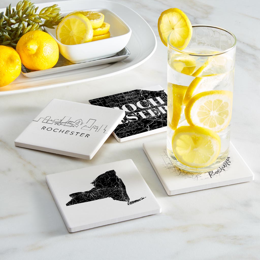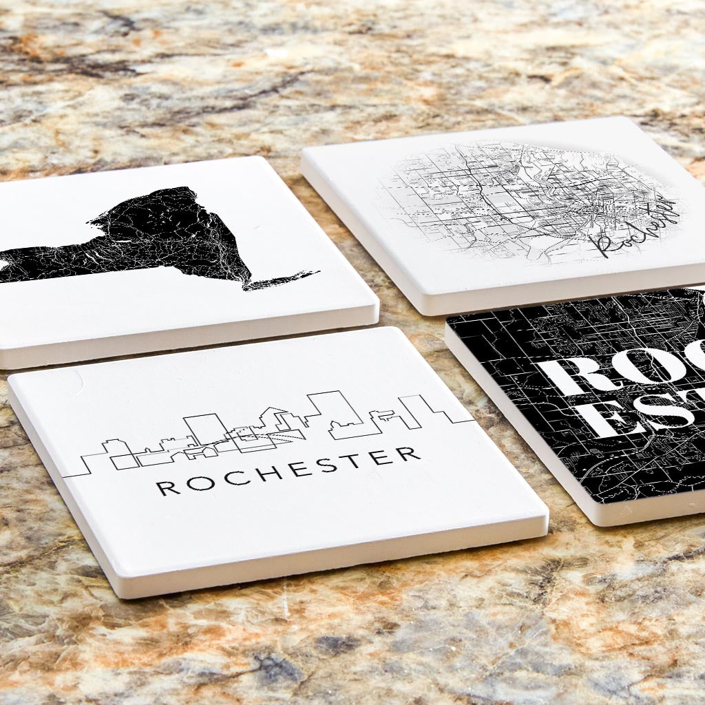 Minimalistic B&W New York Rochester State | Absorbent Coasters | Set of 4 | Min 2