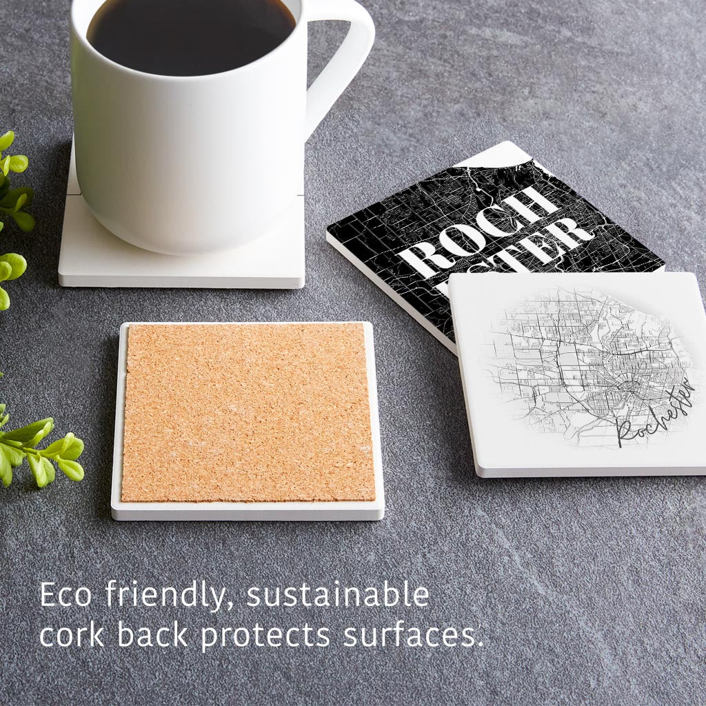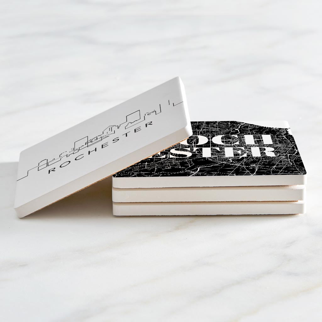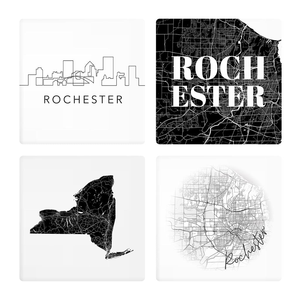 Minimalistic B&W New York Rochester State | Absorbent Coasters | Set of 4 | Min 2