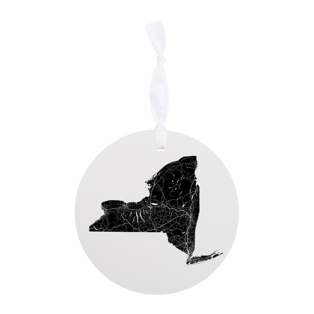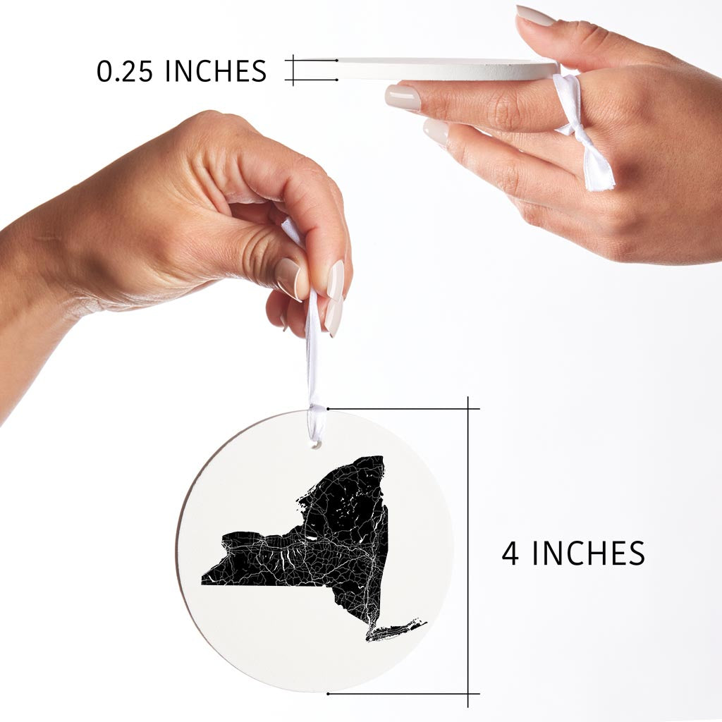 Minimalistic B&W New York State With Map | Wood Ornament | Eaches | Min 6