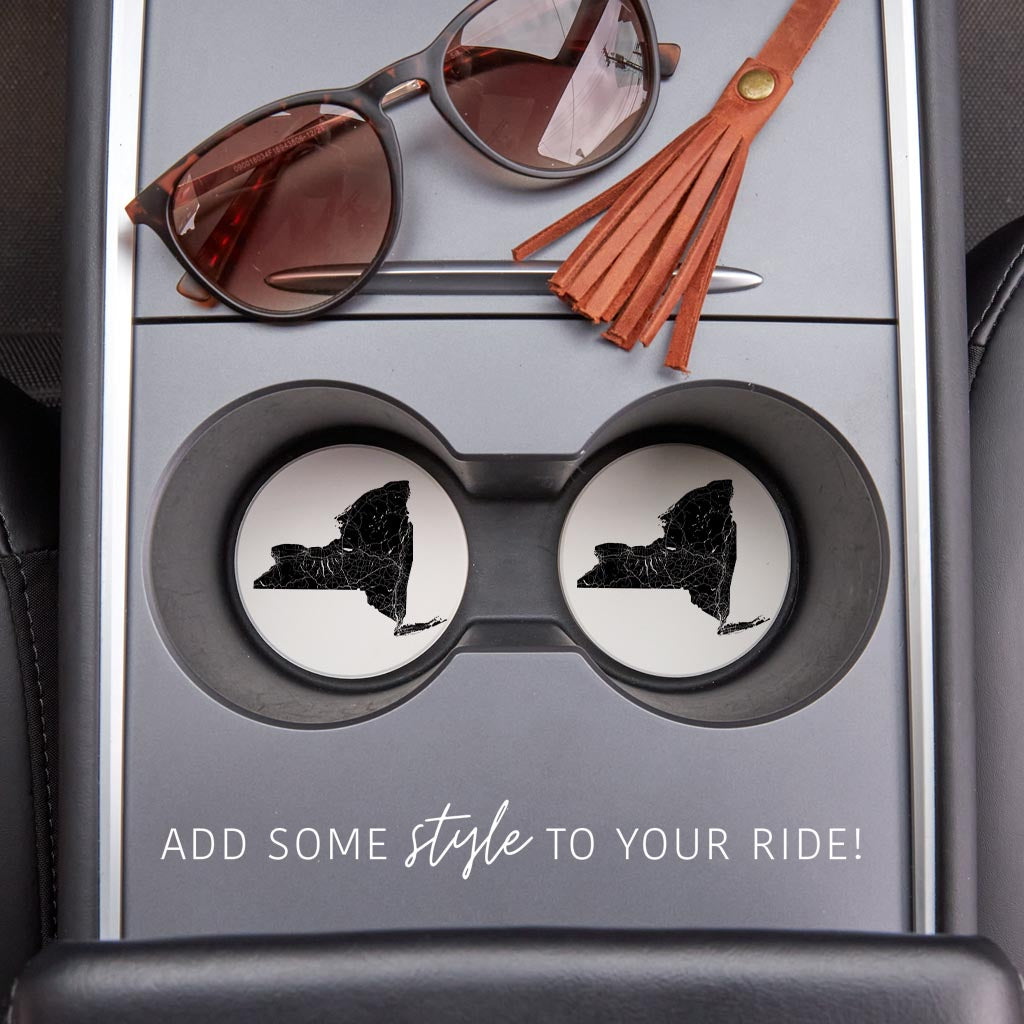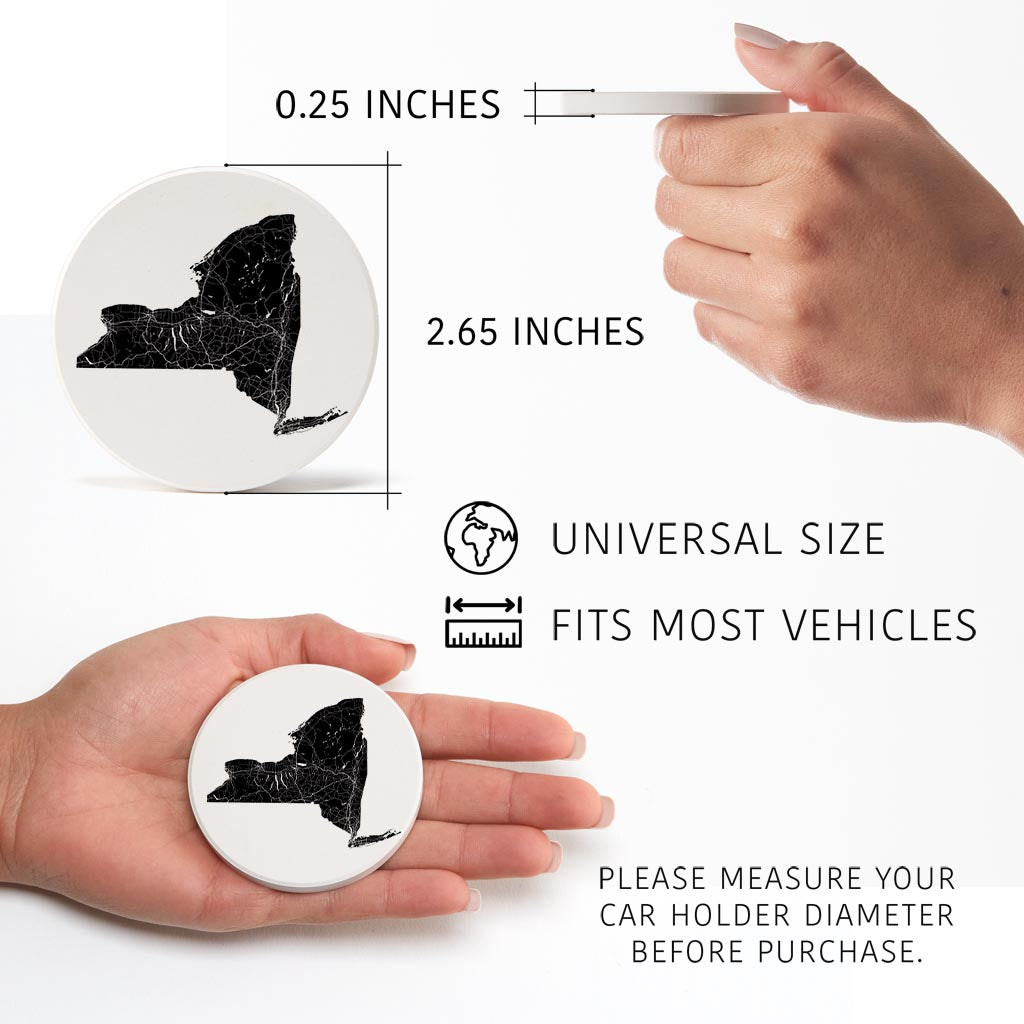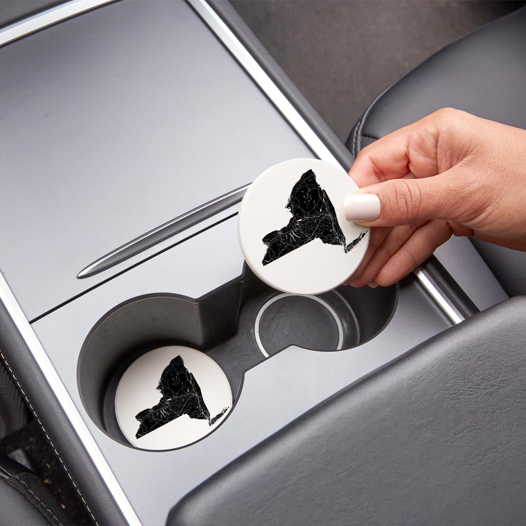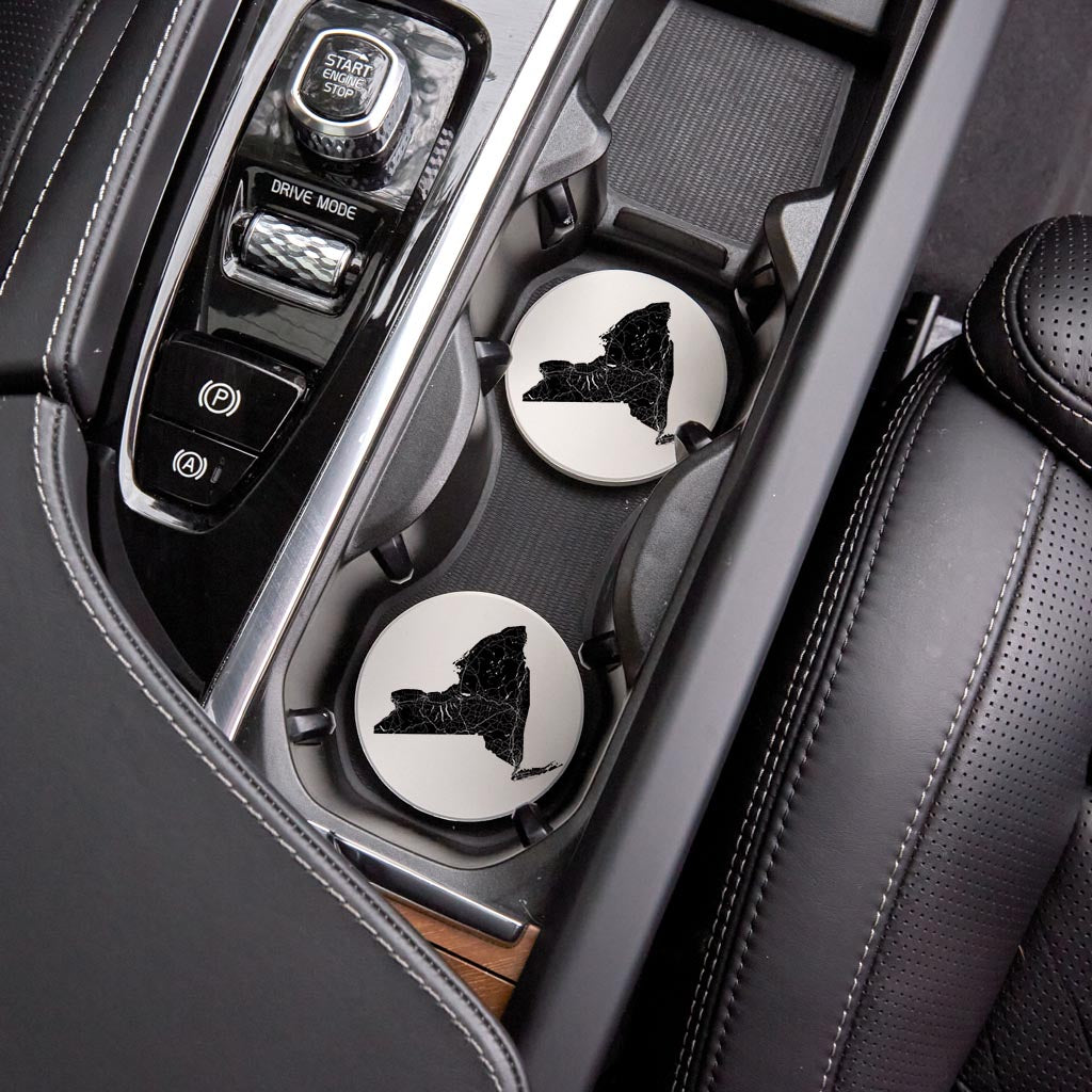 Minimalistic B&W New York State With Map | Absorbent Car Coasters | Set of 2 | Min 4