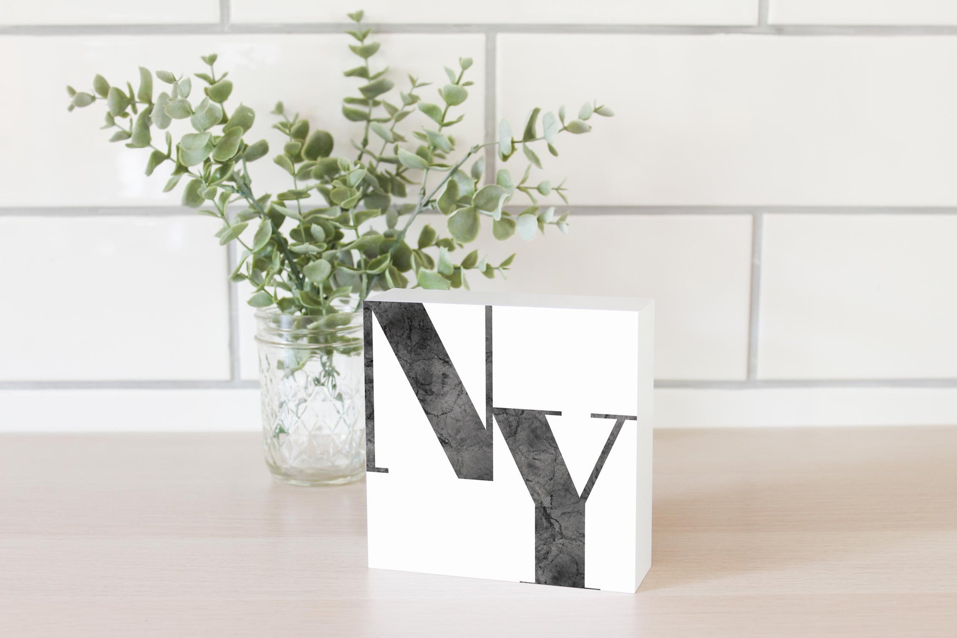 Minimalistic B&W New York White Initials | Wood Block | Eaches | Min 4