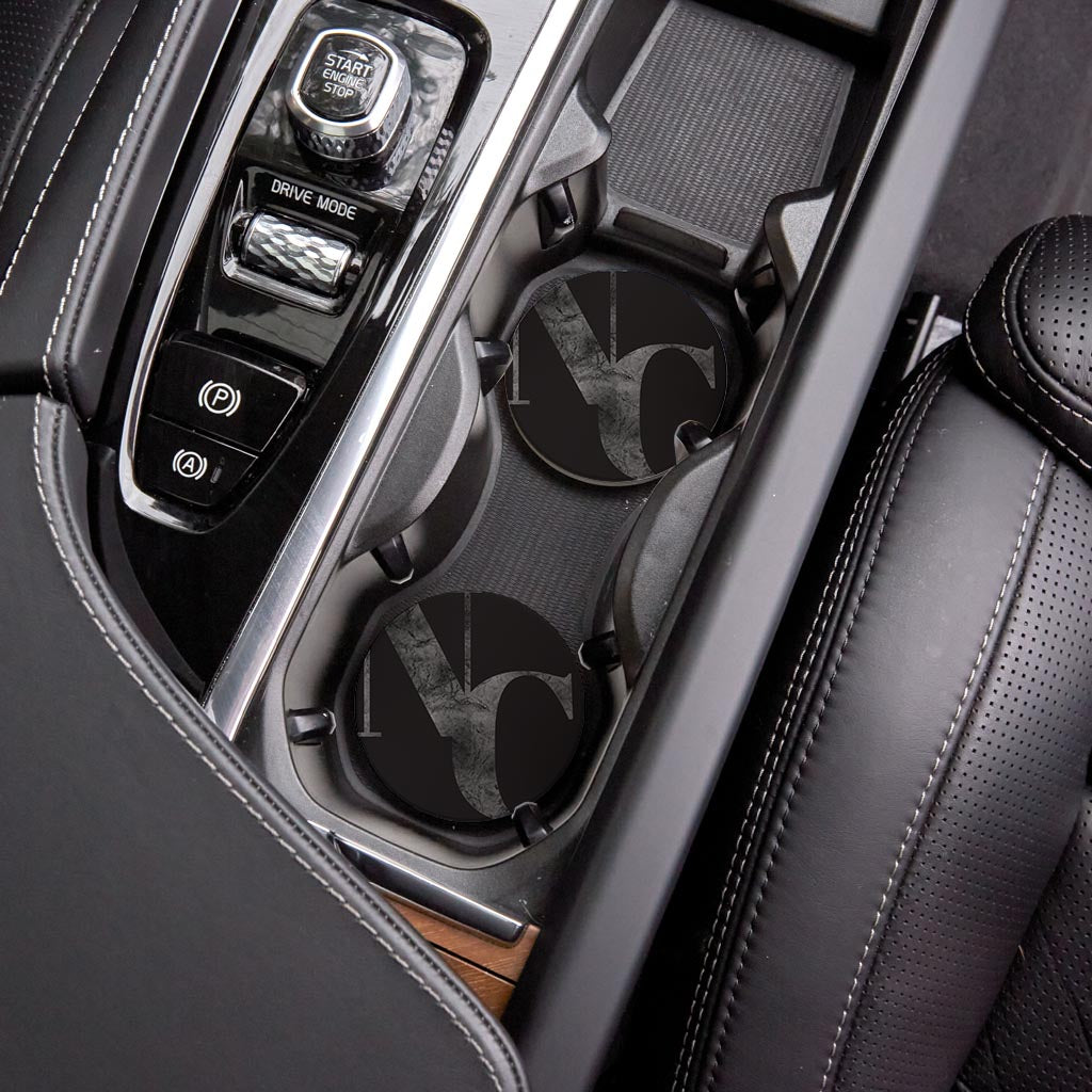 Minimalistic B&W North Carolina Black Initials| Absorbent Car Coasters | Set of 2 | Min 4