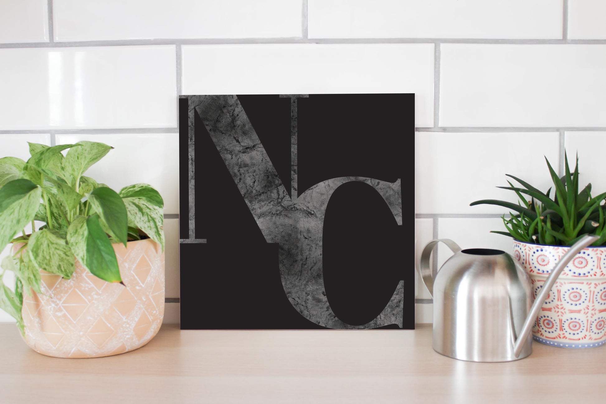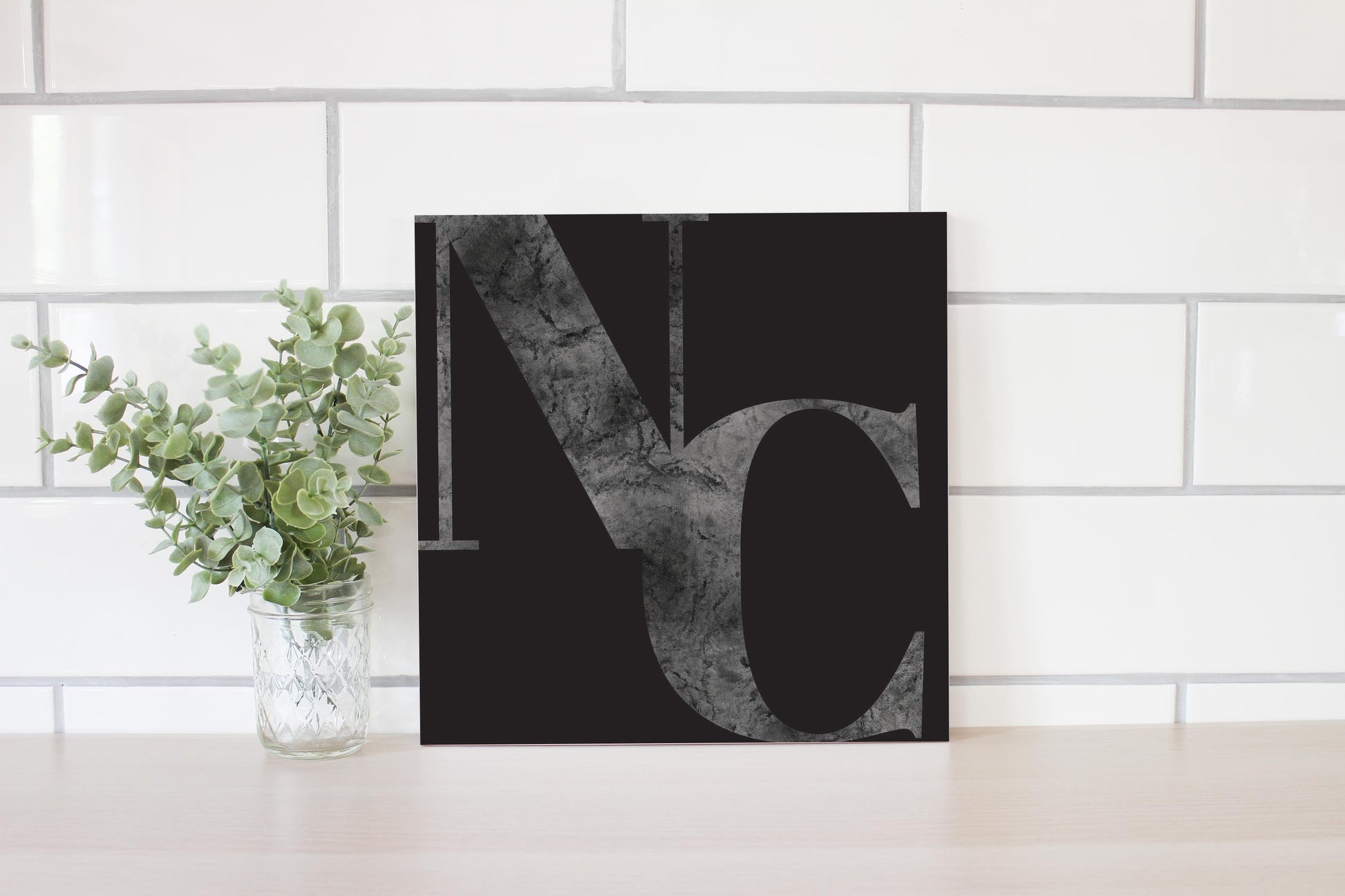 Minimalistic B&W North Carolina Black Initials | Wood Sign | Eaches | Min 2
