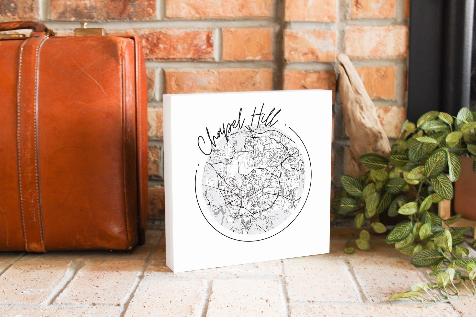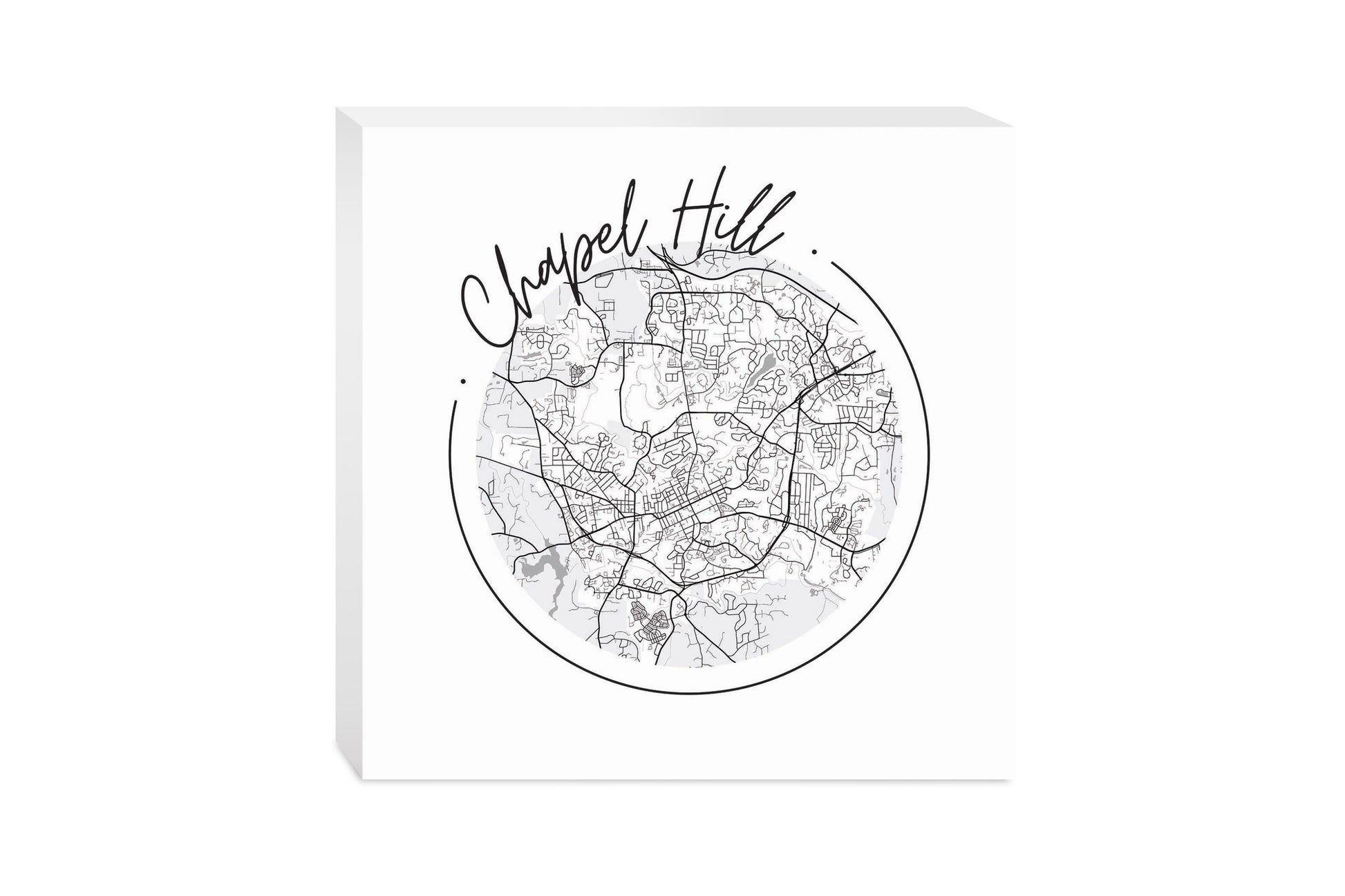 Minimalistic B&W North Carolina Chapel Hill Circle Map | Wood Block | Eaches | Min 2