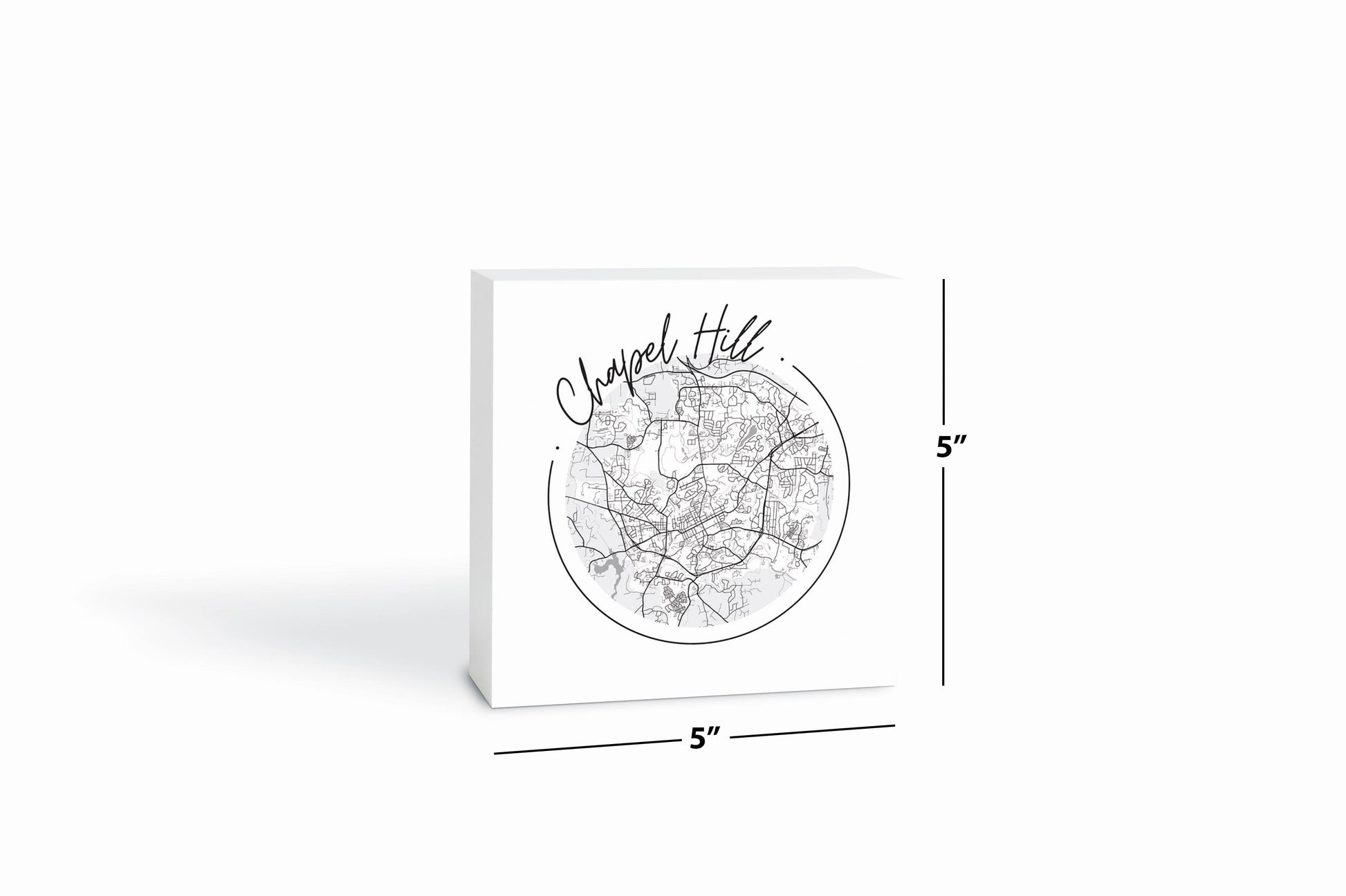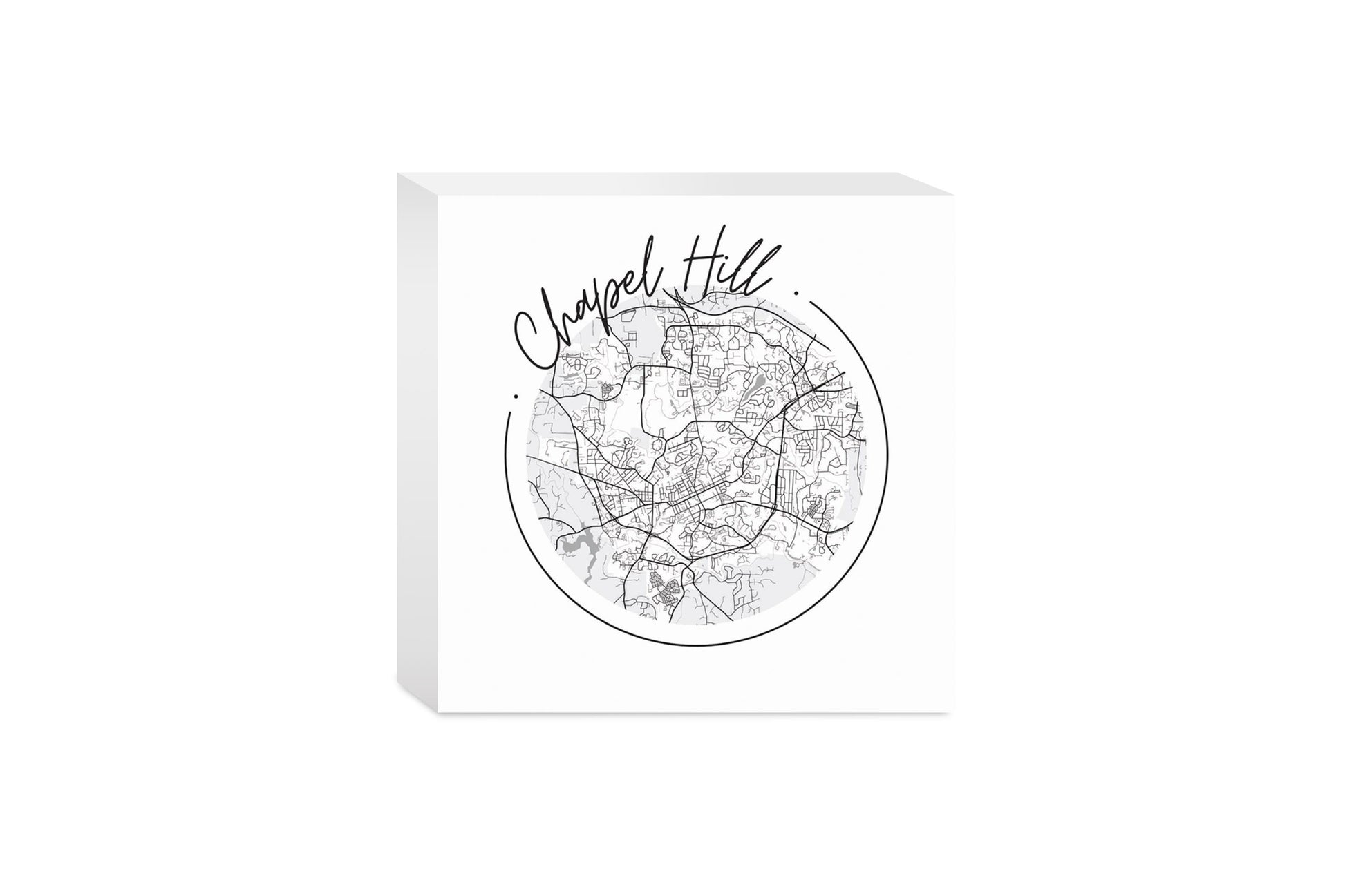 Minimalistic B&W North Carolina Chapel Hill Circle Map | Wood Block | Eaches | Min 4