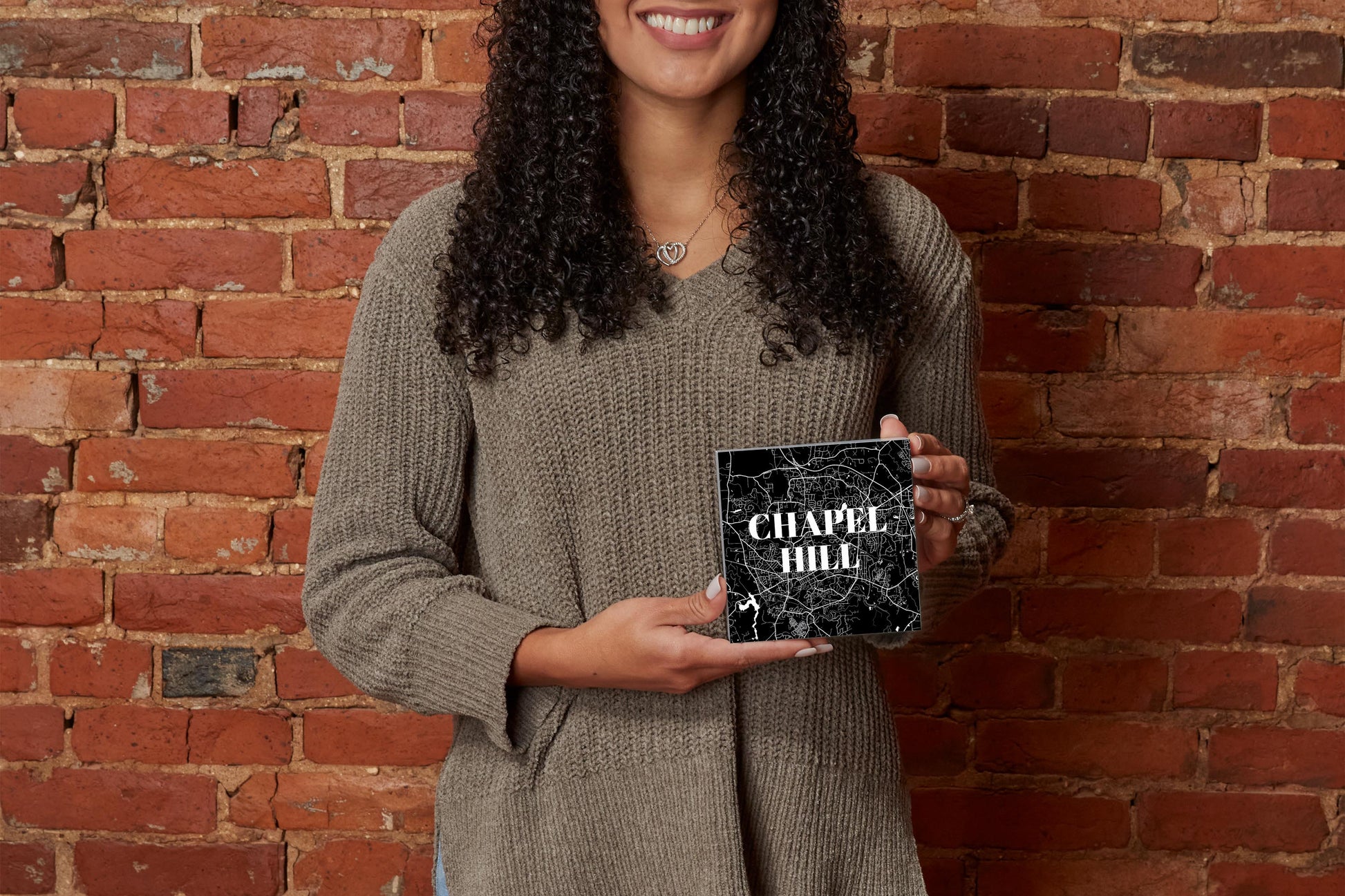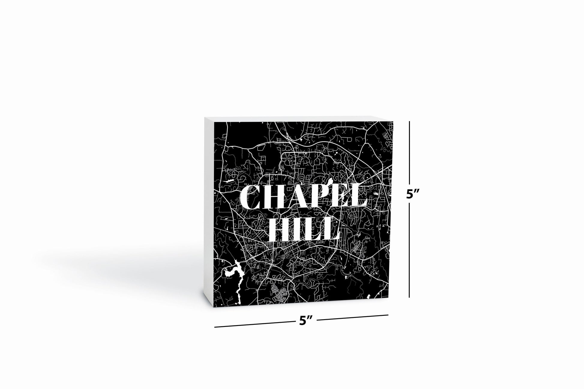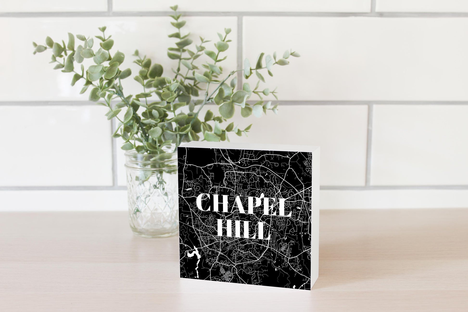 Minimalistic B&W North Carolina Chapel Hill Map | Wood Block | Eaches | Min 4