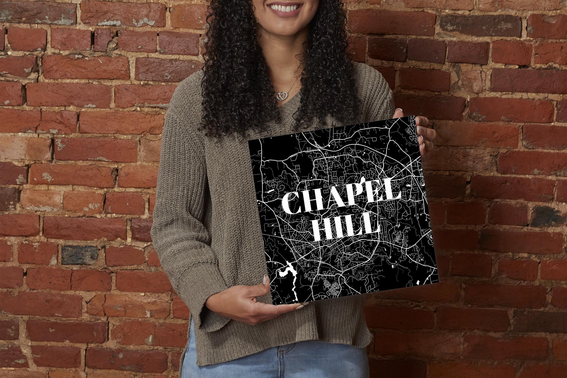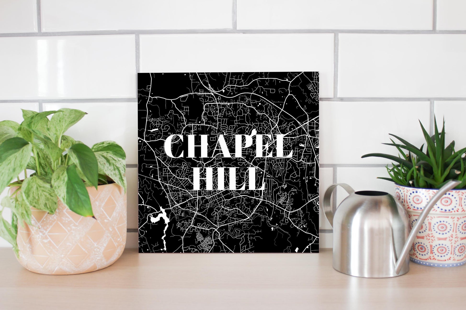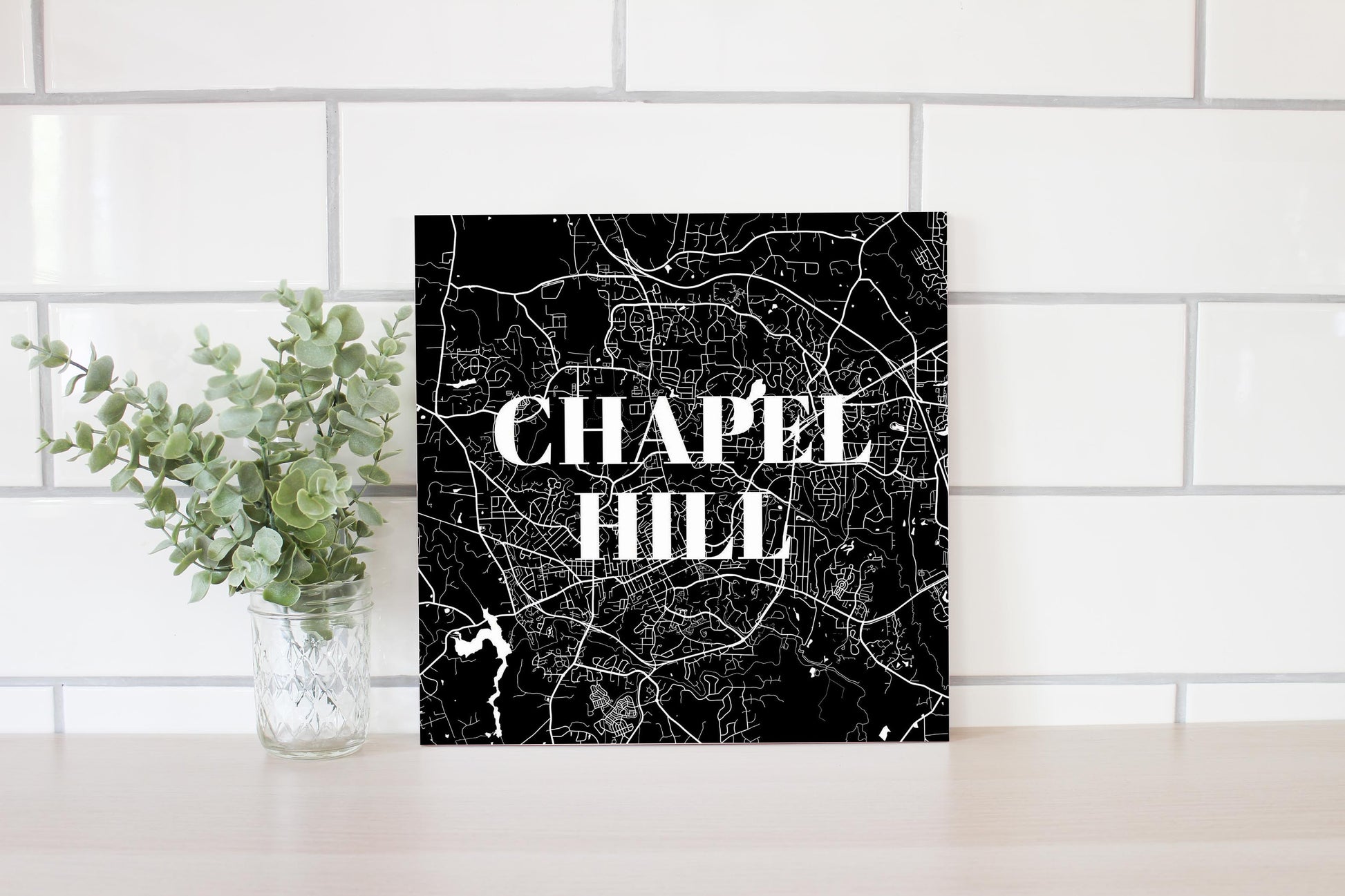 Minimalistic B&W North Carolina Chapel Hill Map | Wood Sign | Eaches | Min 2