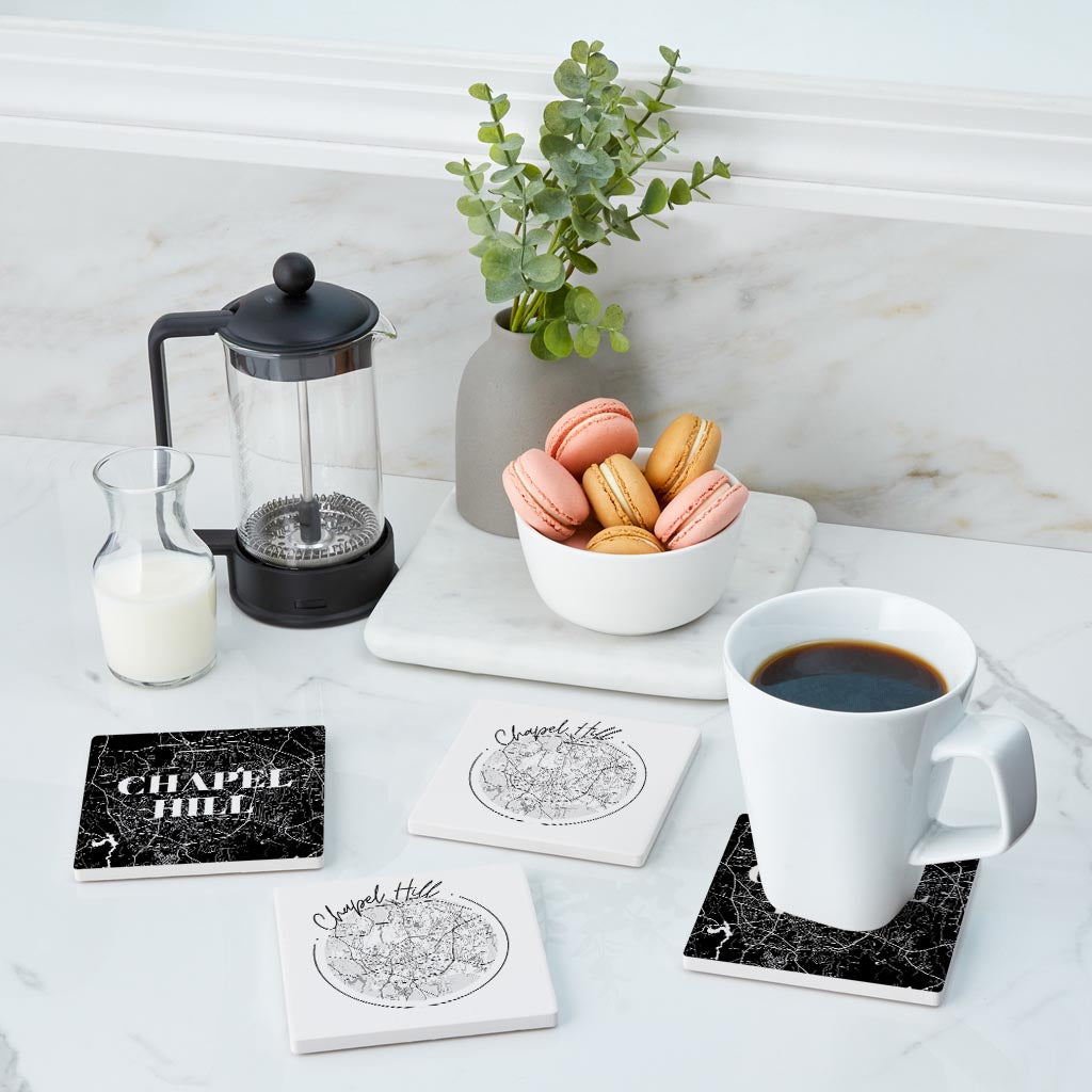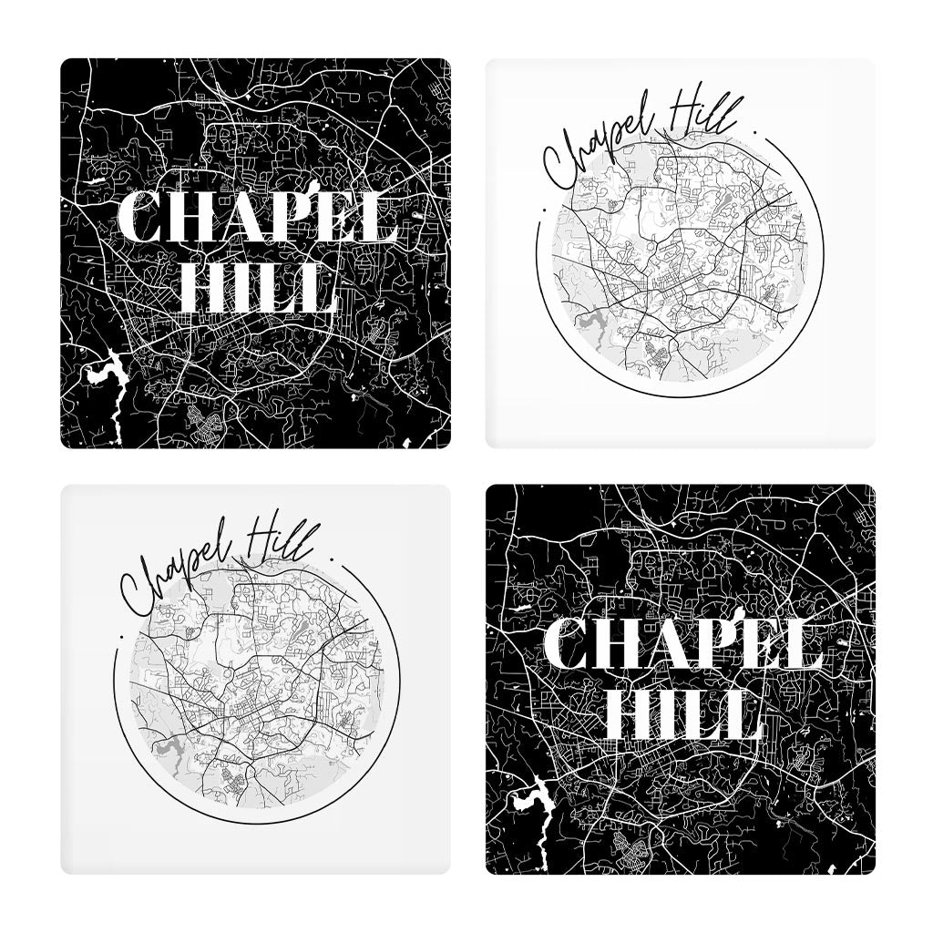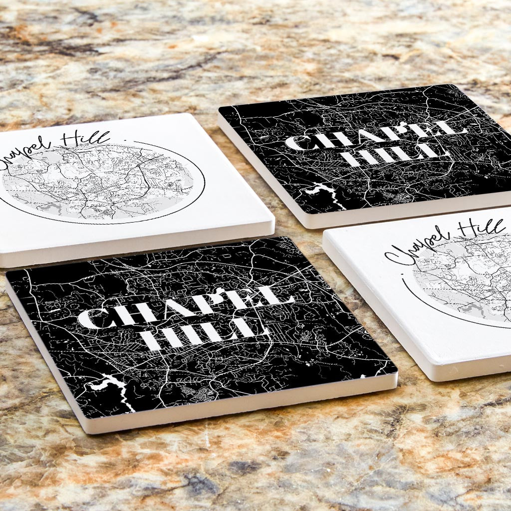 Minimalistic B&W North Carolina Chapel Hill Maps | Absorbent Coasters | Set of 4 | Min 2