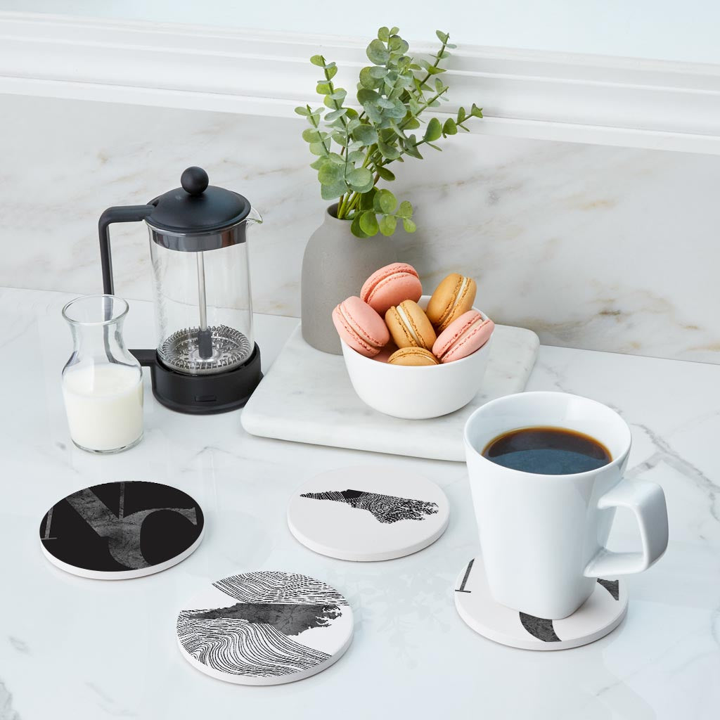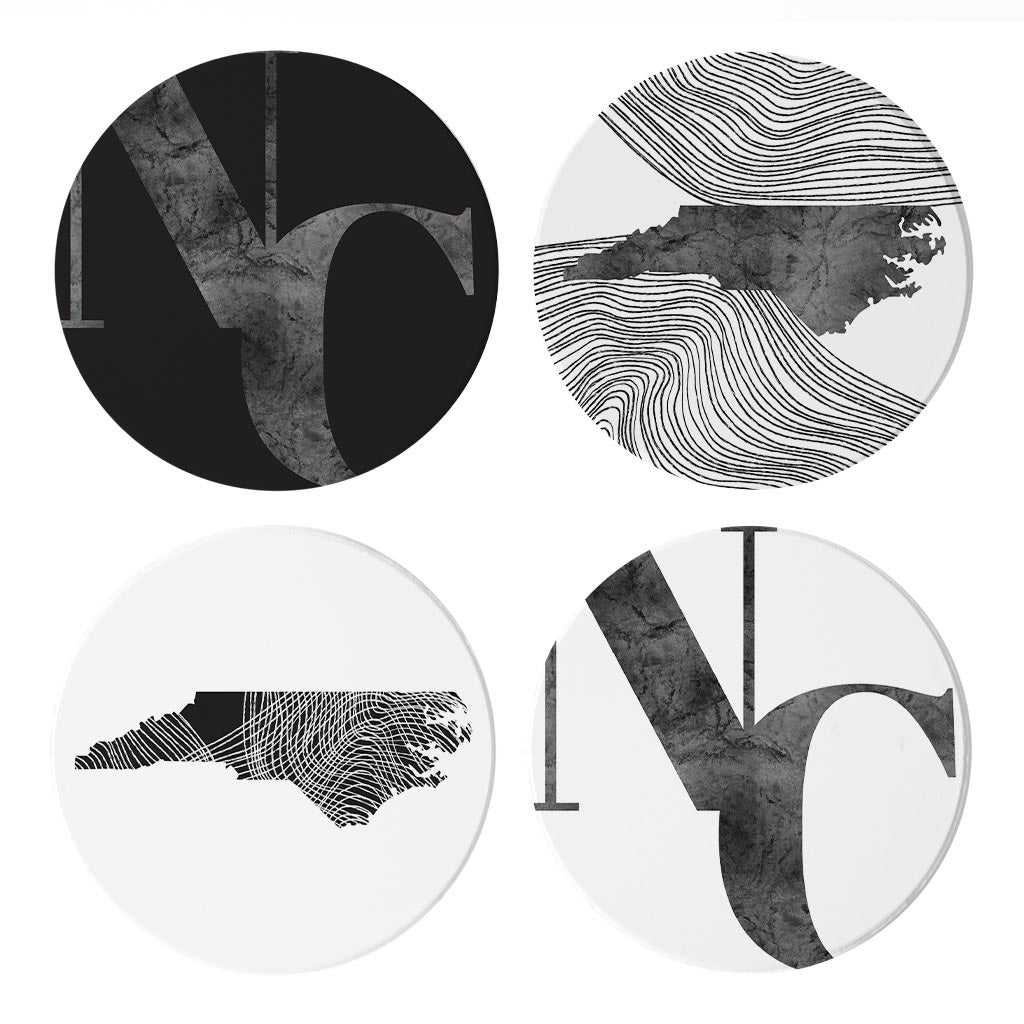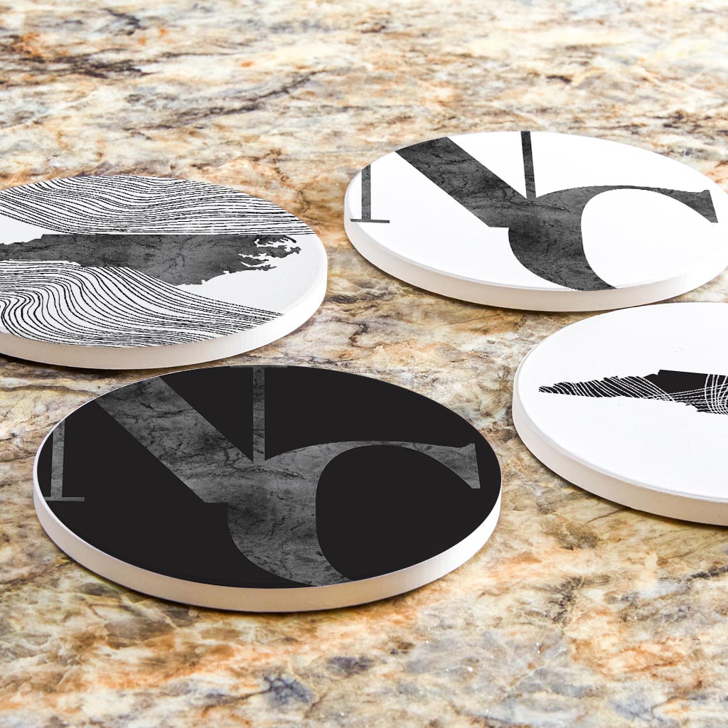 Minimalistic B&W North Carolina Initials State Shapes | Absorbent Coasters | Set of 4 | Min 2