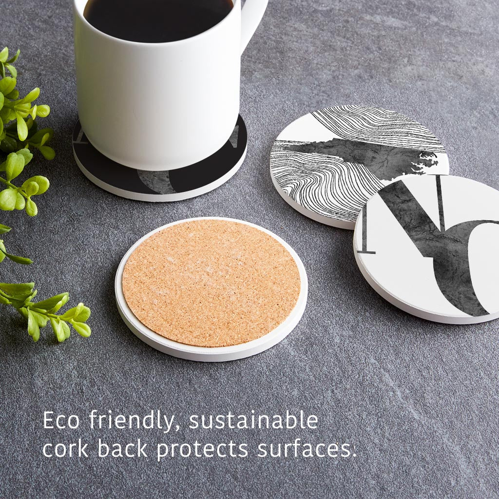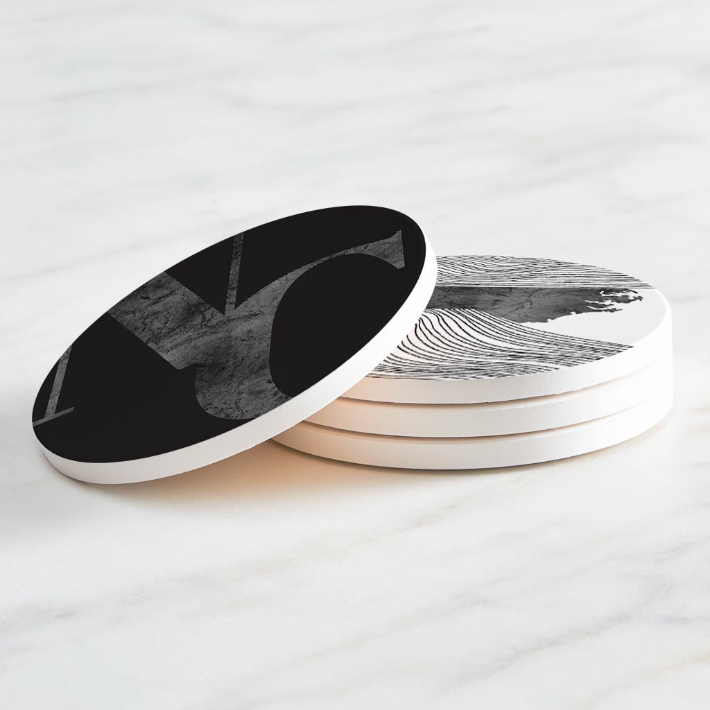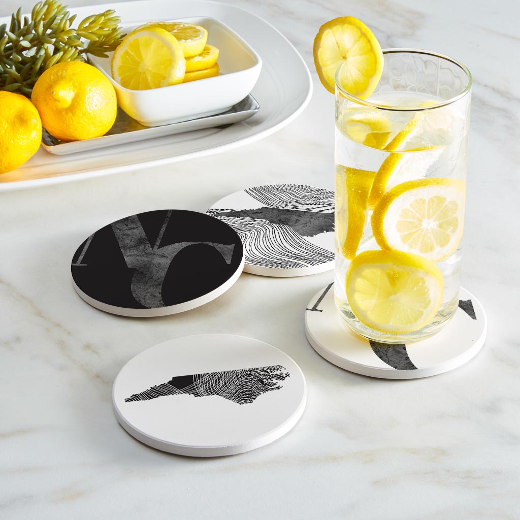 Minimalistic B&W North Carolina Initials State Shapes | Absorbent Coasters | Set of 4 | Min 2
