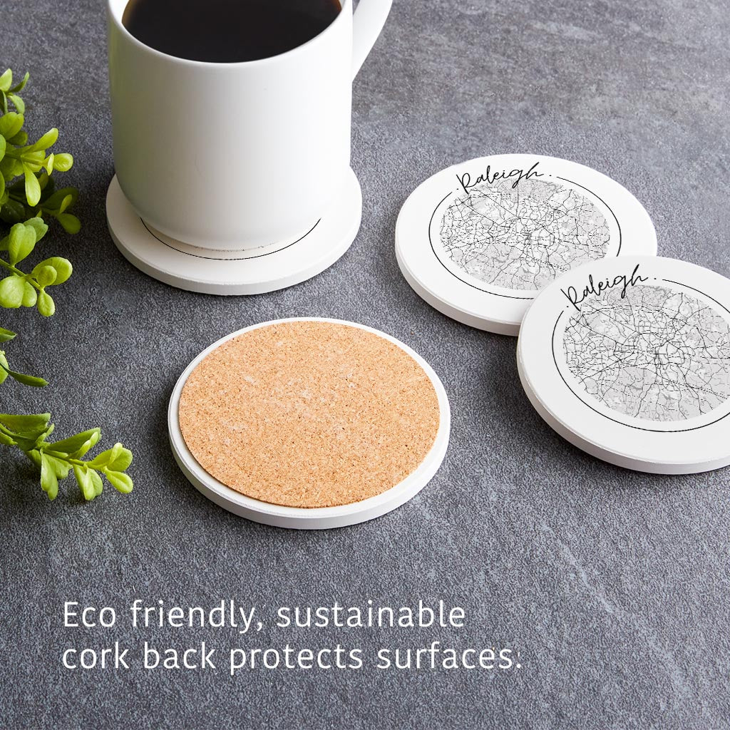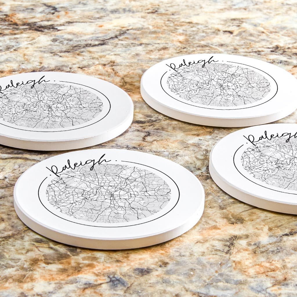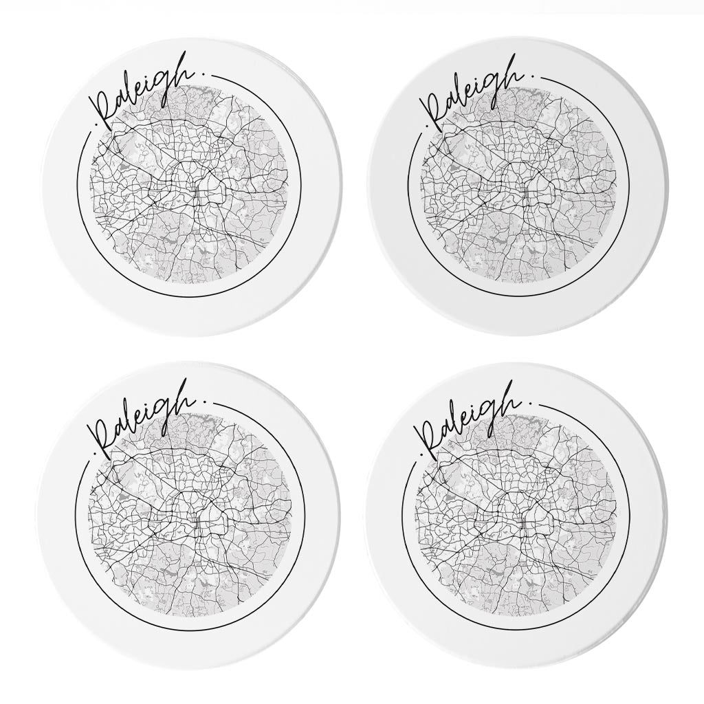 Minimalistic B&W North Carolina Raleigh Circle Map | Absorbent Coasters | Set of 4 | Min 2