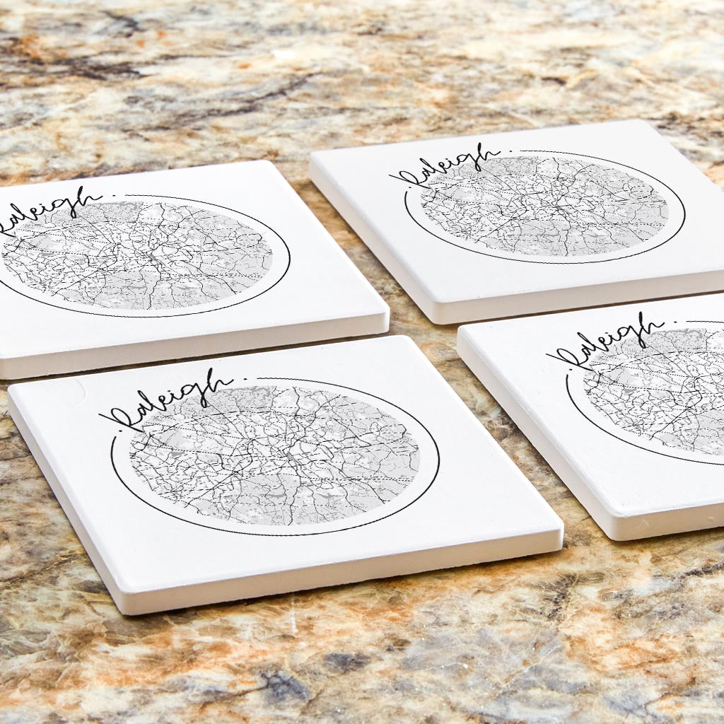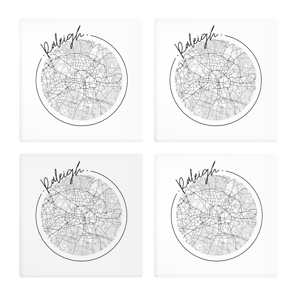 Minimalistic B&W North Carolina Raleigh Circle Map | Absorbent Coasters | Set of 4 | Min 2