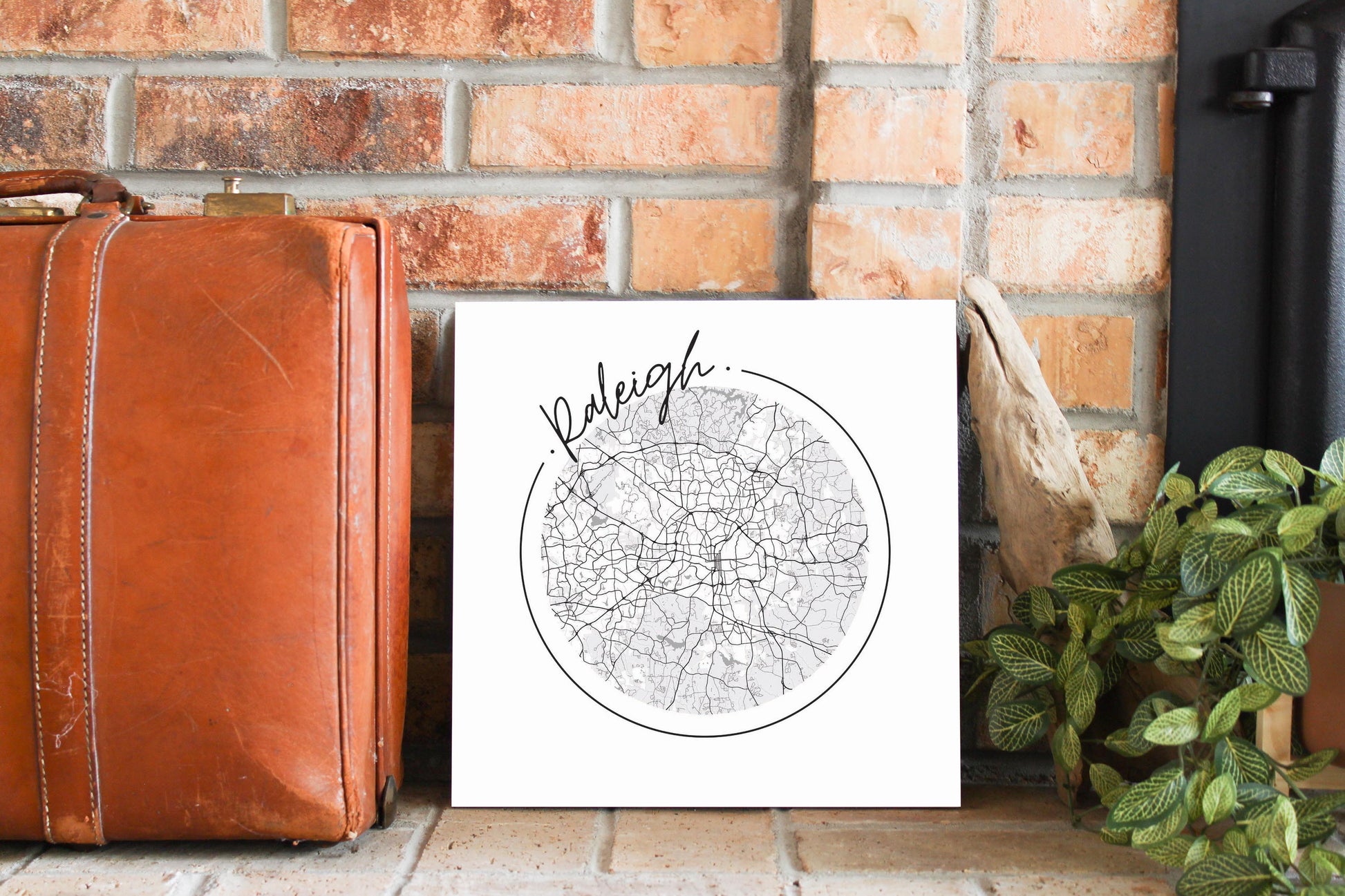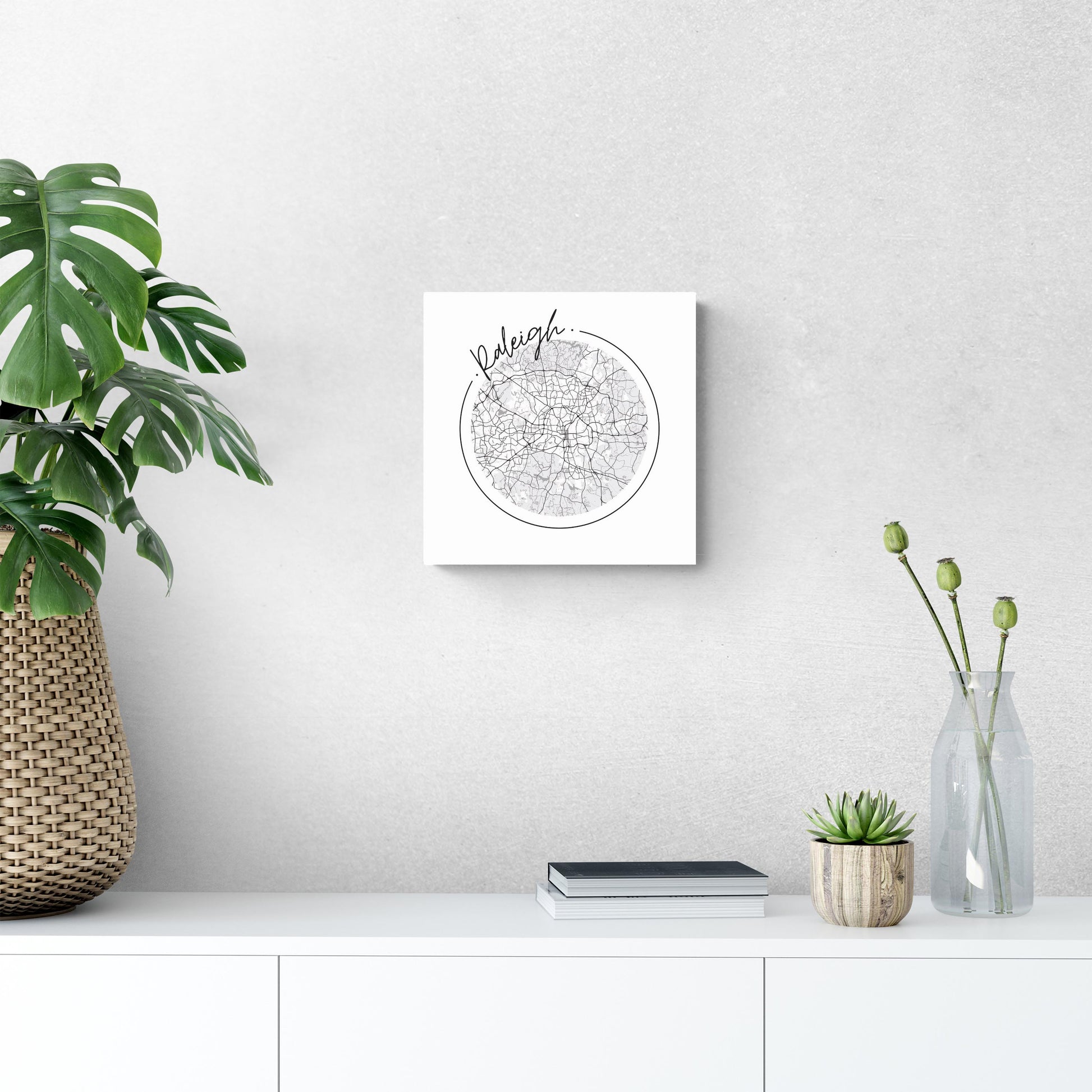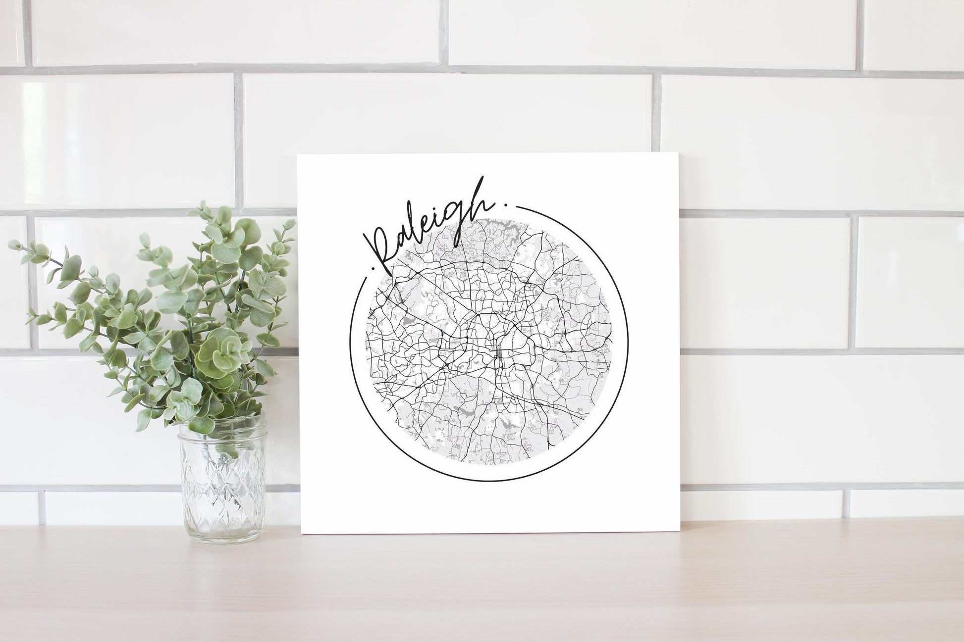 Minimalistic B&W North Carolina Raleigh Circle Map | Wood Sign | Eaches | Min 2