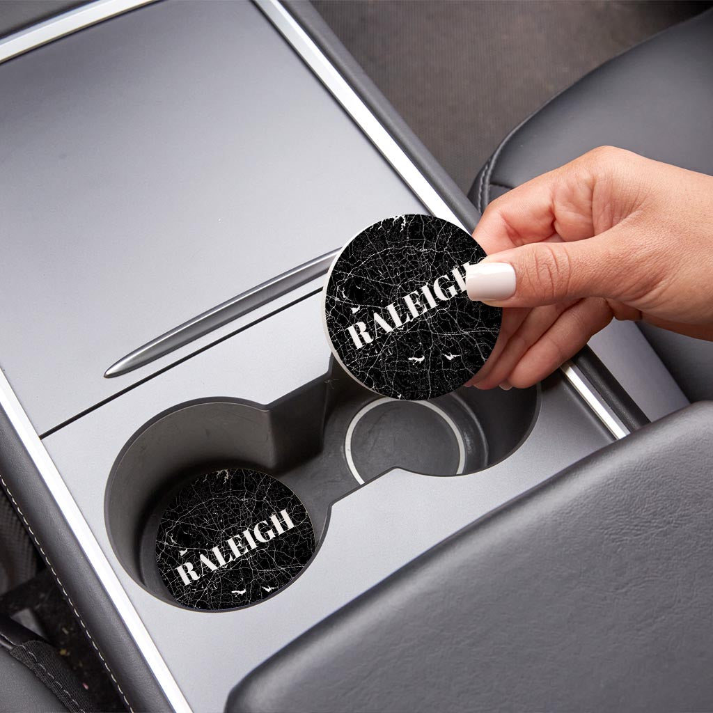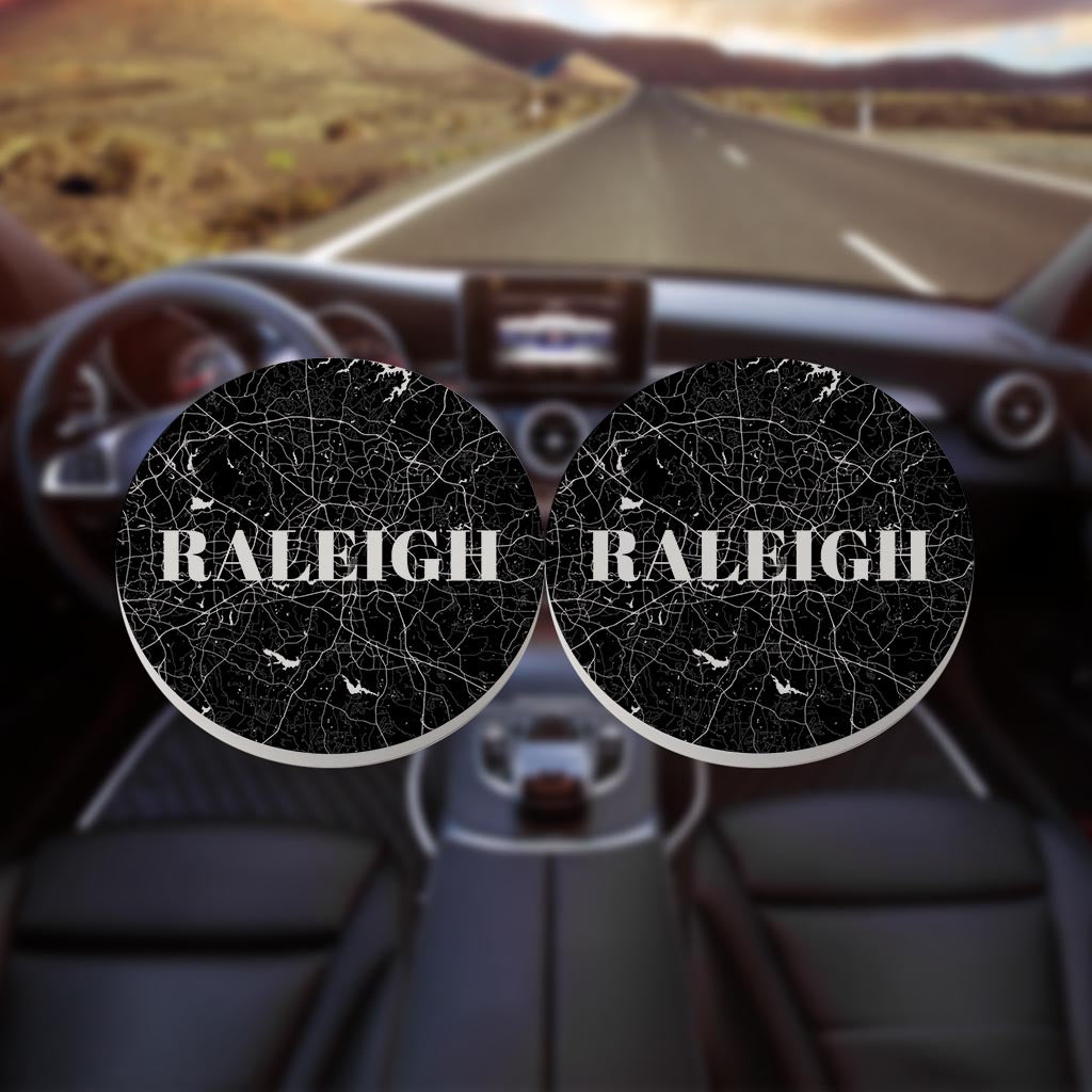 Minimalistic B&W North Carolina Raleigh Map| Absorbent Car Coasters | Set of 2 | Min 4