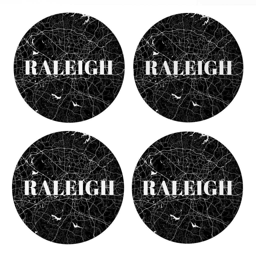 Minimalistic B&W North Carolina Raleigh Map | Absorbent Coasters | Set of 4 | Min 2