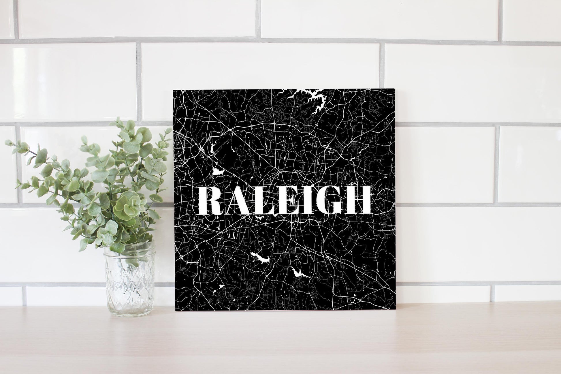 Minimalistic B&W North Carolina Raleigh Map | Wood Sign | Eaches | Min 2