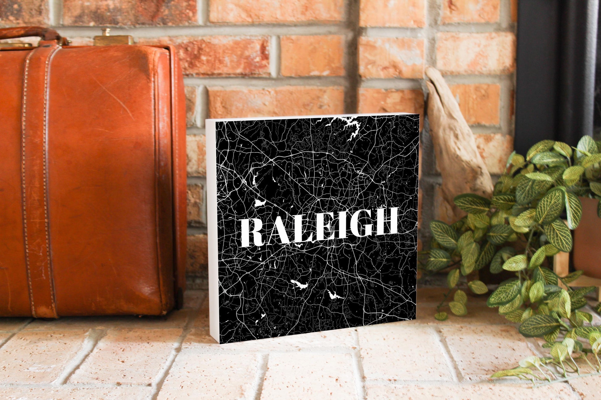 Minimalistic B&W North Carolina Raleigh Map | Wood Block | Eaches | Min 2