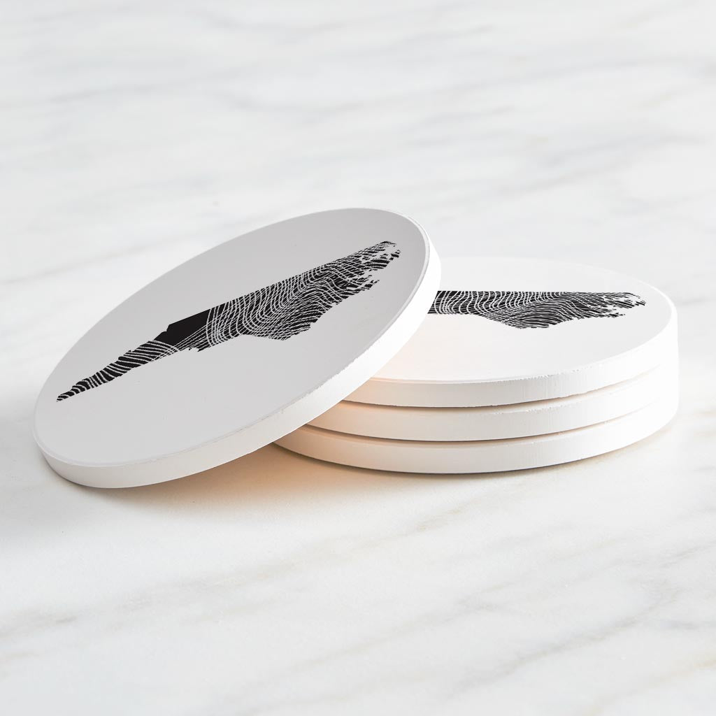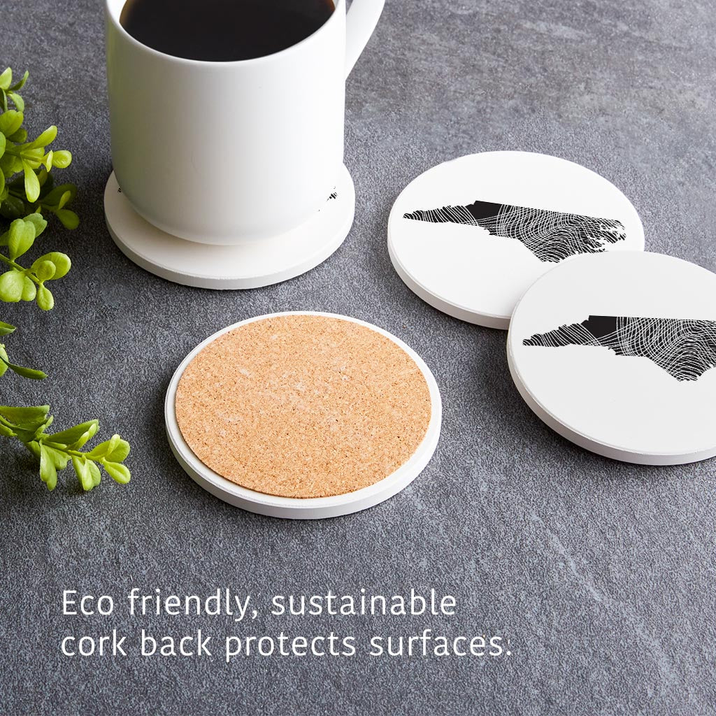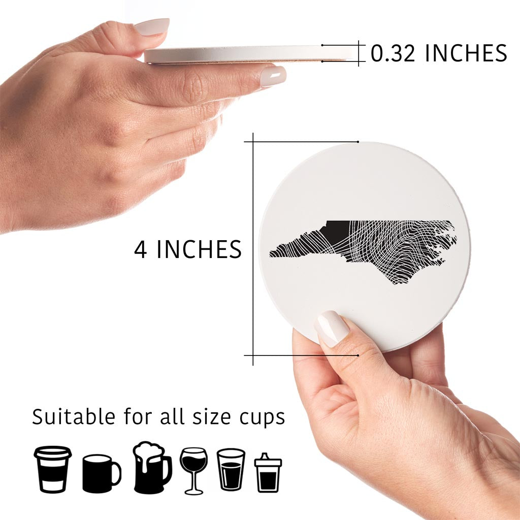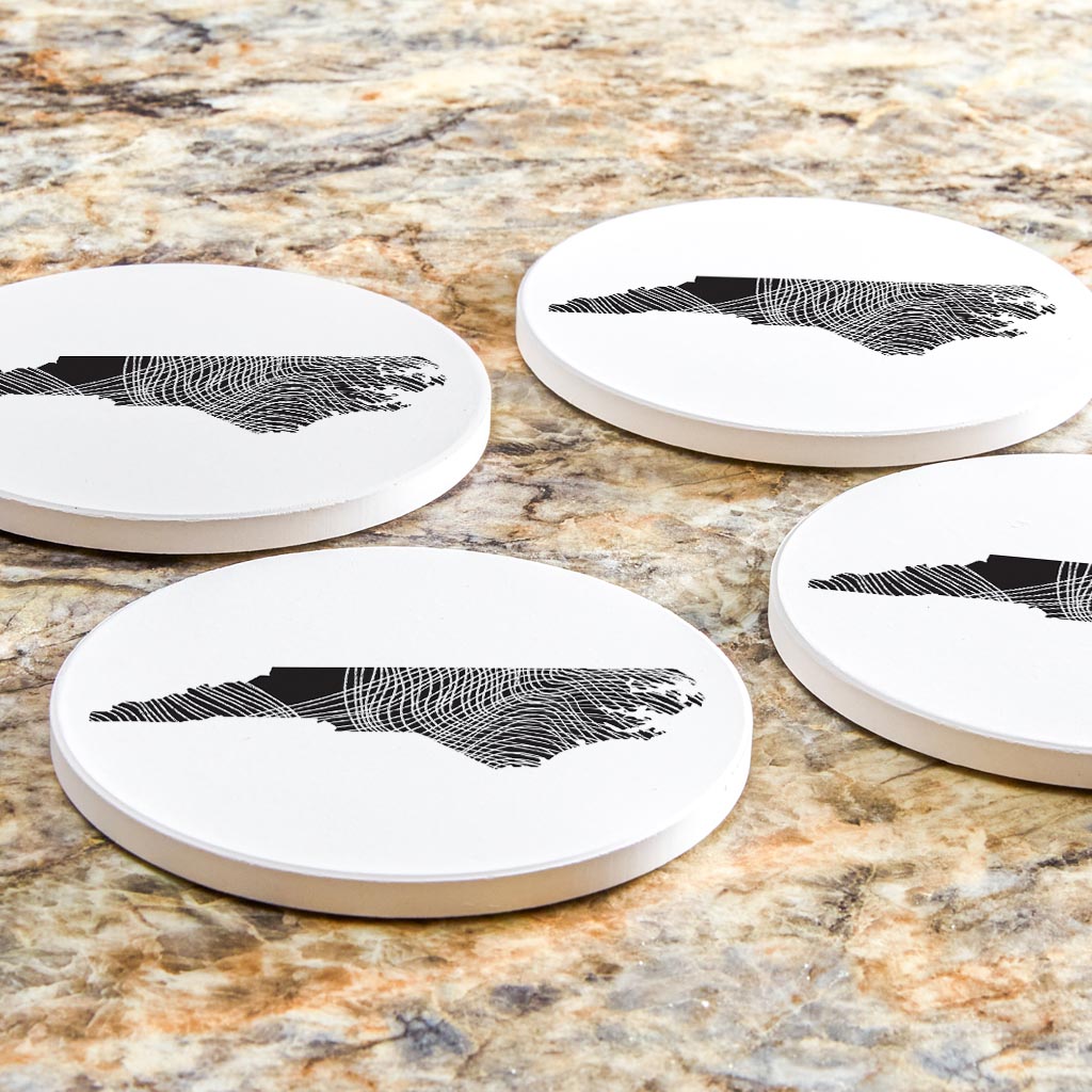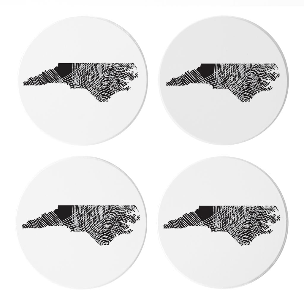 Minimalistic B&W North Carolina State Black With Fluid Lines| Absorbent Coasters | Set of 4 | Min 2
