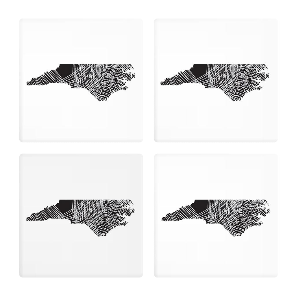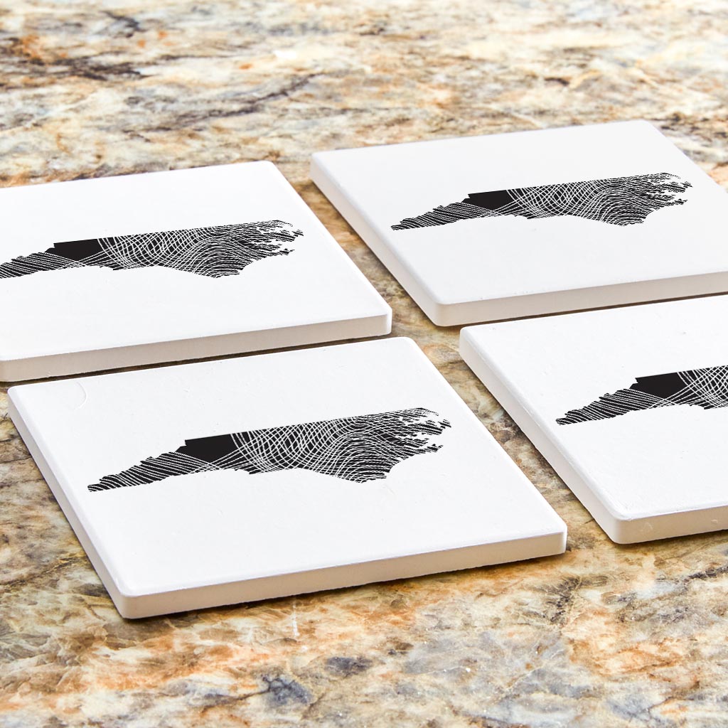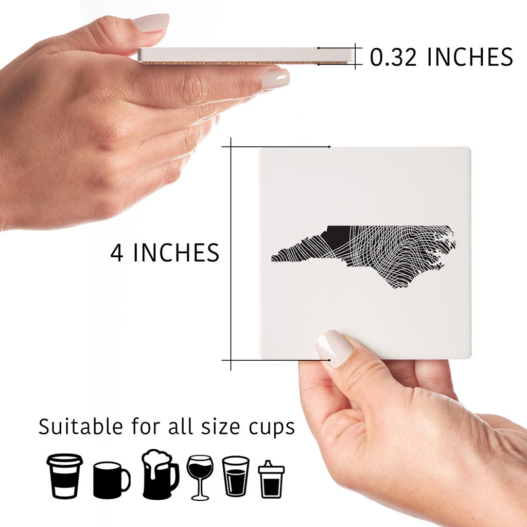 Minimalistic B&W North Carolina State Black With Fluid Lines | Absorbent Coasters | Set of 4 | Min 2