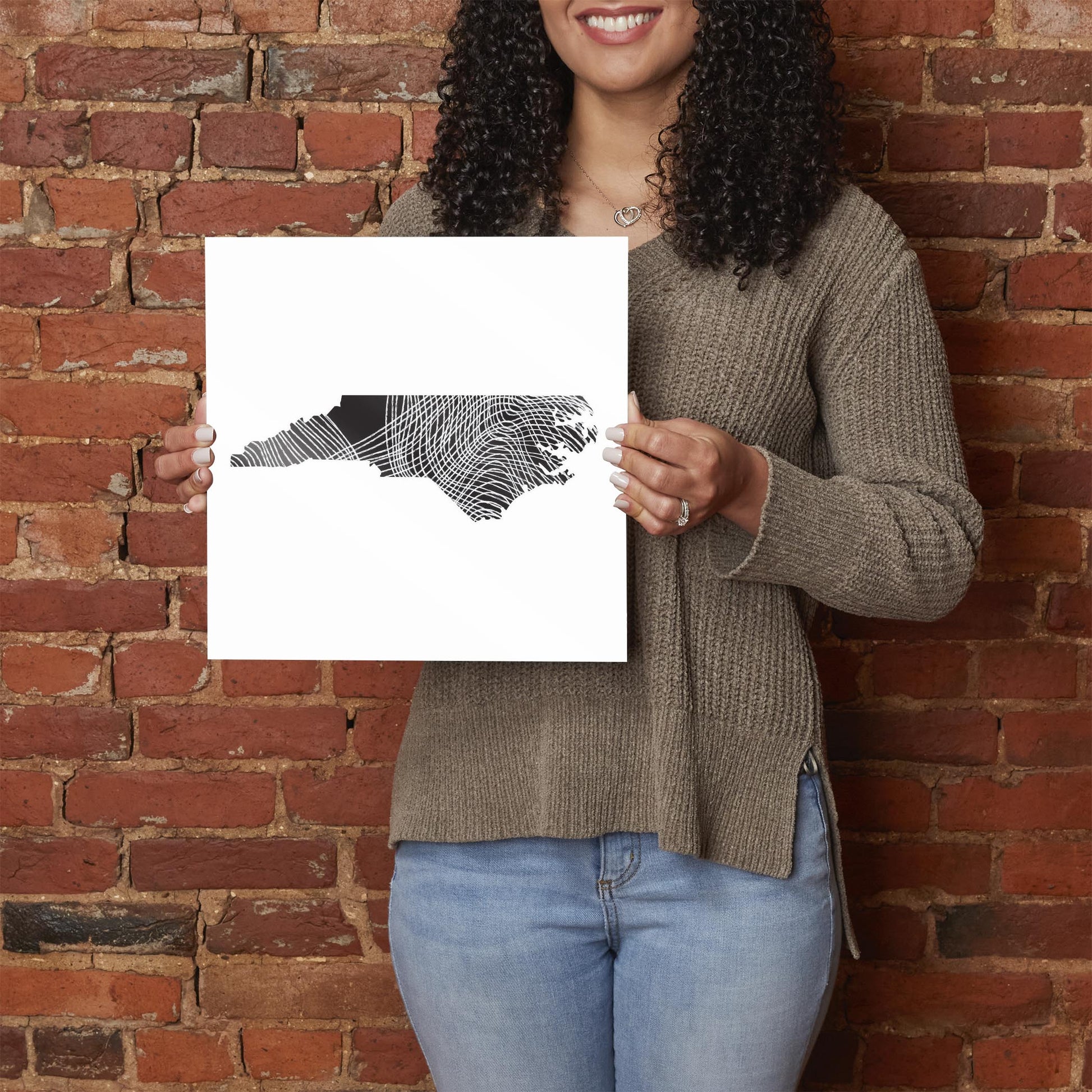 Minimalistic B&W North Carolina State Black With Fluid Lines | Hi-Def Glass Art | Eaches | Min 1