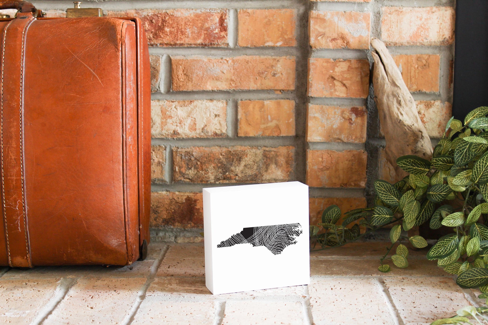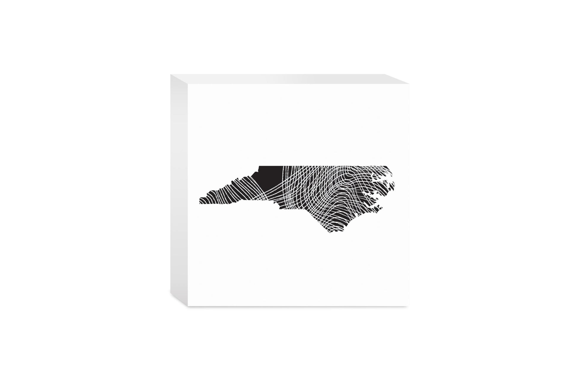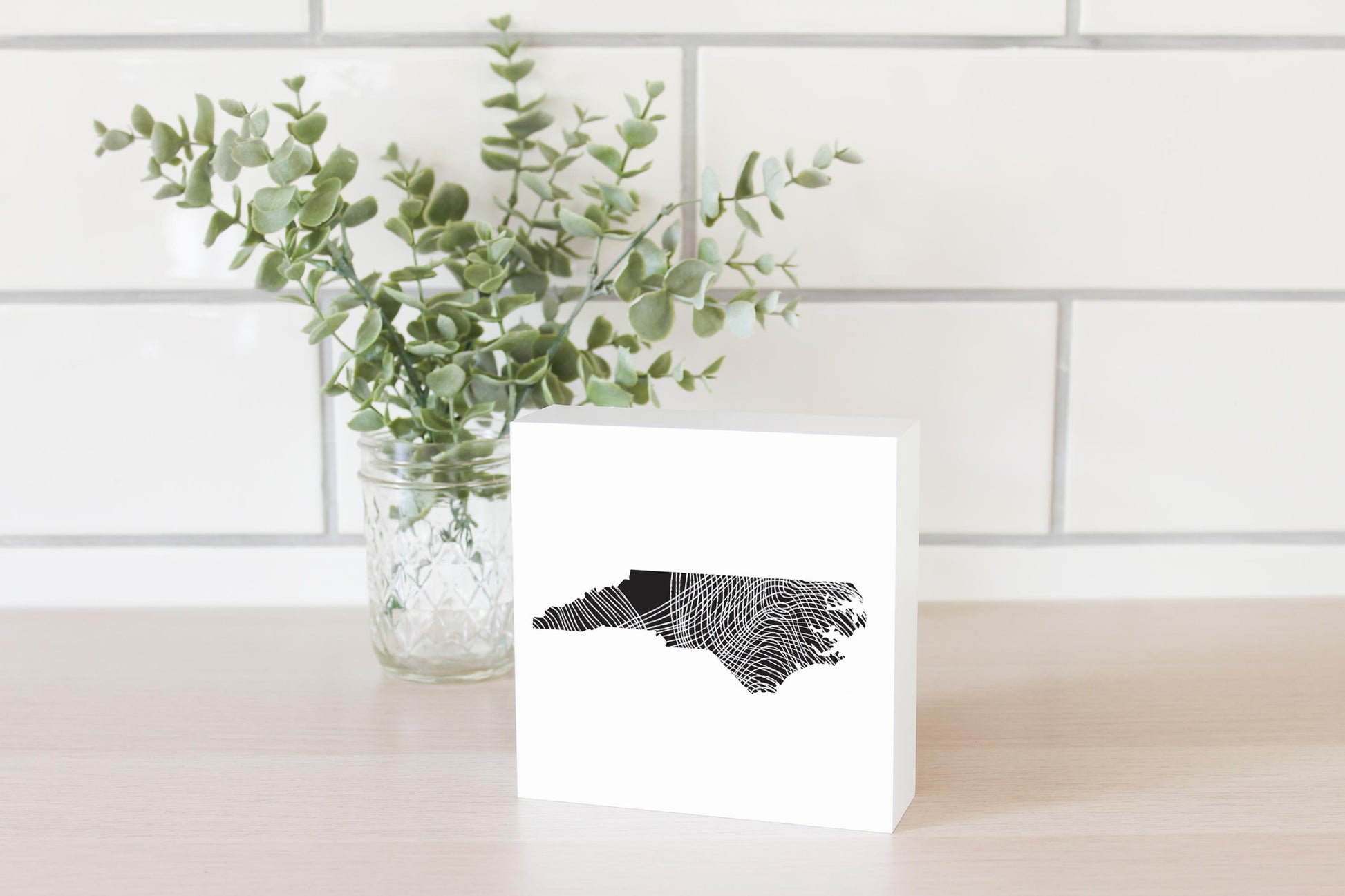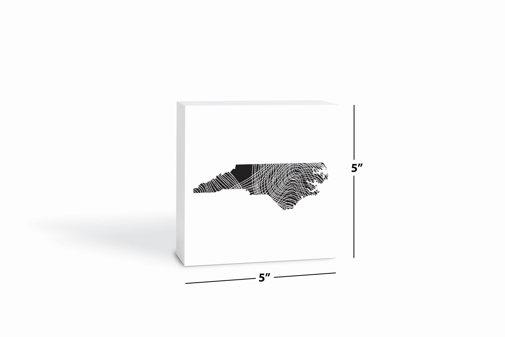 Minimalistic B&W North Carolina State Black With Fluid Lines | Wood Block | Eaches | Min 4