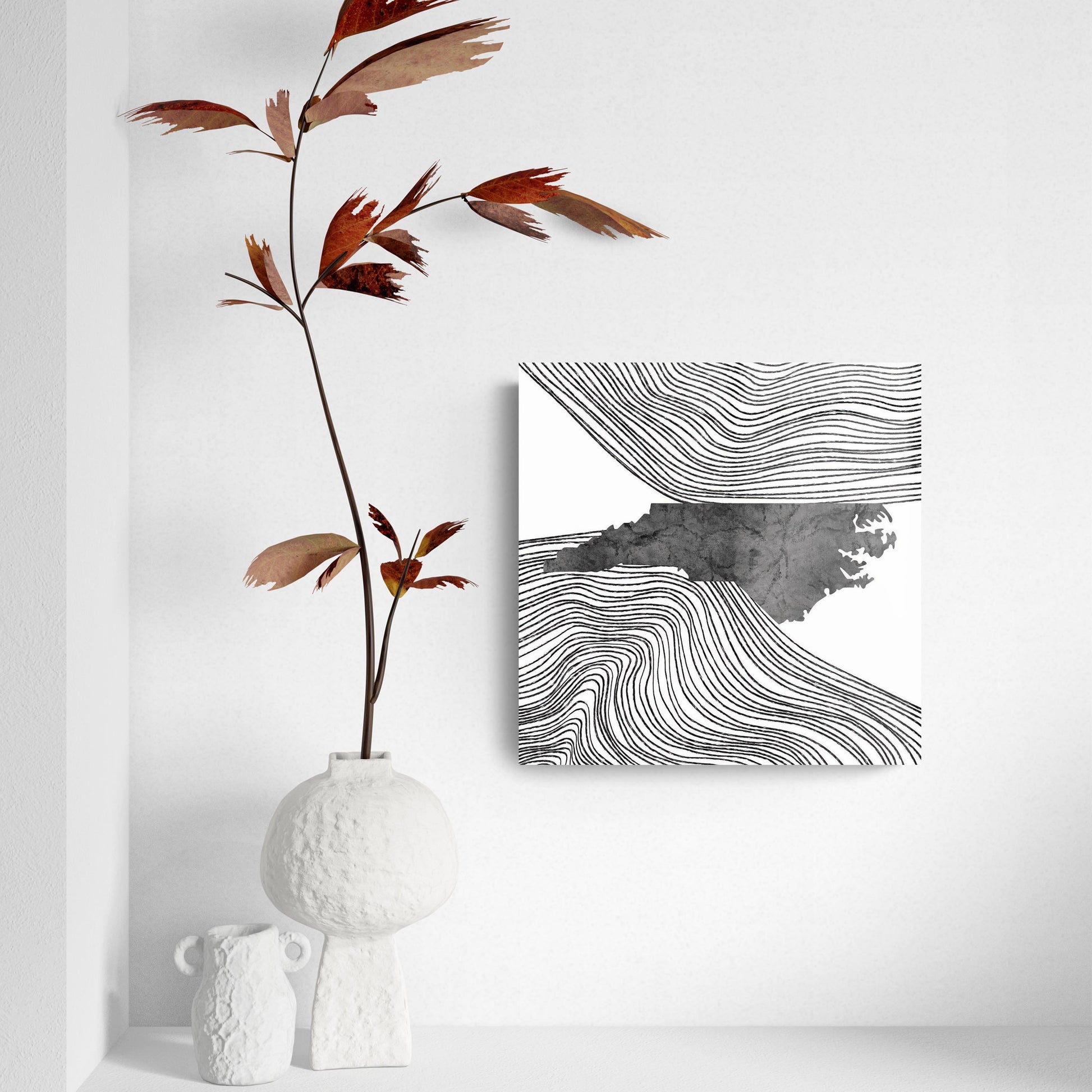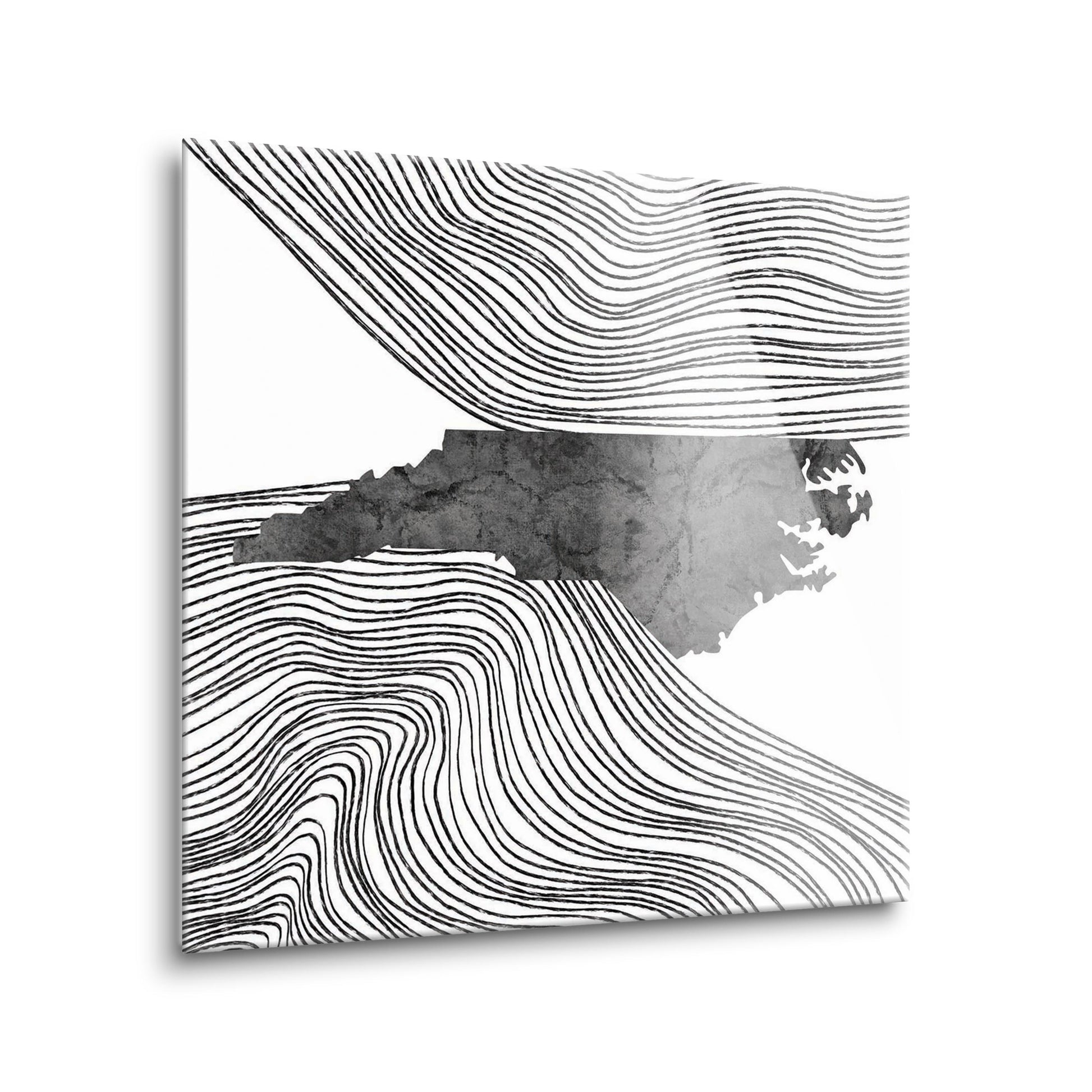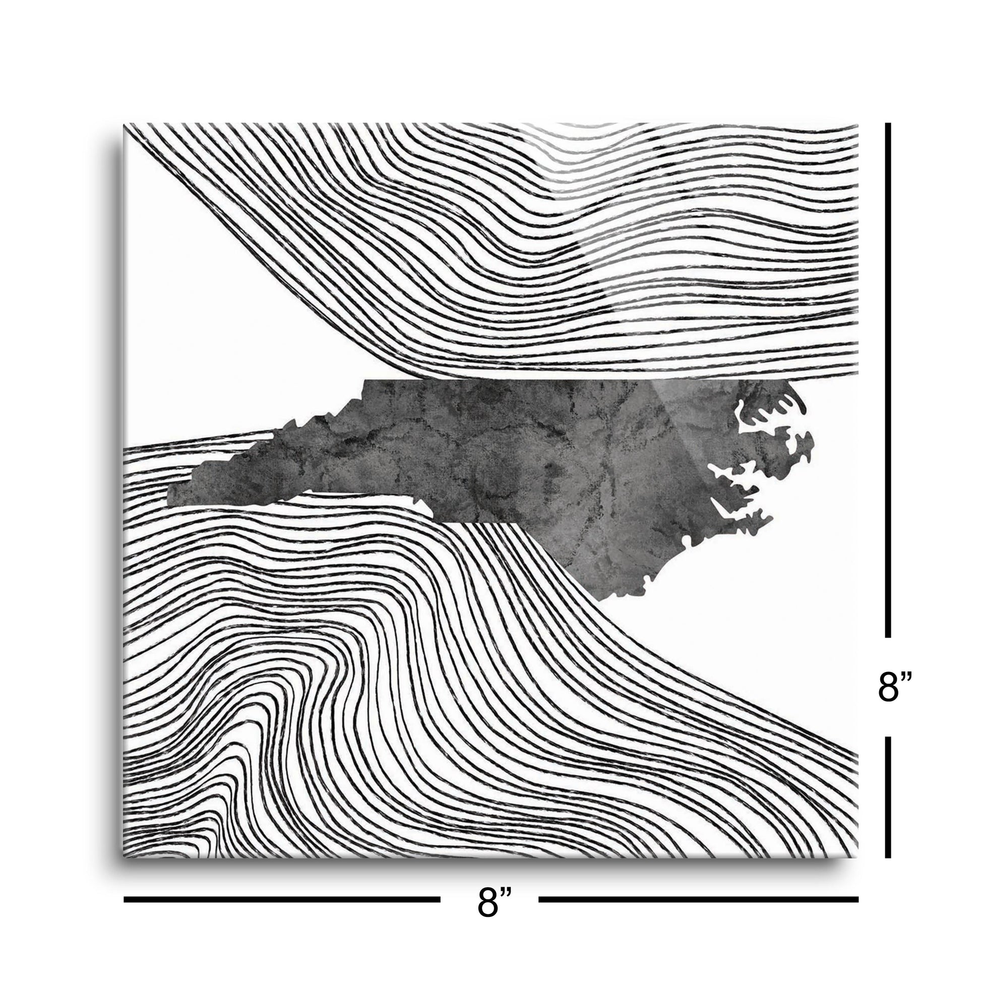 Minimalistic B&W North Carolina State With Fluid Lines | Hi-Def Glass Art | Eaches | Min 2