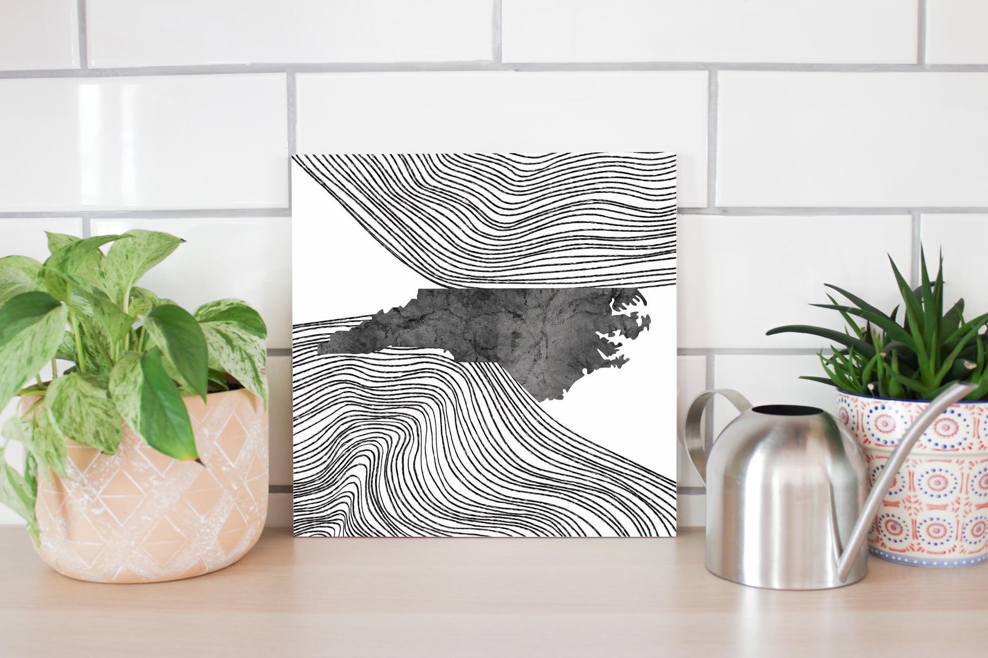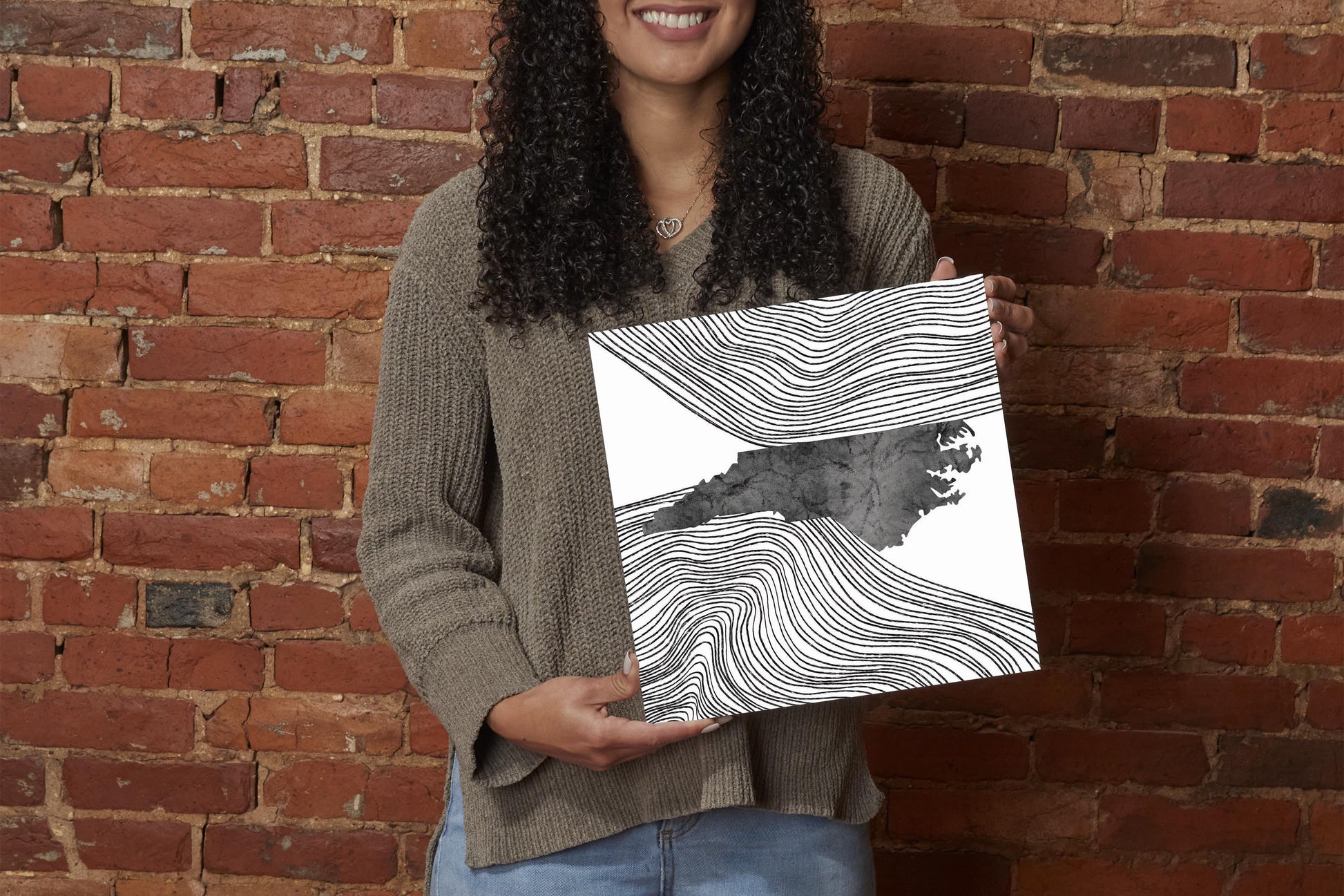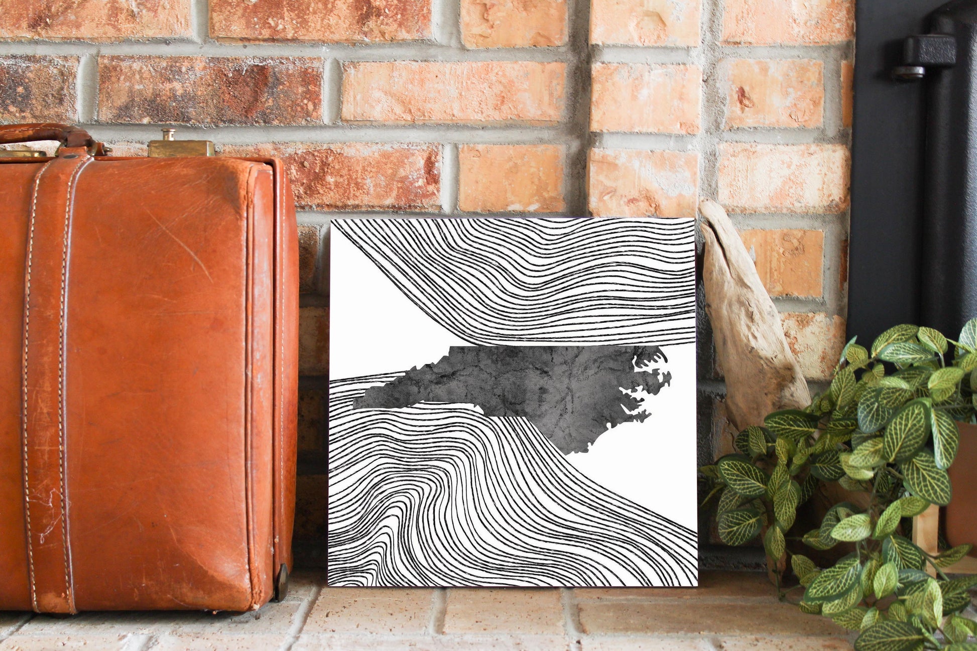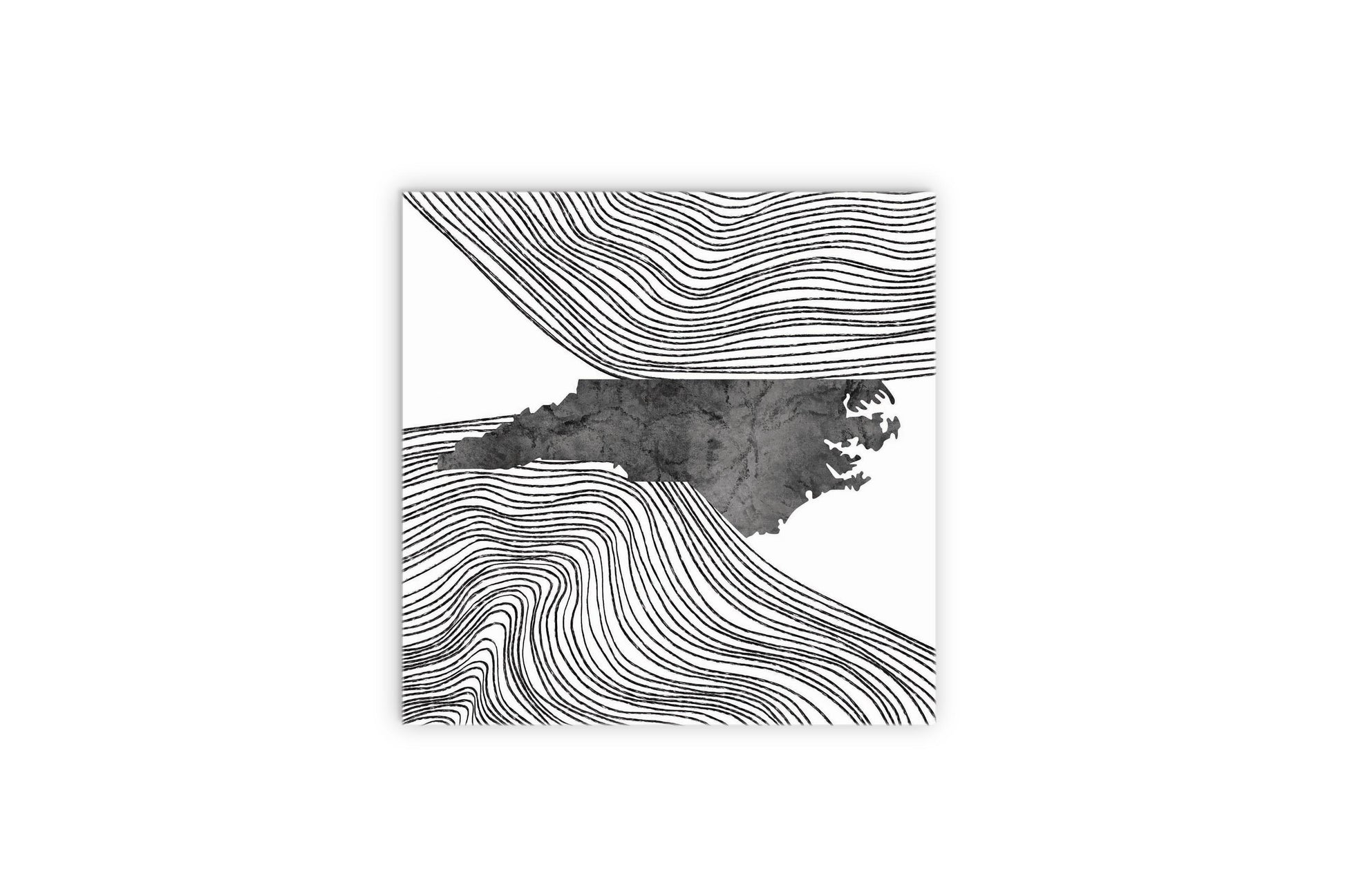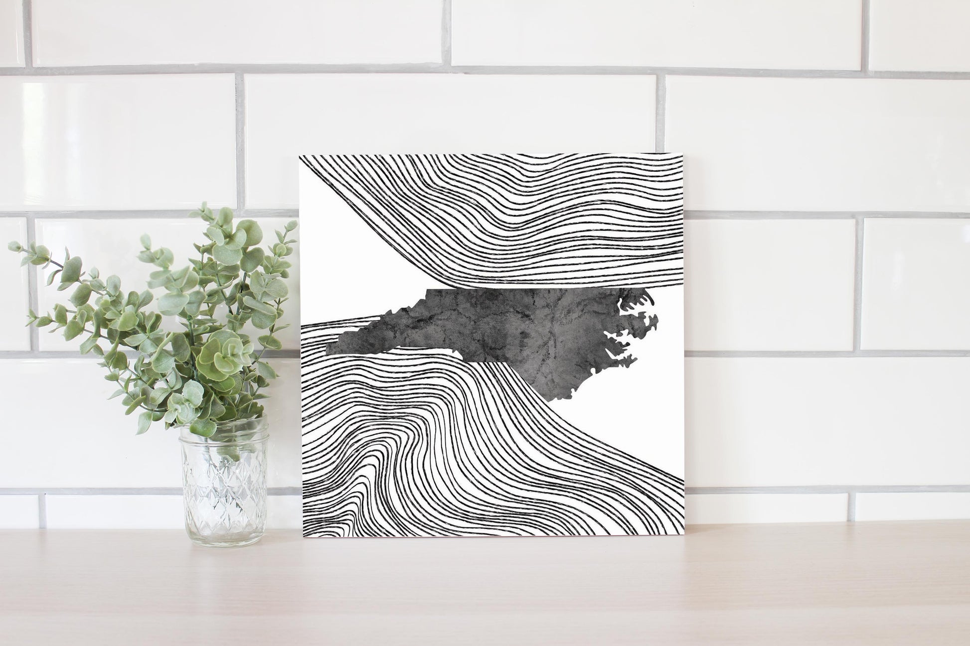 Minimalistic B&W North Carolina State With Fluid Lines | Wood Sign | Eaches | Min 2