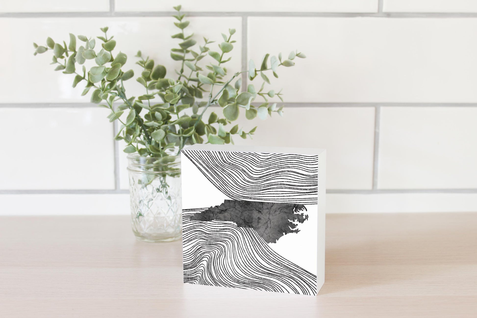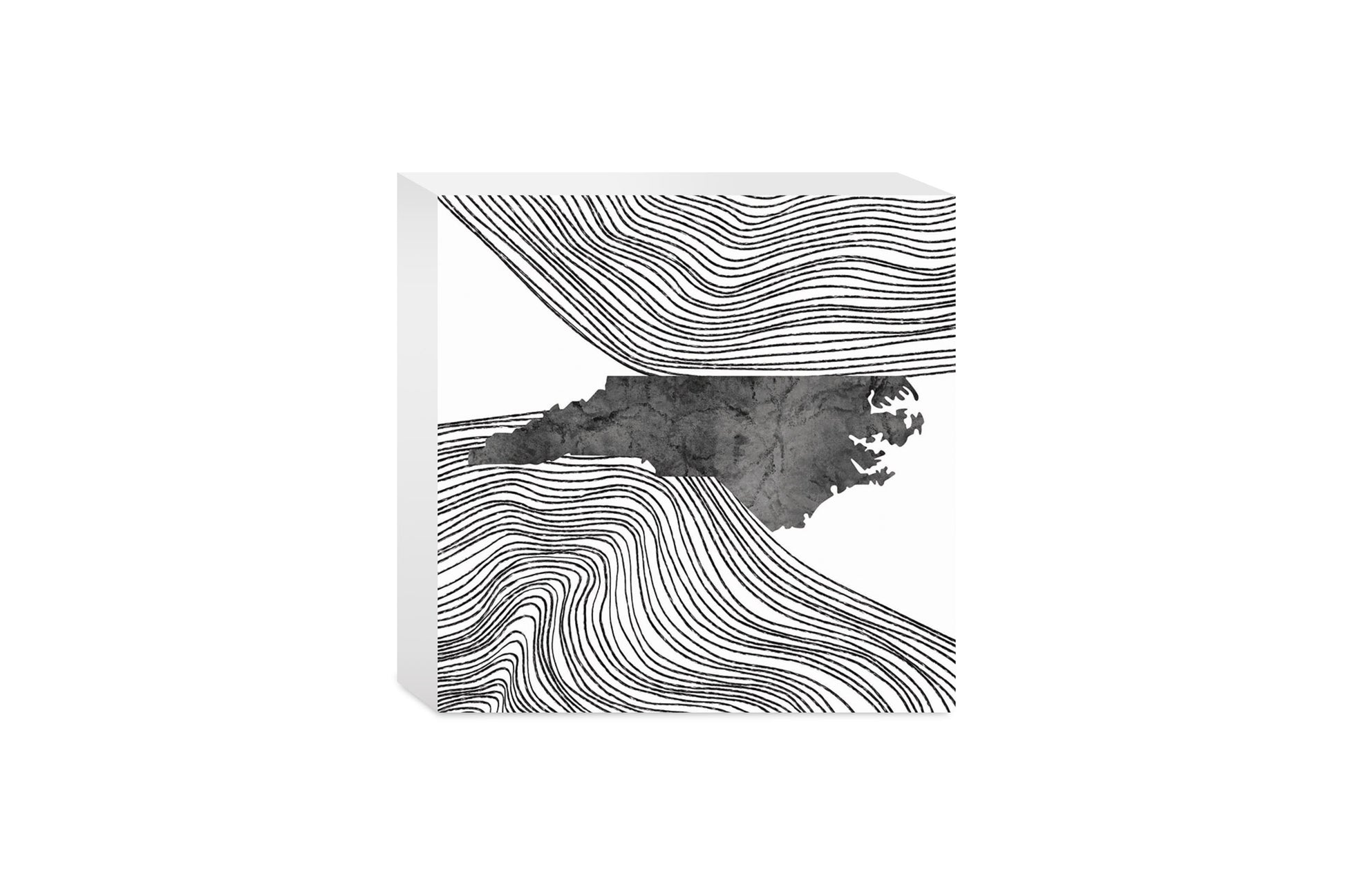 Minimalistic B&W North Carolina State With Fluid Lines | Wood Block | Eaches | Min 4