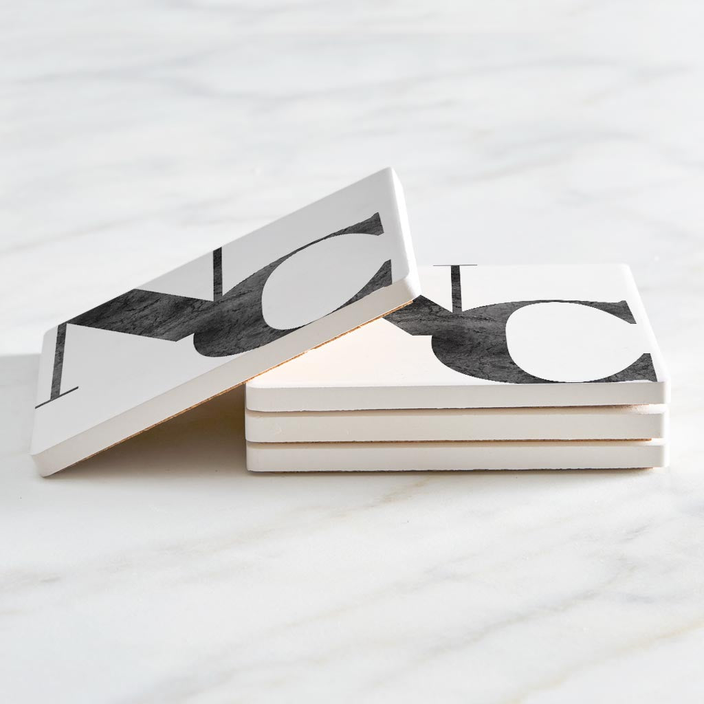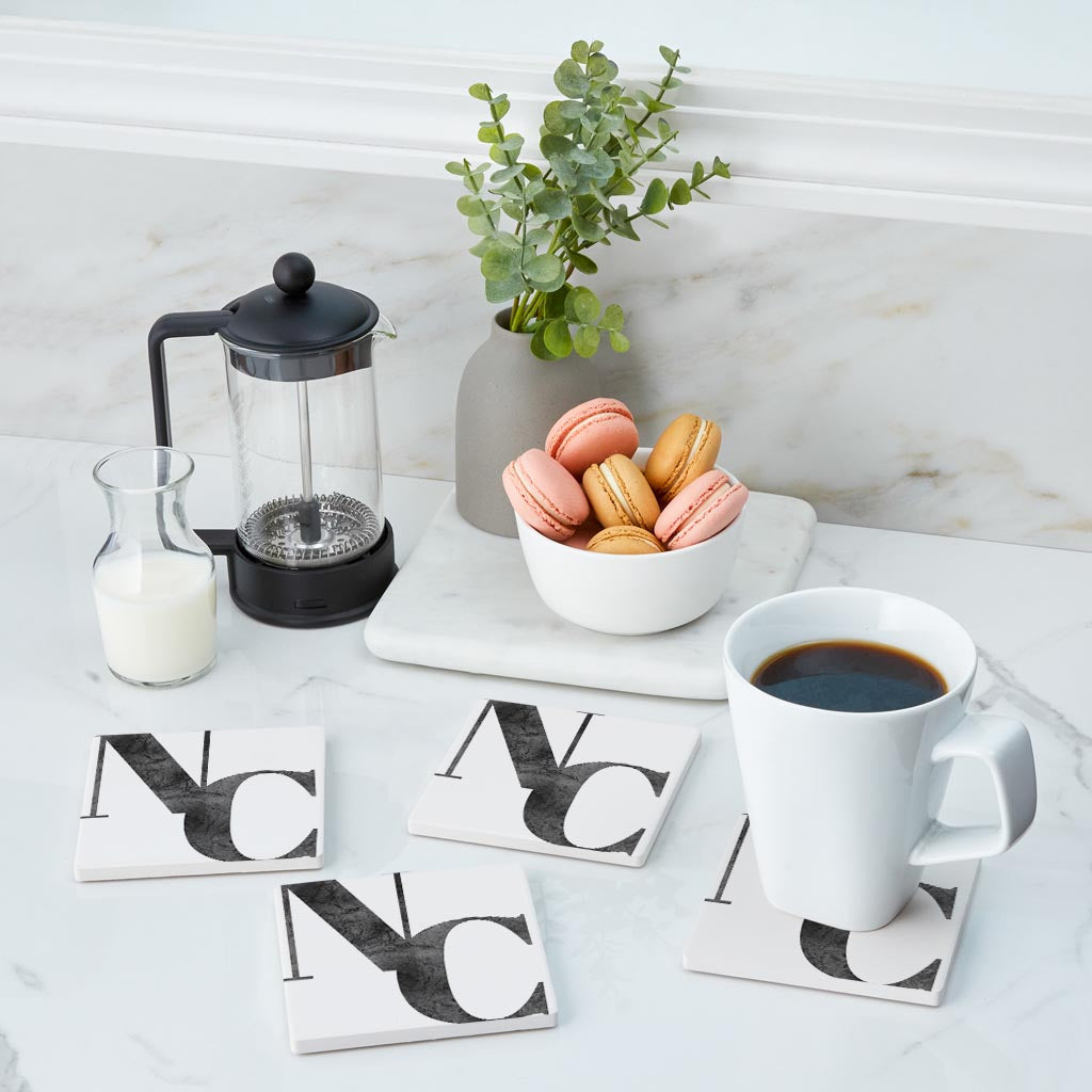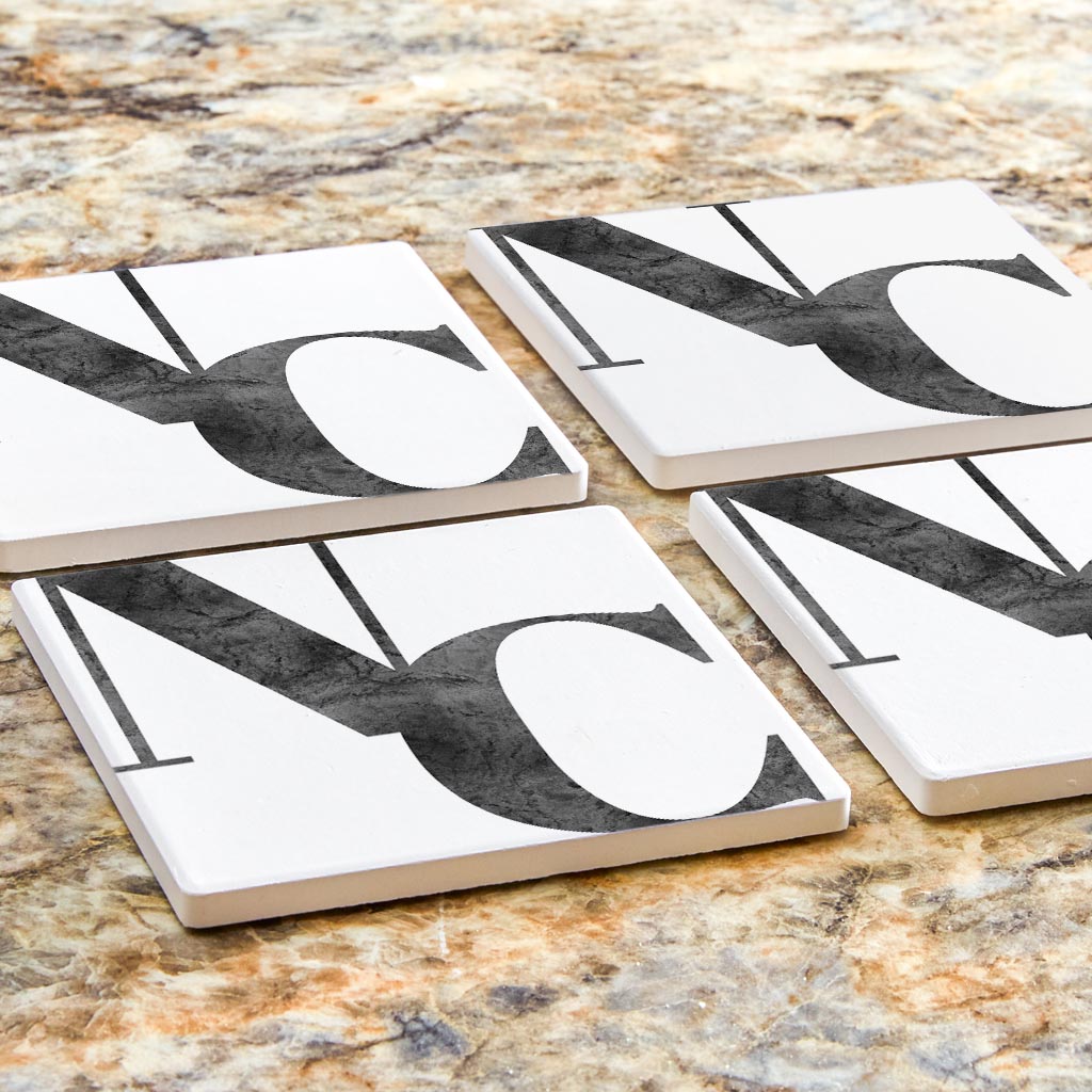 Minimalistic B&W North Carolina White Initials | Absorbent Coasters | Set of 4 | Min 2